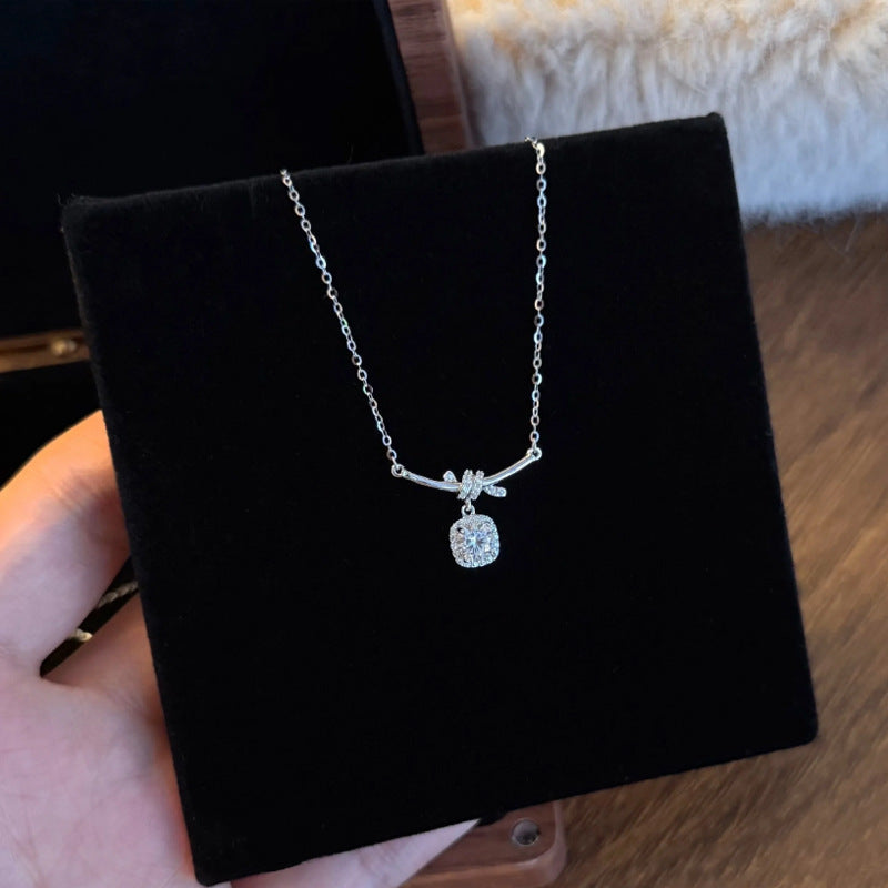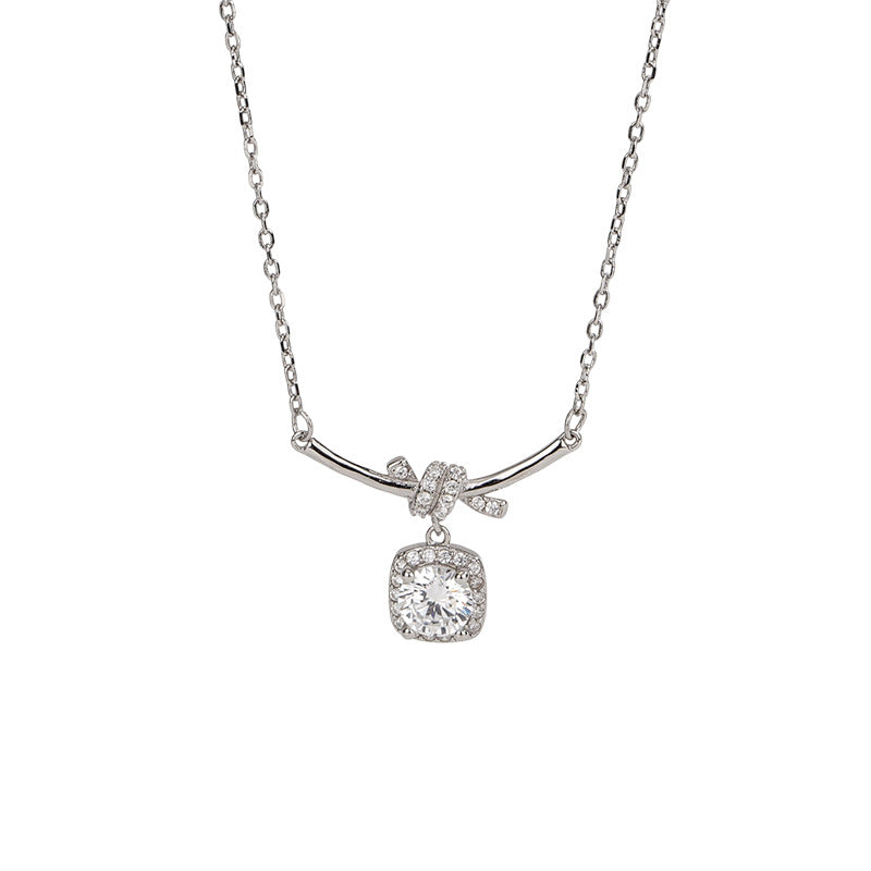 F廠【DQ0746N】S925純銀輕奢小眾繩結方糖項鍊女甜美氣質閃鑽百搭鎖骨鏈時尚 25.06-3