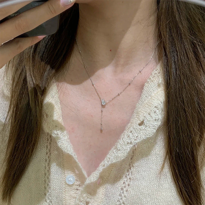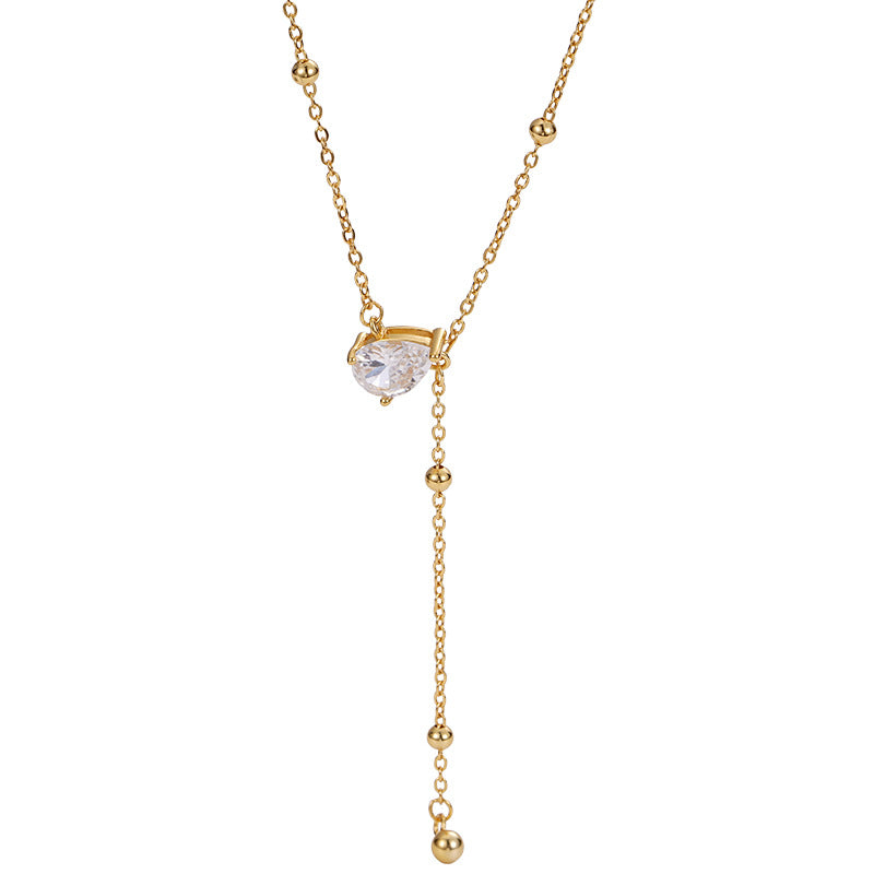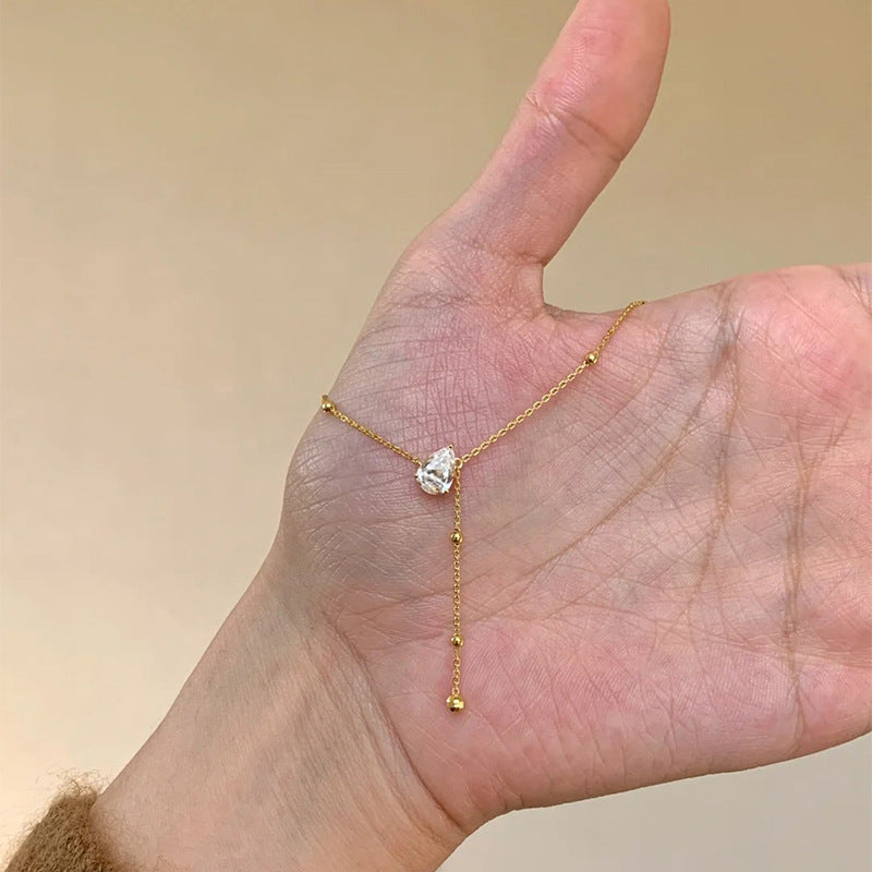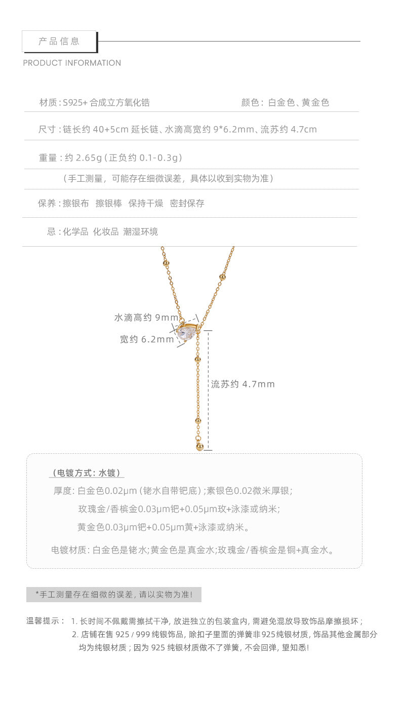F廠【DQ0807N】S925純銀韓系精緻水滴Y型項鍊女高級感水滴形閃鑽流蘇鎖骨鏈 25.07-1