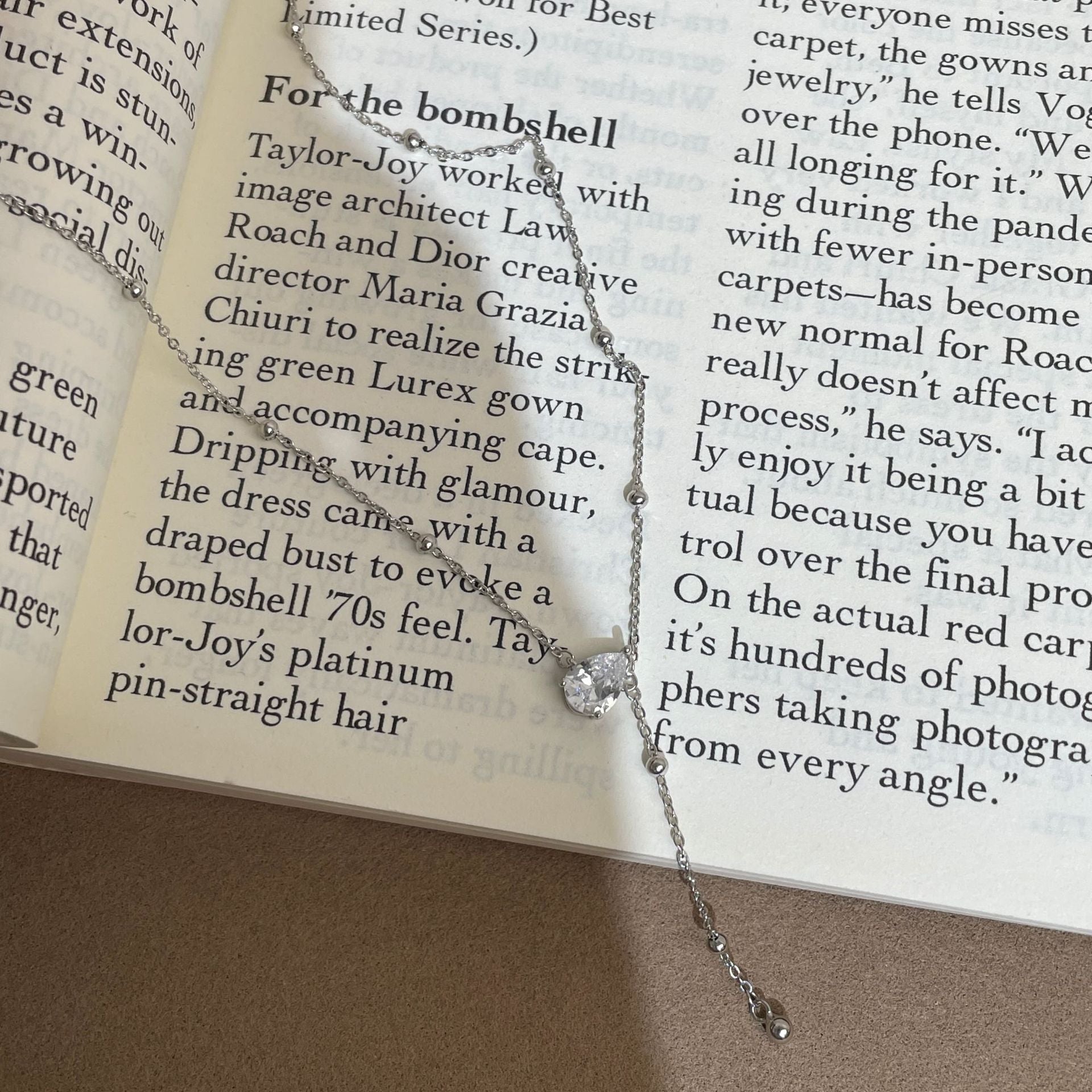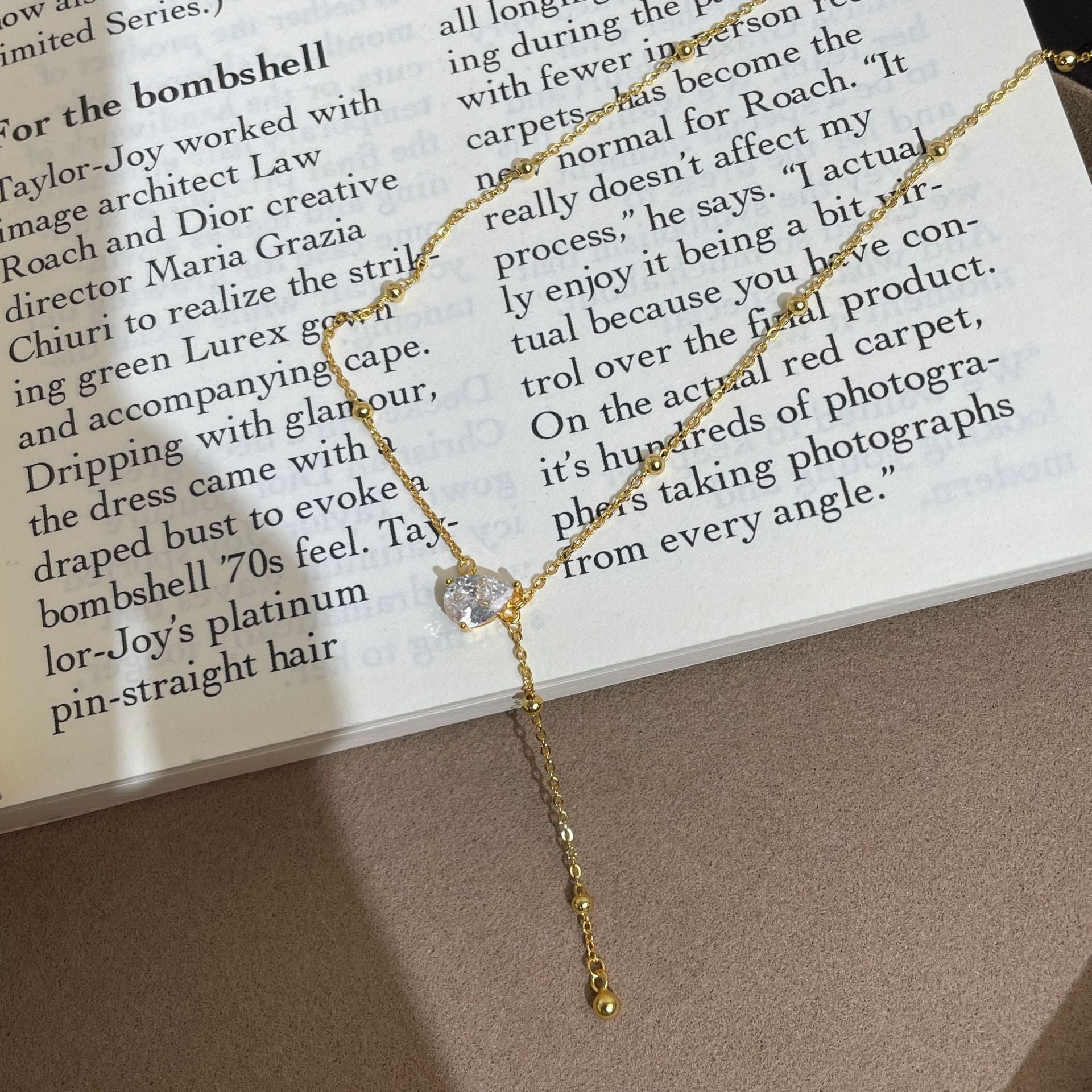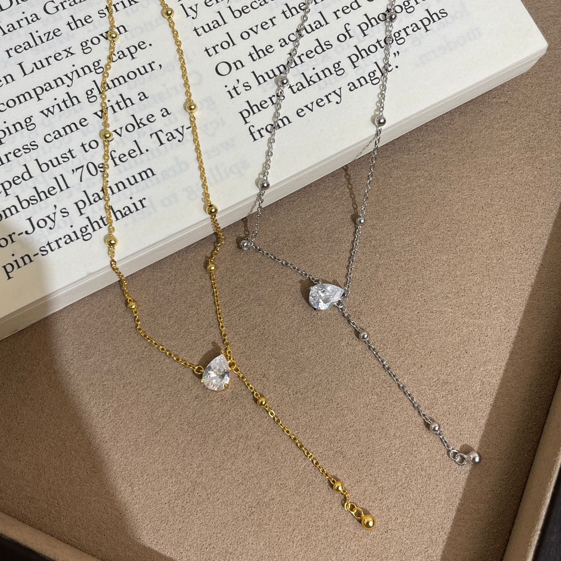 F廠【DQ0807N】S925純銀韓系精緻水滴Y型項鍊女高級感水滴形閃鑽流蘇鎖骨鏈 25.07-1