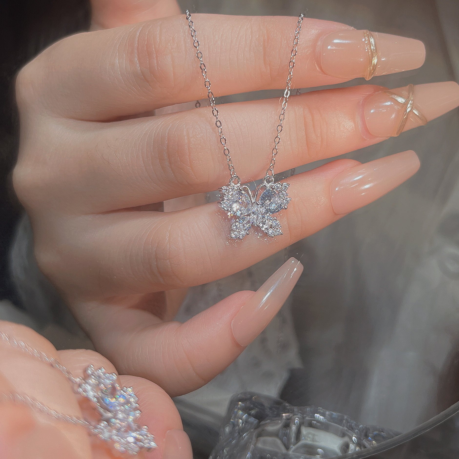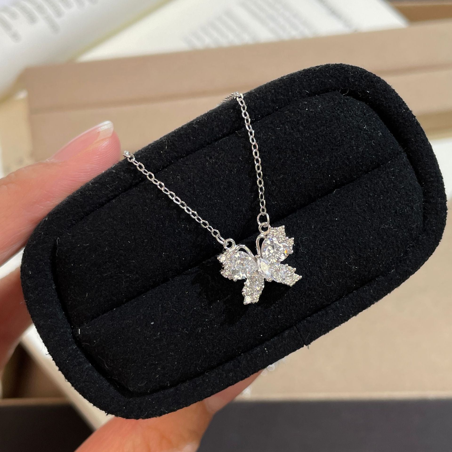 F廠【DQ0848N】S999純銀輕奢甜美閃鑽蝴蝶項鍊女氣質高級感鋯石百搭鎖骨鏈潮 25.10-4