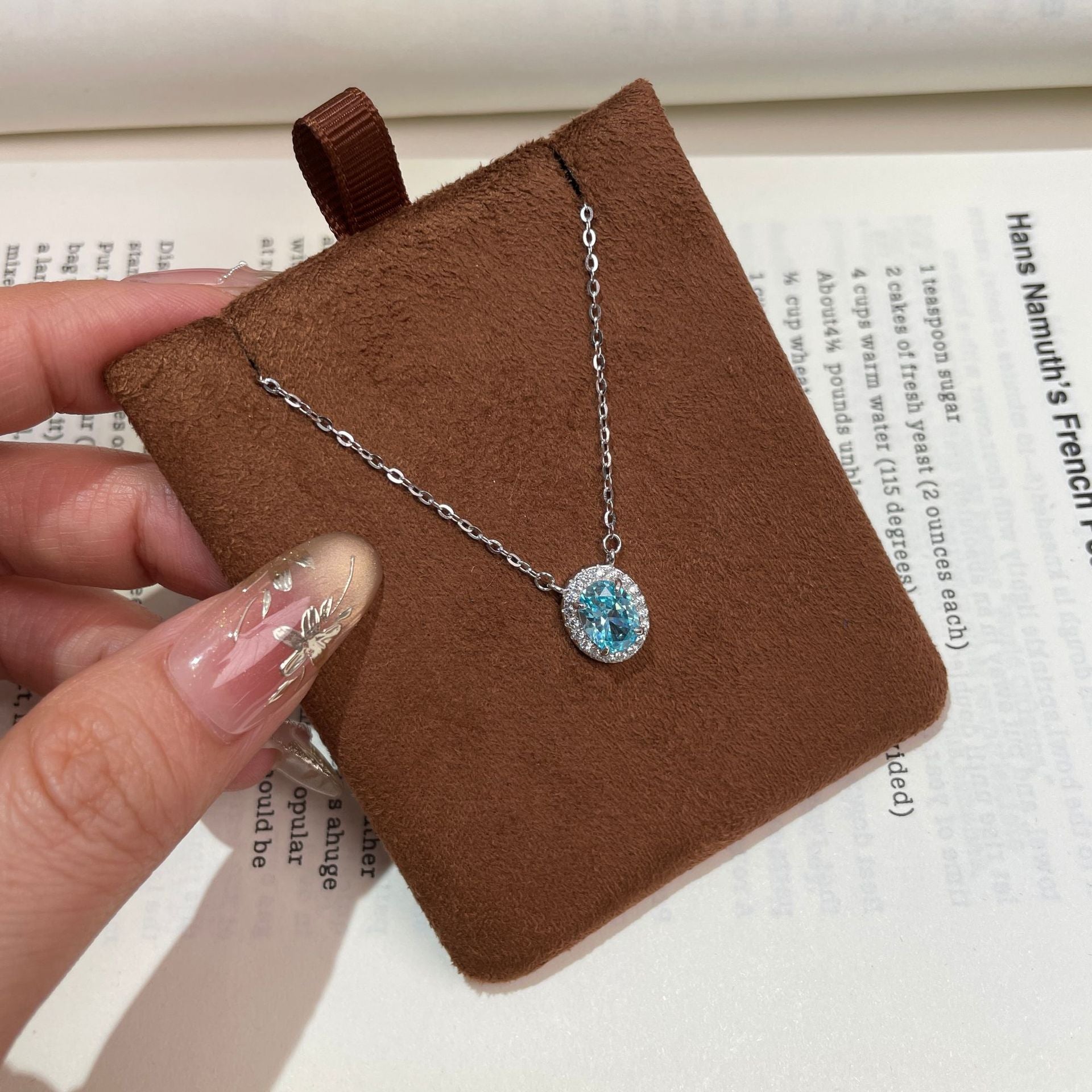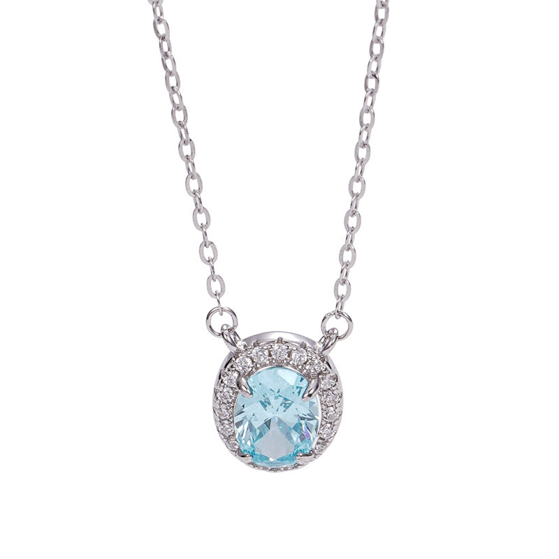 F廠【DQ0866N】S925純銀輕奢精緻海藍鋯項鍊女氣質時尚鴿子蛋藍鋯石鎖骨鏈 25.08-2