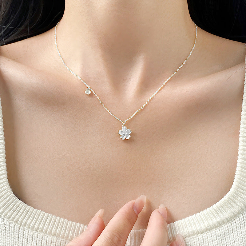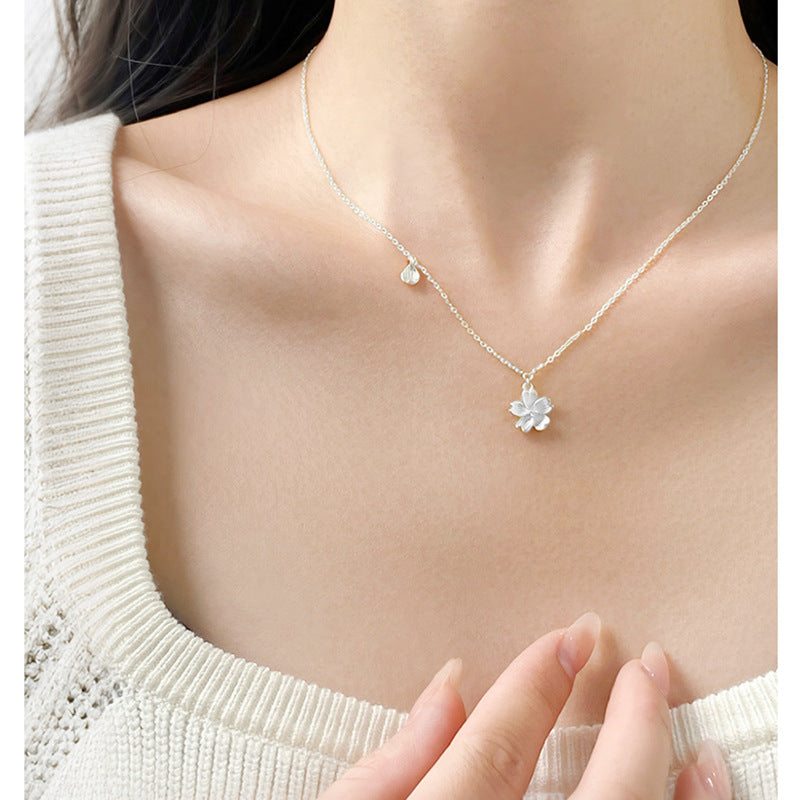 F廠【DQ0898N】S999純銀簡約時尚櫻花項鍊女輕奢高級感花朵ins風百搭鎖骨鏈 25.10-4