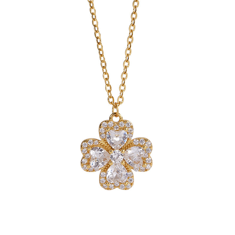 F廠【DQ0931N】精緻高級感S925純銀四葉草項鍊女輕奢愛心鋯石鎖骨鏈 25.07-2