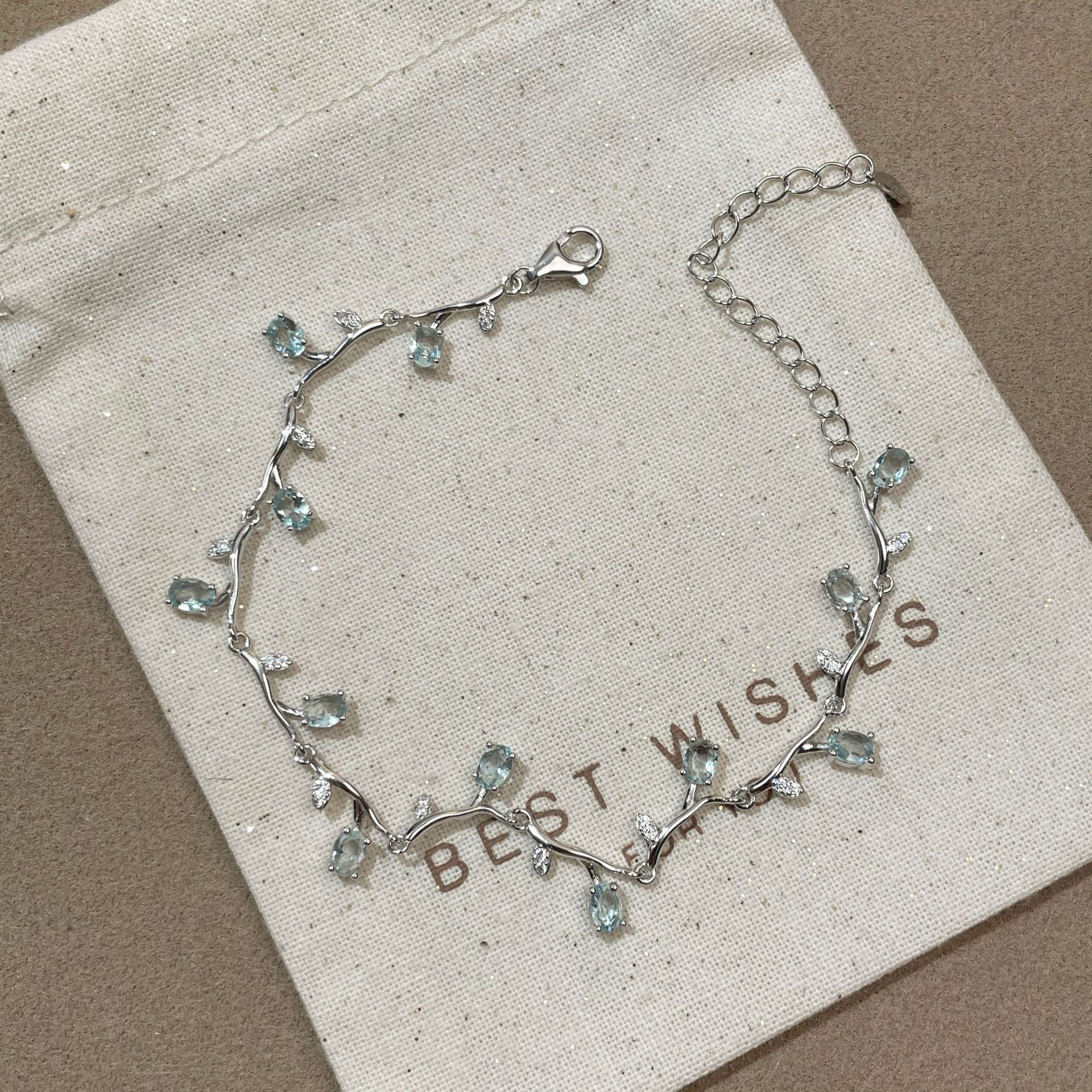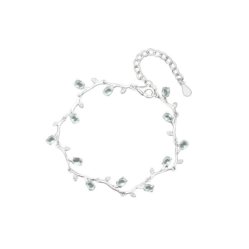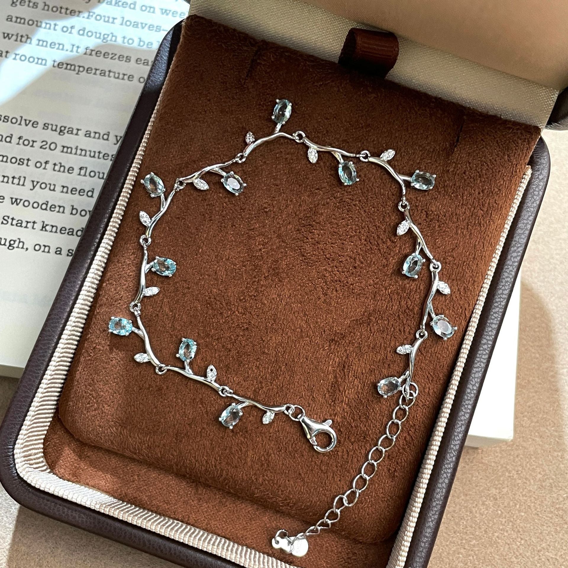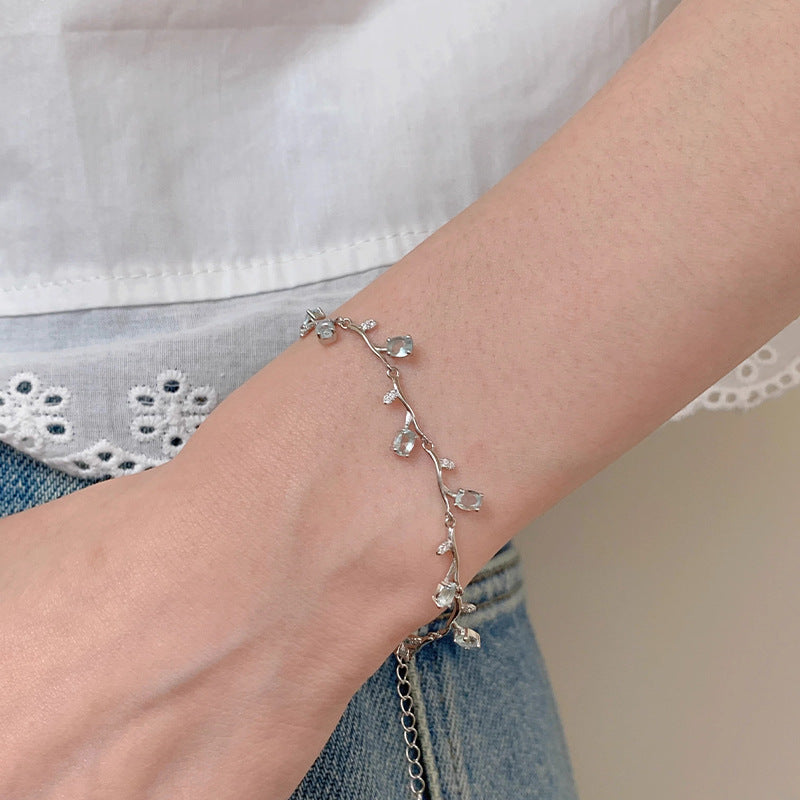 F廠【DQ0988S】精緻小眾藍枝藤蔓鬱金香手鍊女S925純銀森系甜美鋯石百搭手飾 25.08-1