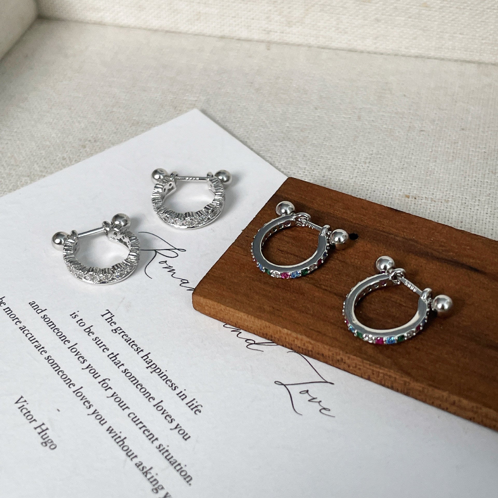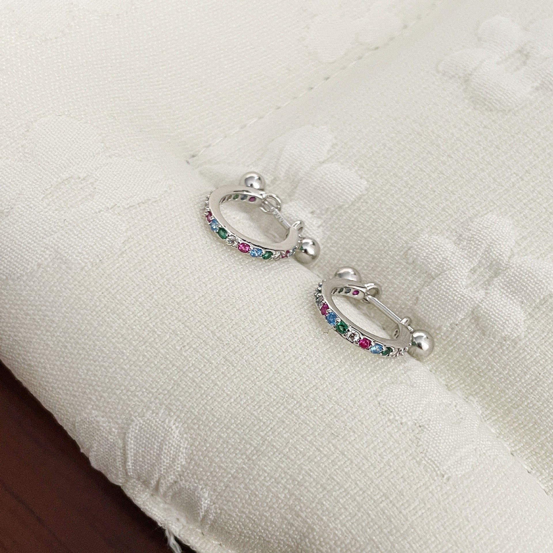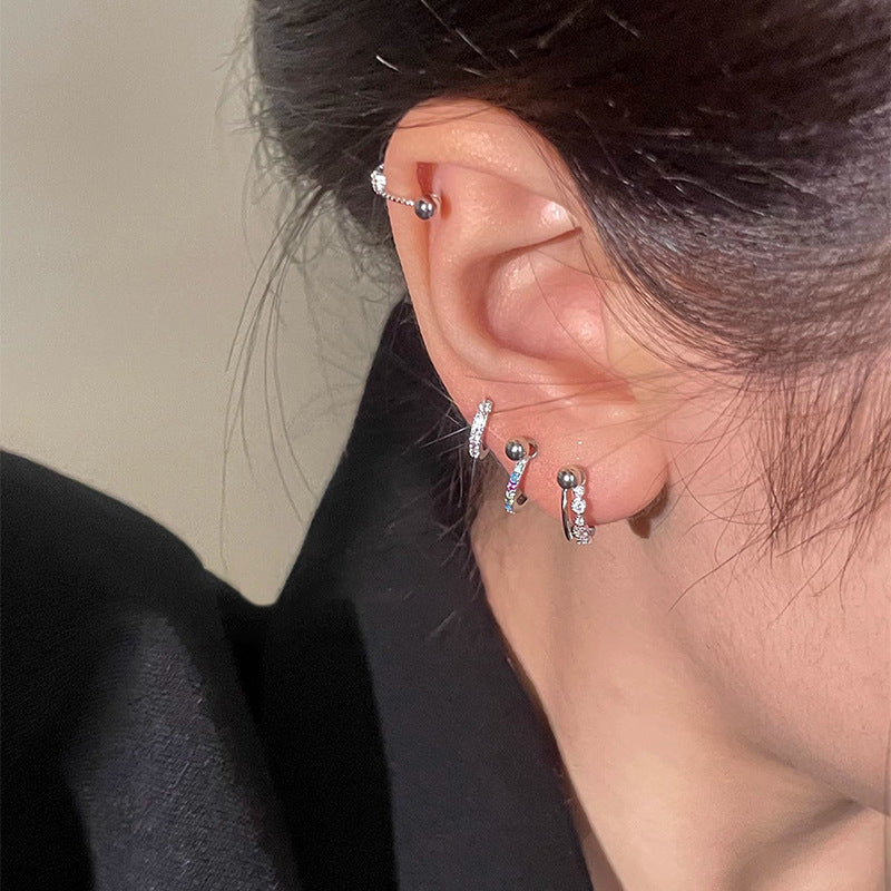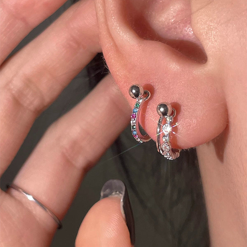 F廠【DQ10021E】足銀999日韓精緻彩色鋯石耳扣女時尚精緻耳骨釘疊戴耳飾百搭 25.06-4