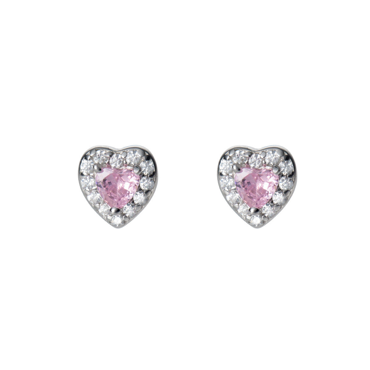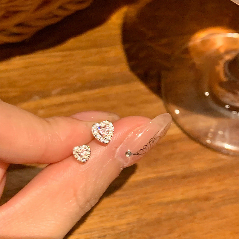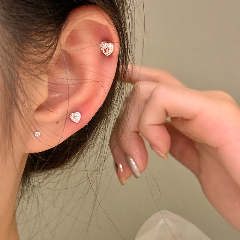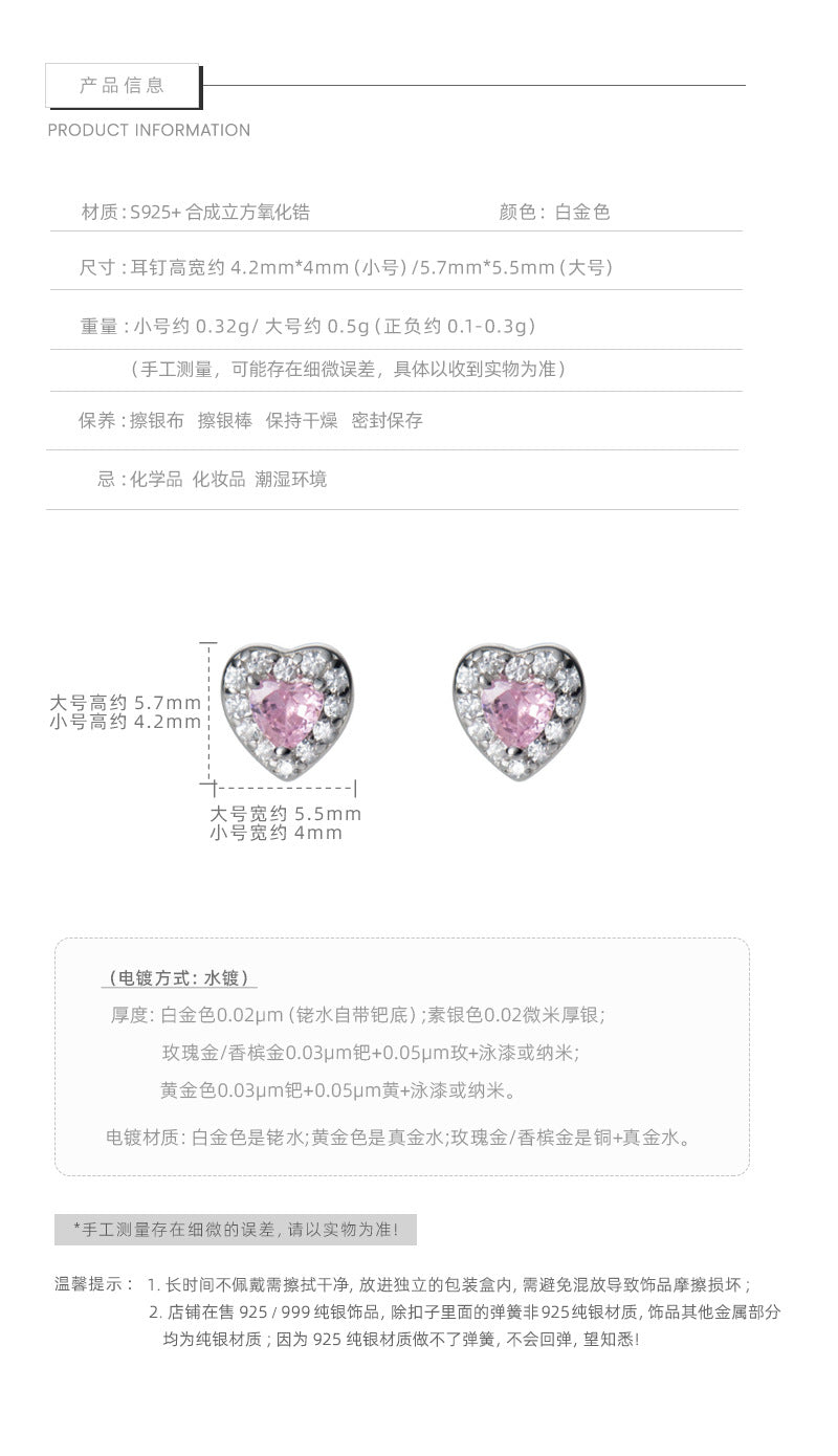 F廠【DQ10022E】S925銀粉紅愛心耳環女小眾設計高級感心形鋯石耳骨釘疊戴耳飾 25.10-1