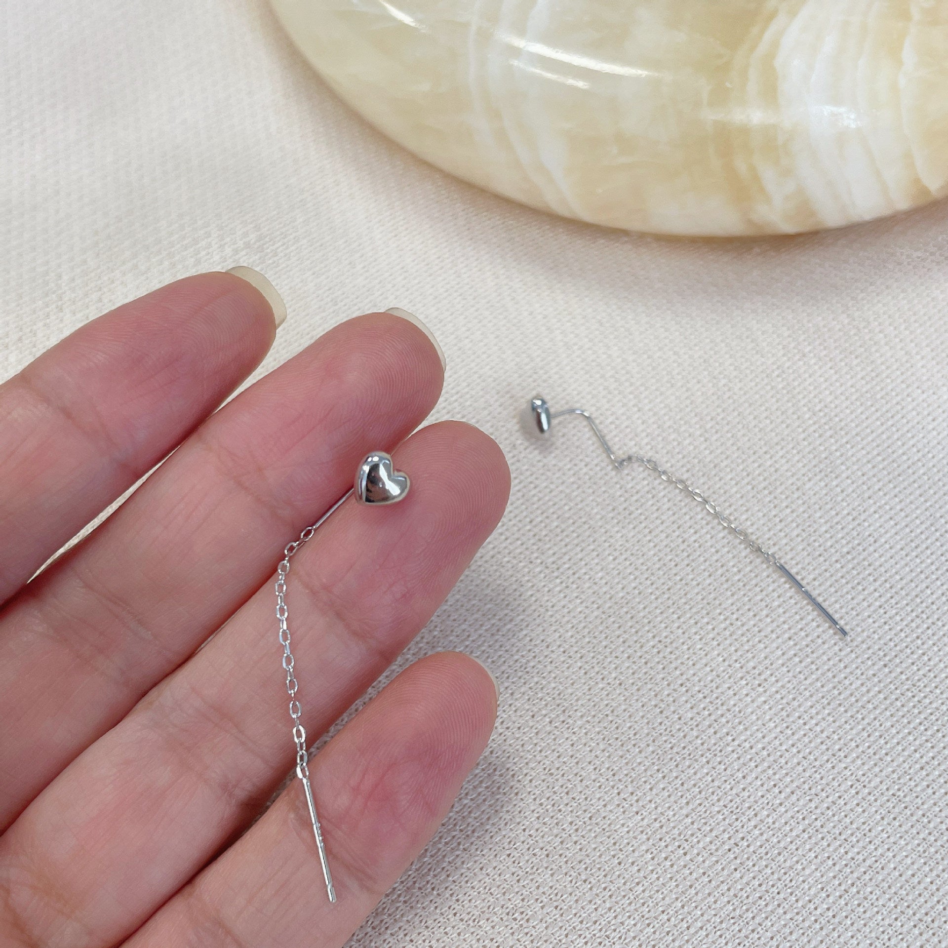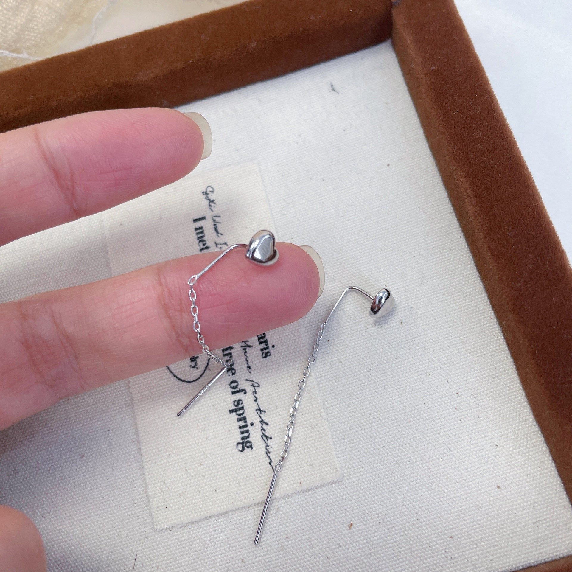 F廠【DQ10024E】S925純銀甜美愛心耳線女氣質小巧心形流蘇長耳飾百搭耳環潮 25.06-2