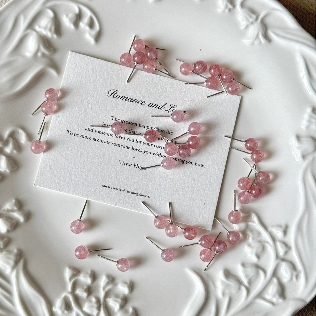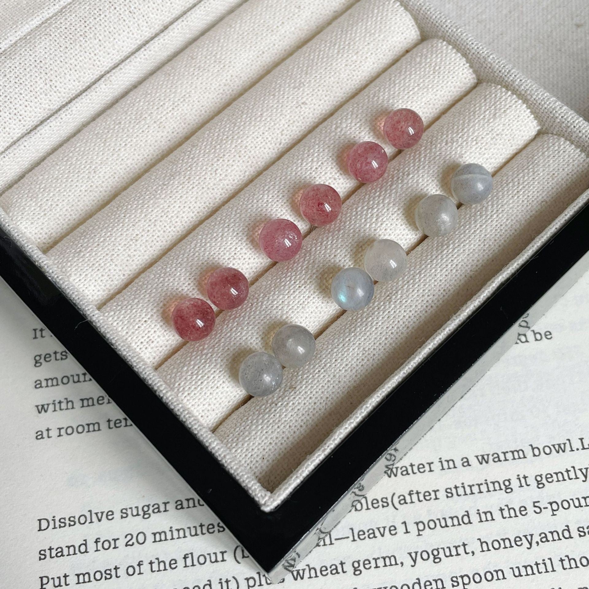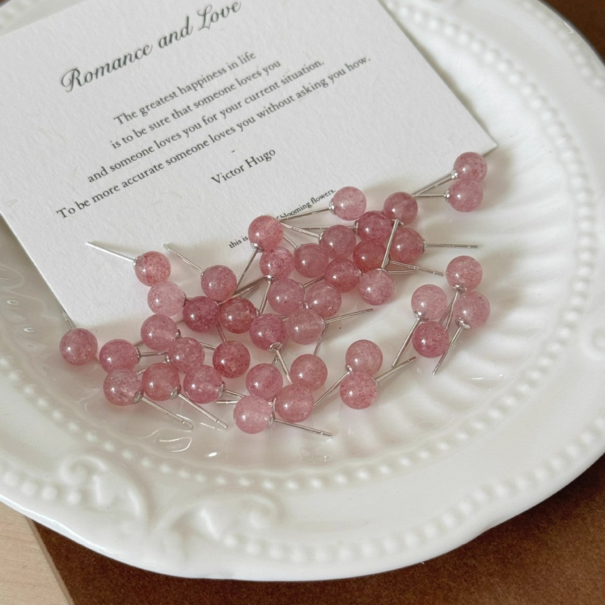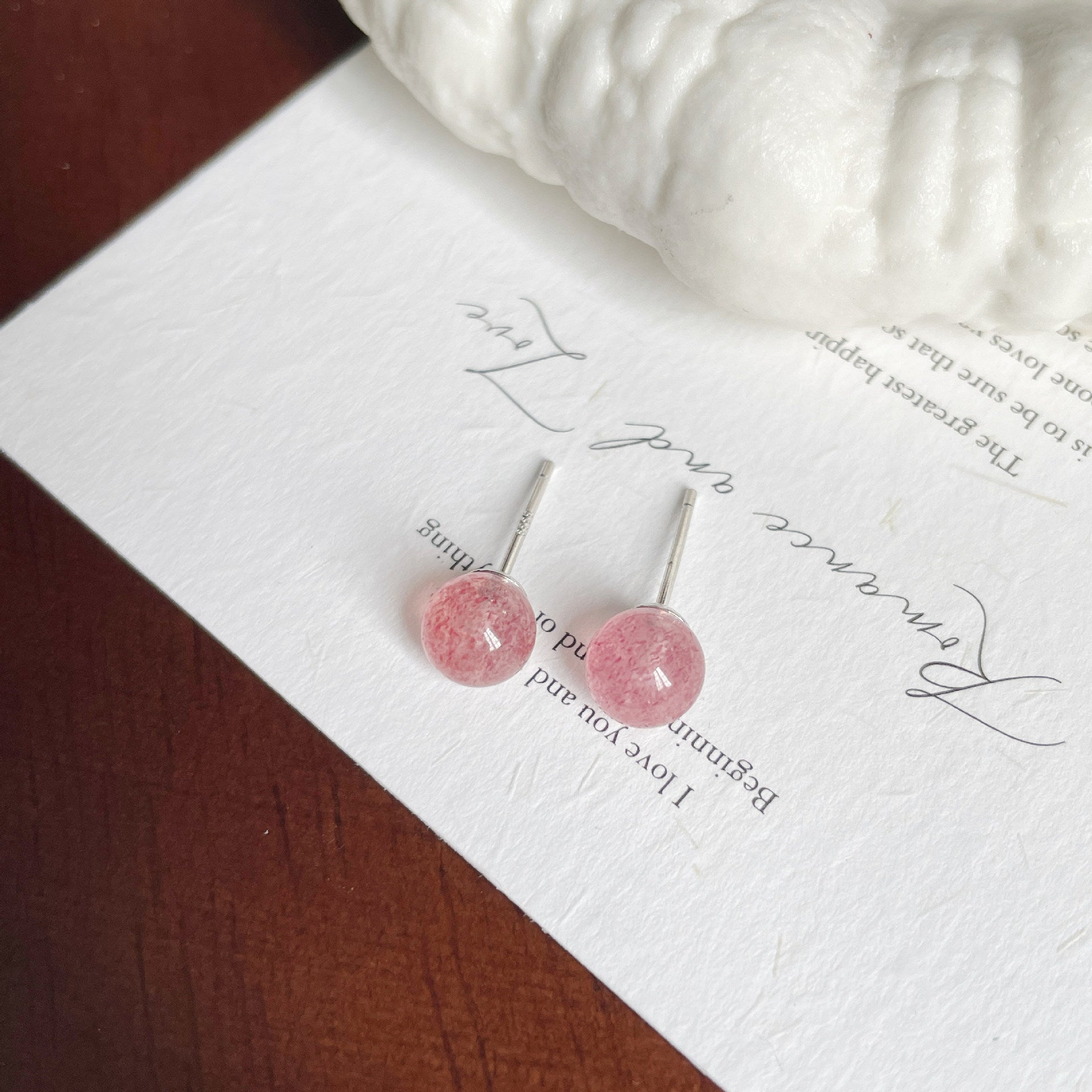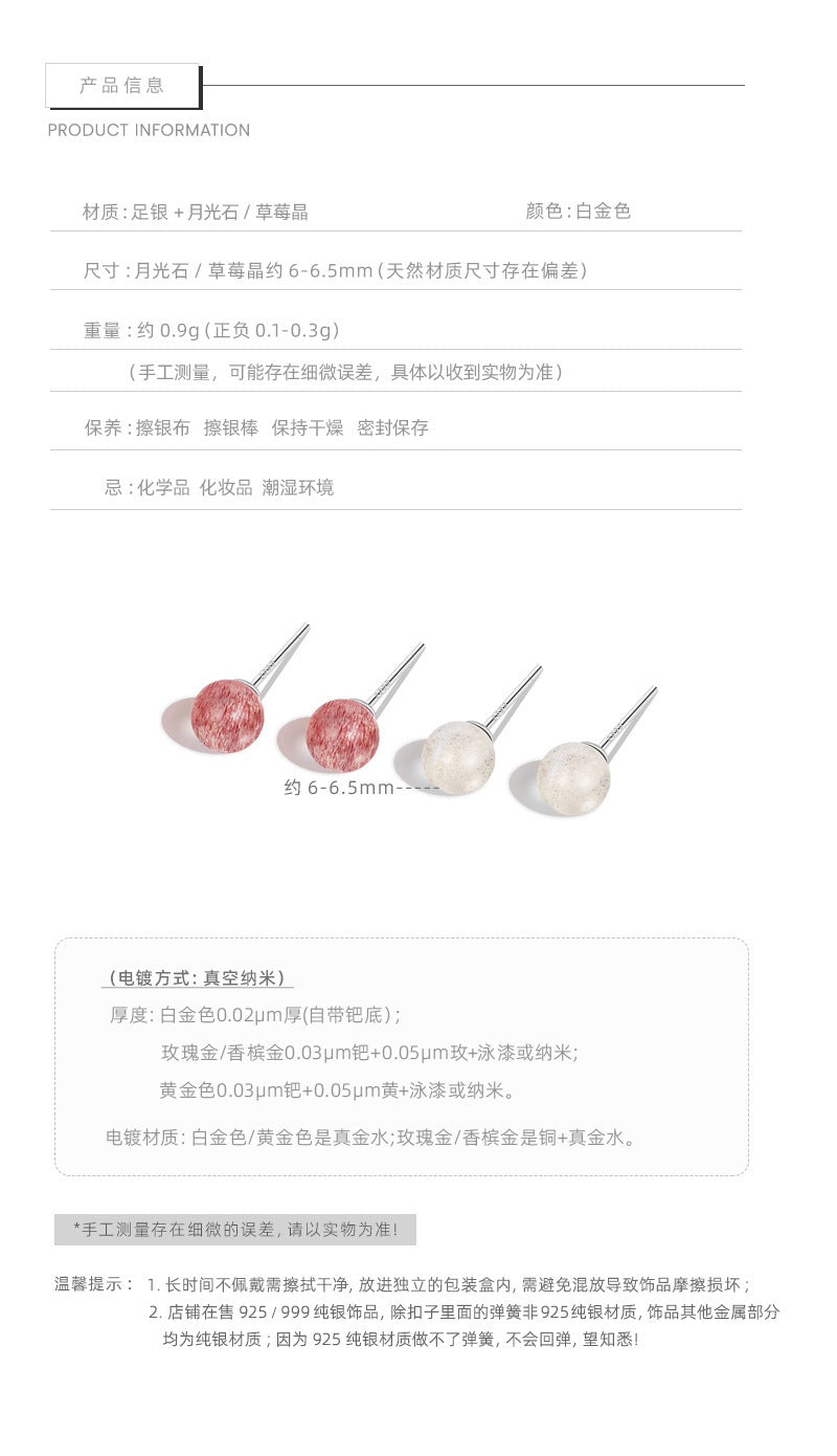 F廠【DQ10029E】足銀999簡約清新草莓晶月光石耳環女時尚精緻天然石純銀耳飾 25.06-2