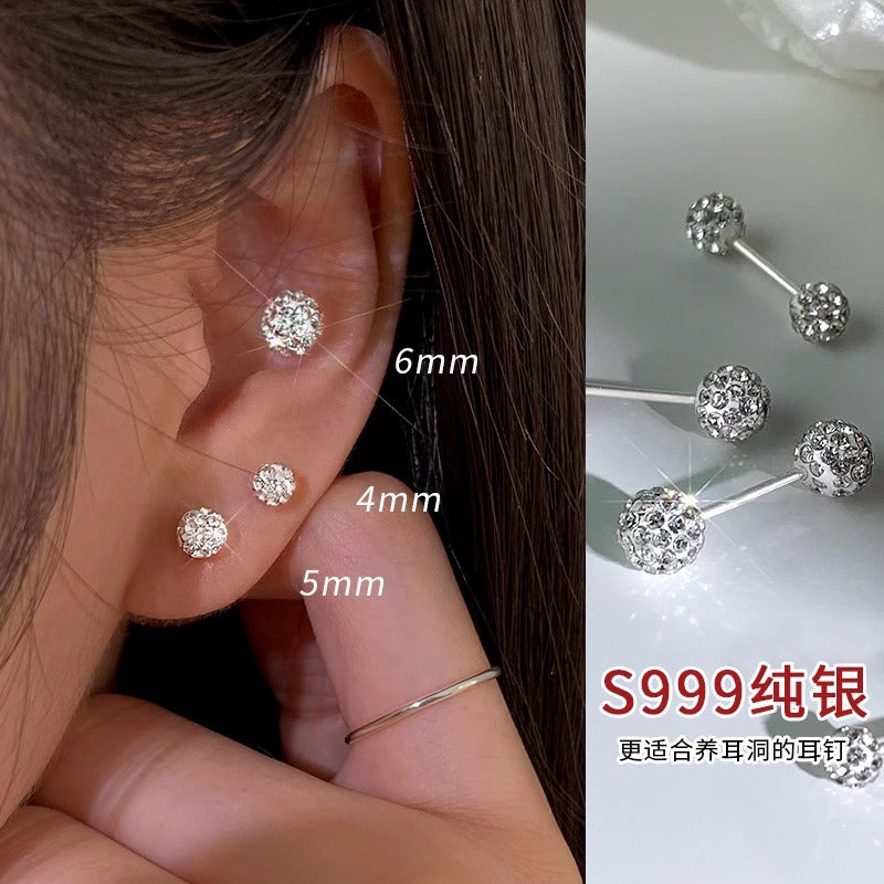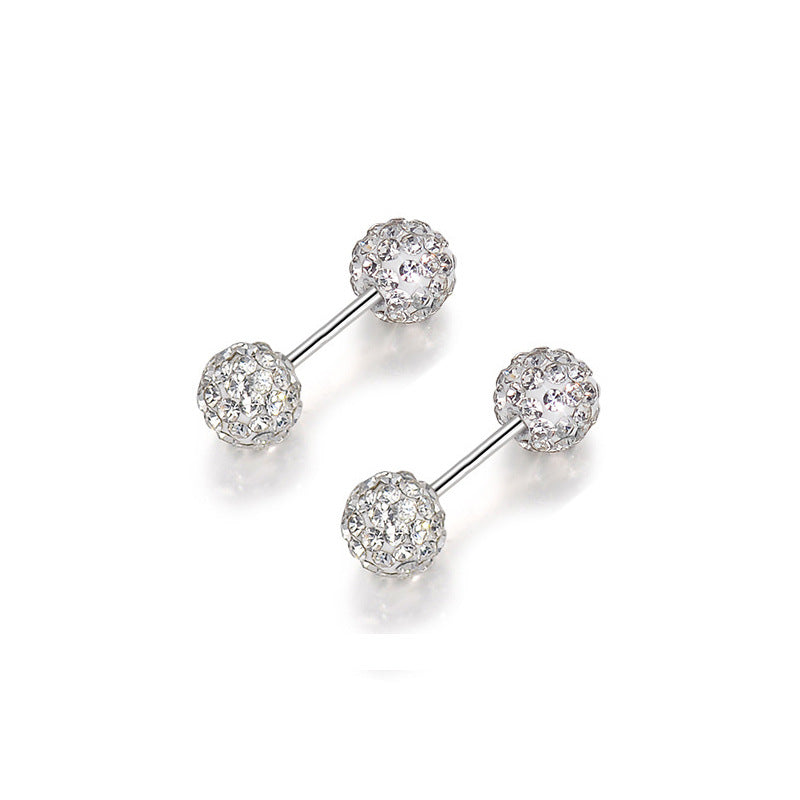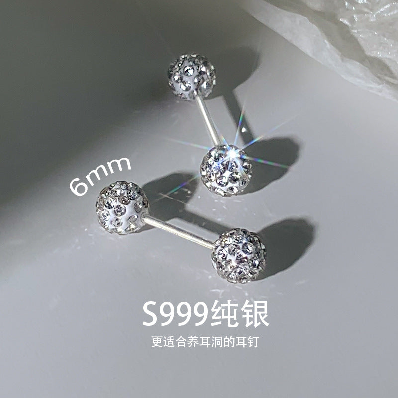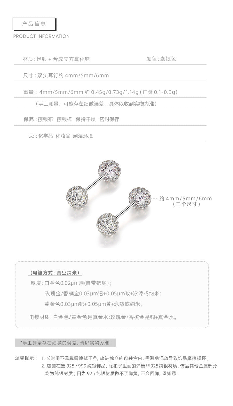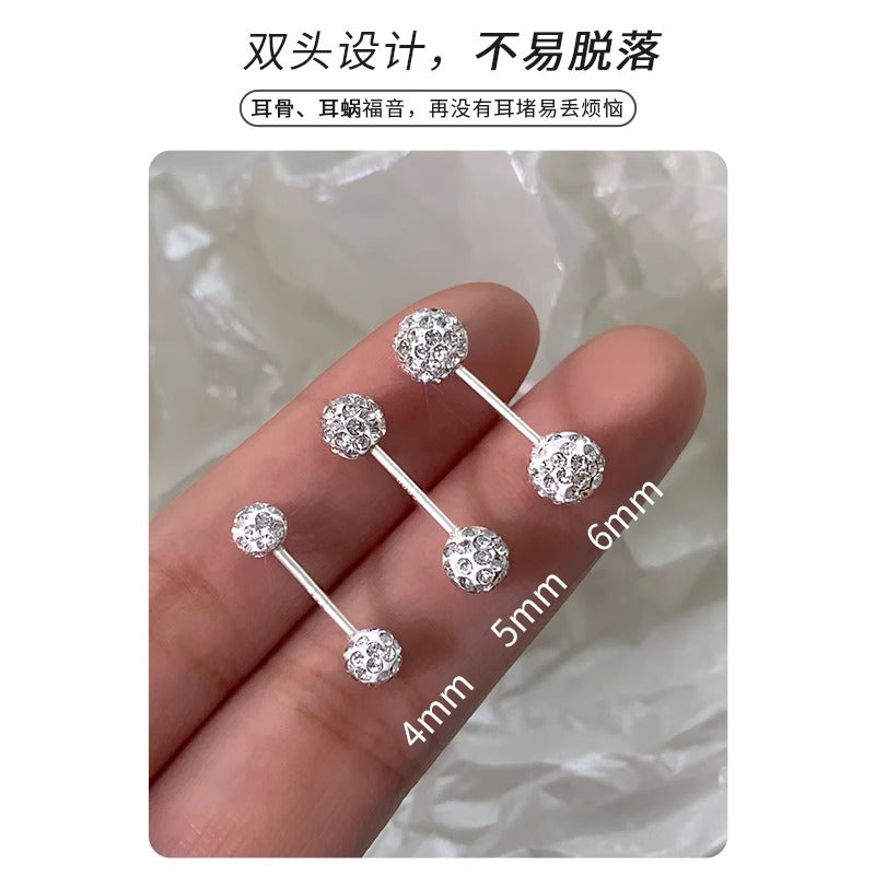 F廠【DQ10039E】999足銀雙頭香巴拉閃鑽耳環女小眾高級超閃耳骨釘養耳洞耳飾 25.04-1