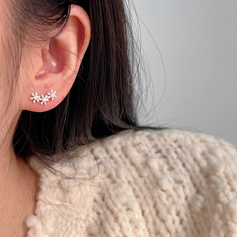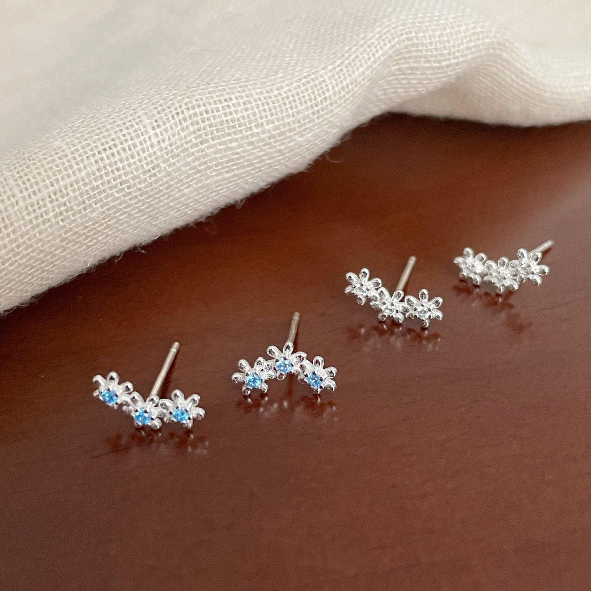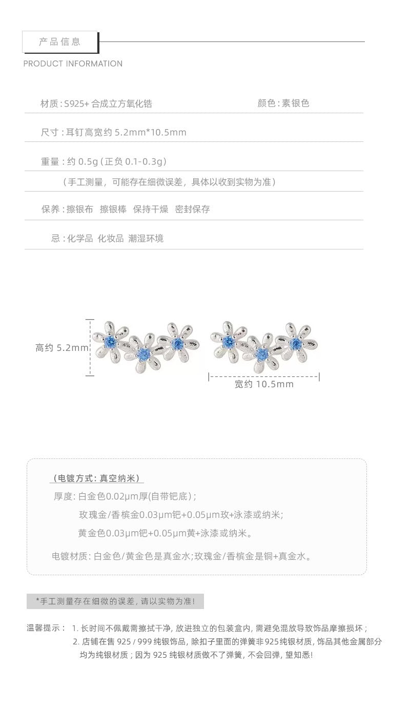 F廠【DQ10062E】S925純銀ins甜美花朵耳環女簡約精緻少女心三朵小花百搭耳飾 25.04-2