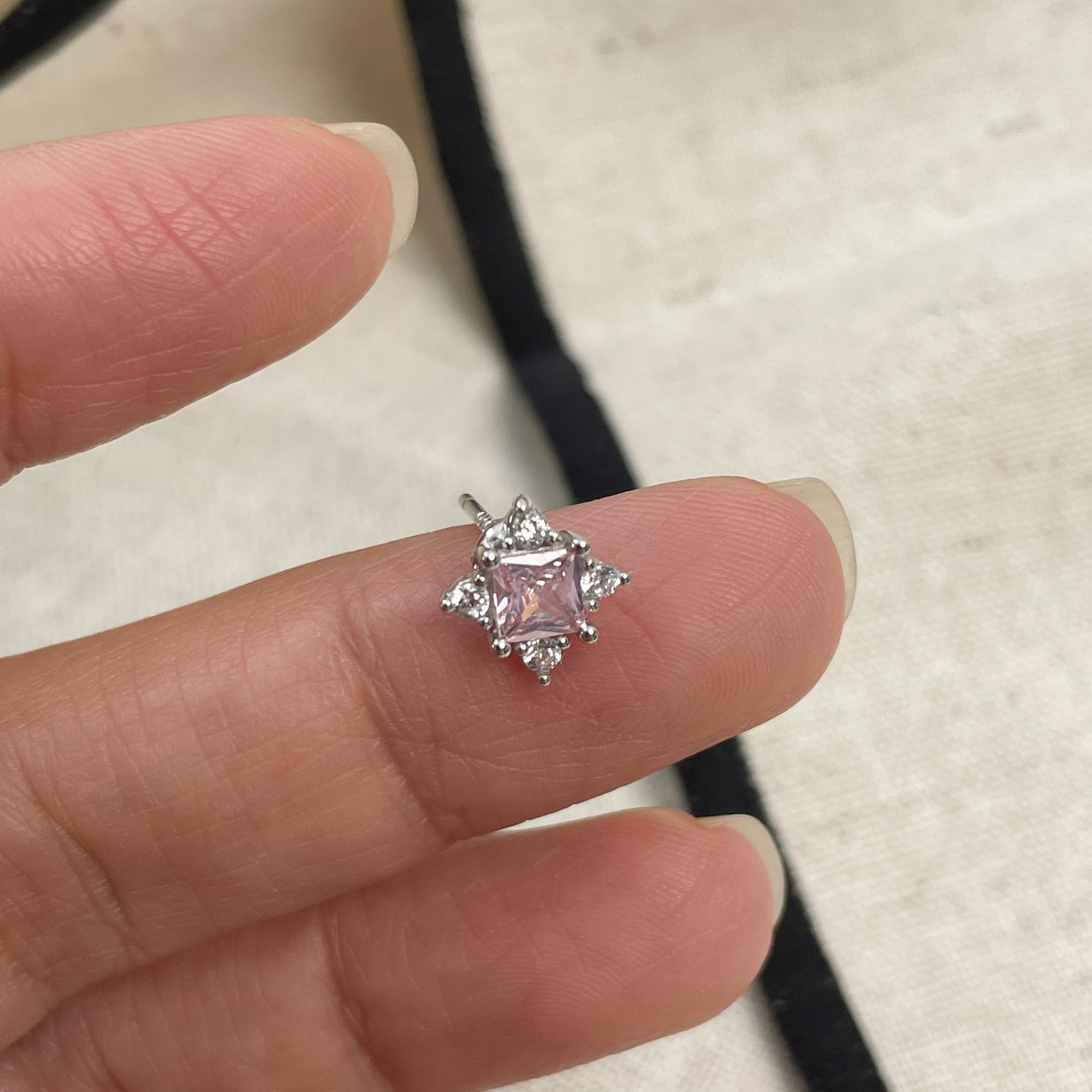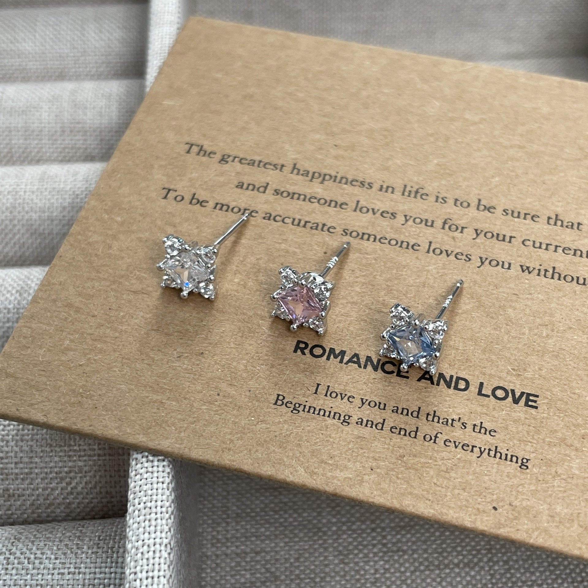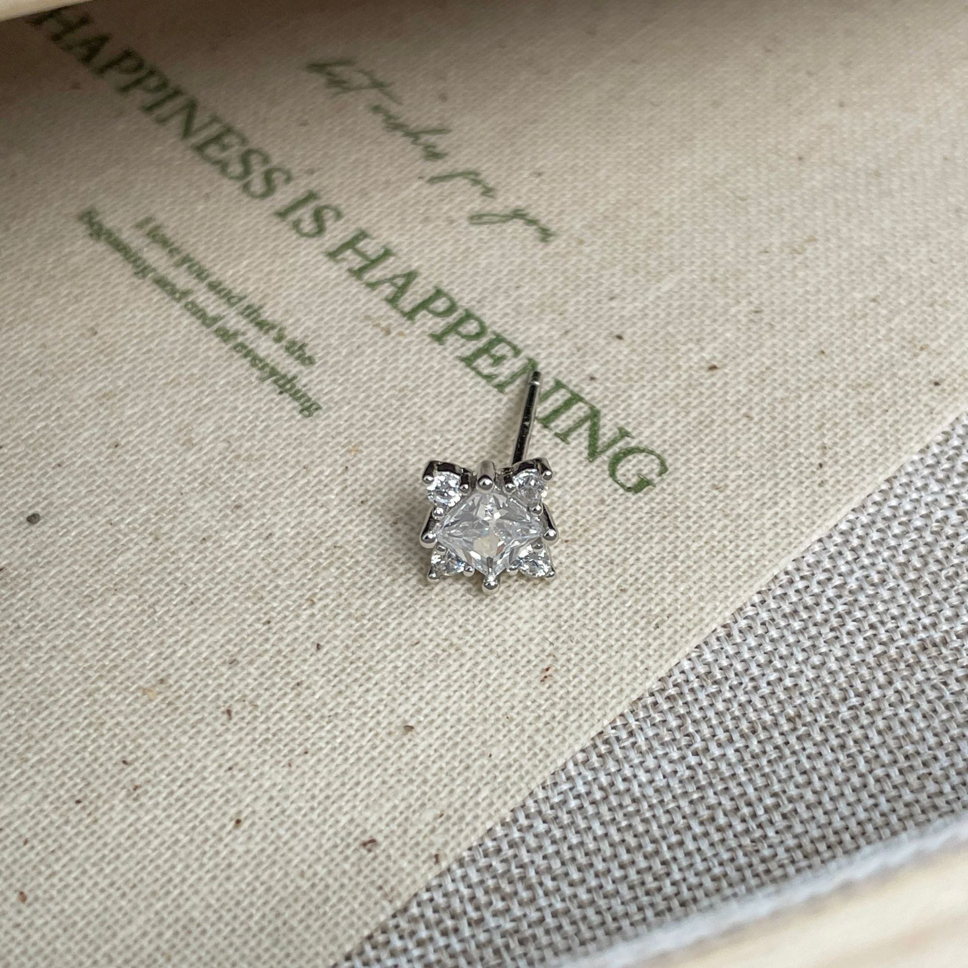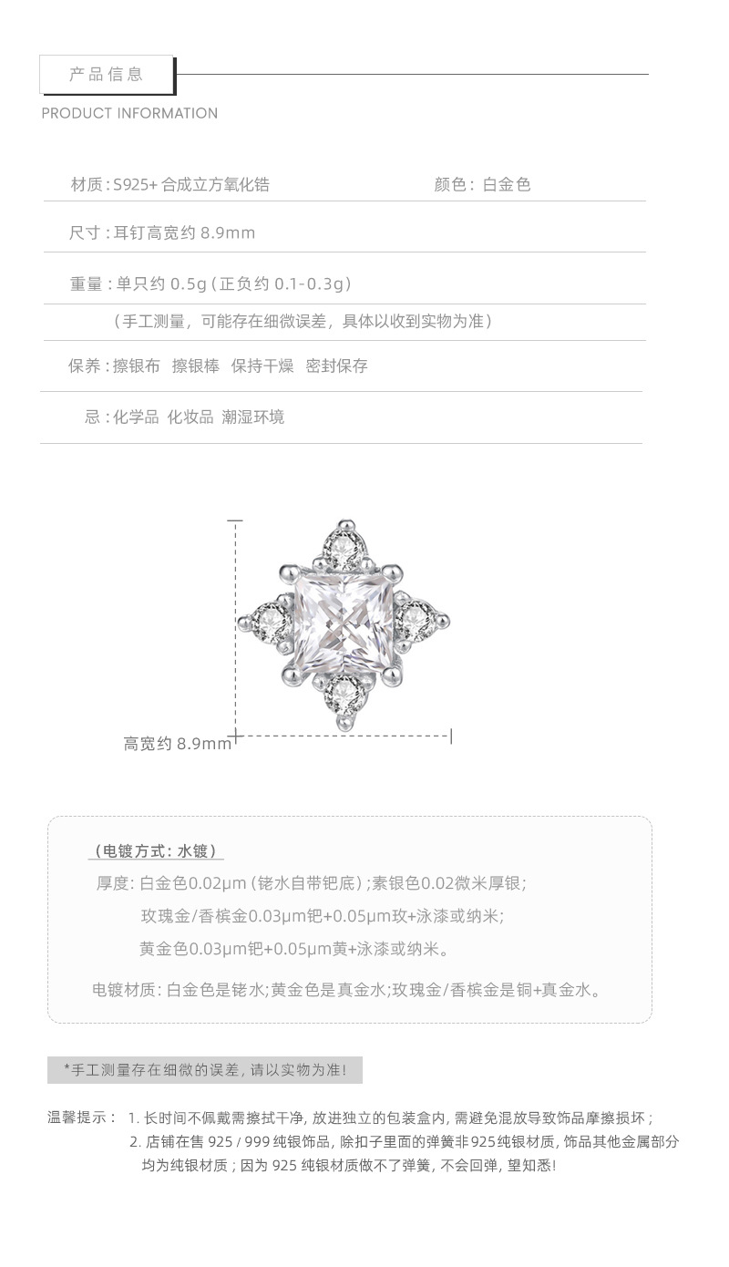F廠【DQ10067E】S925純銀小眾設計四芒星方糖耳環女精緻鋯石耳骨釘百搭耳飾潮 25.09-1
