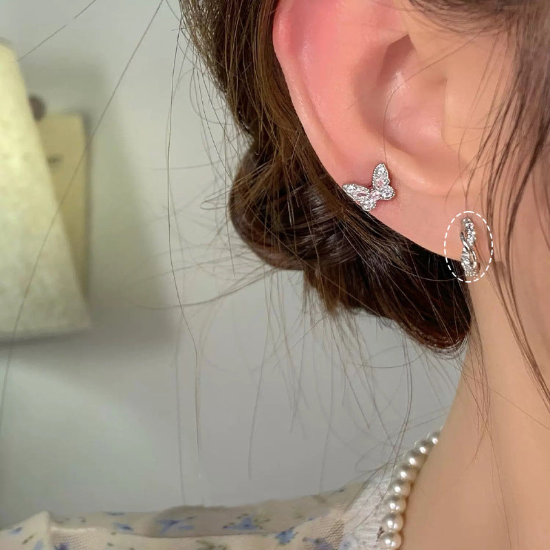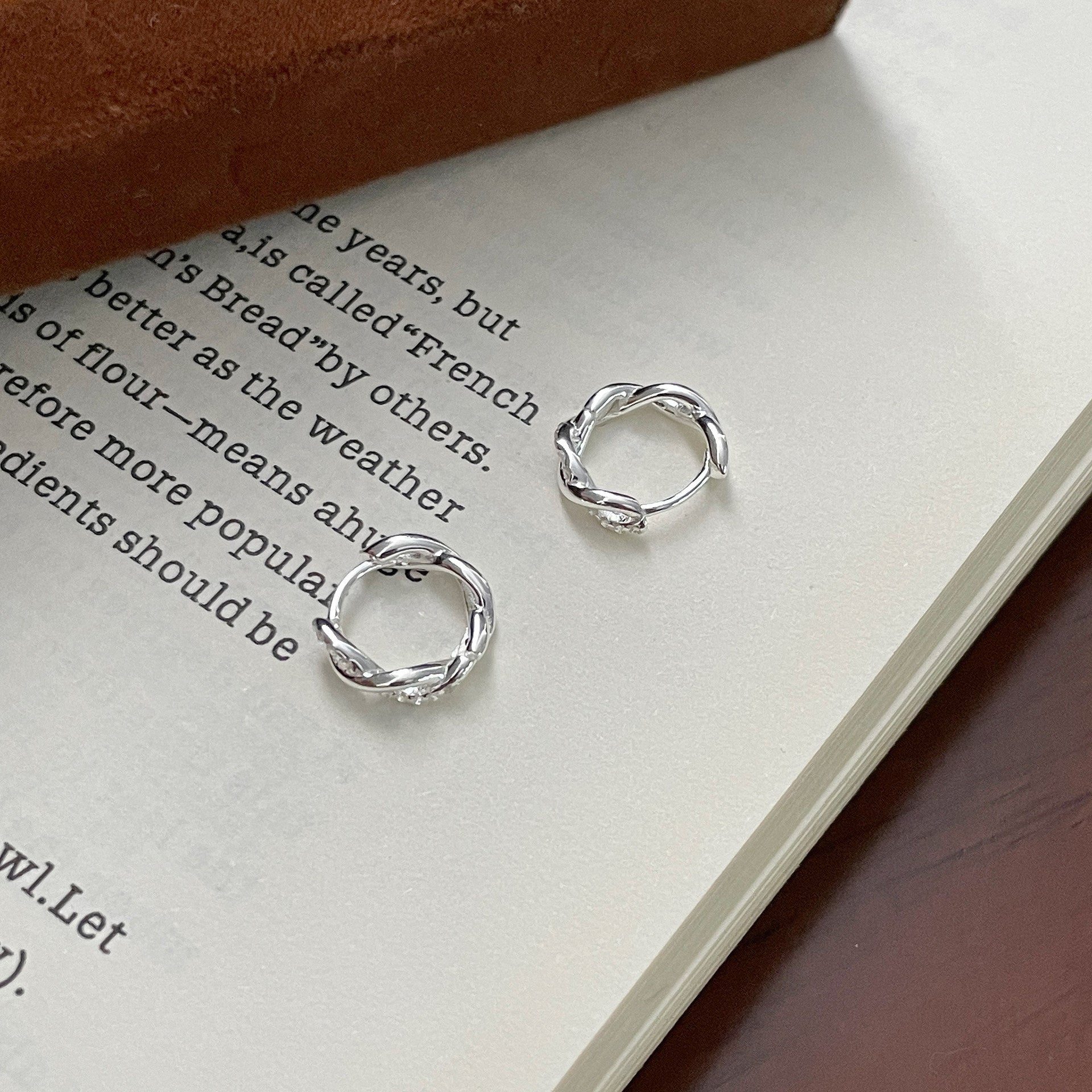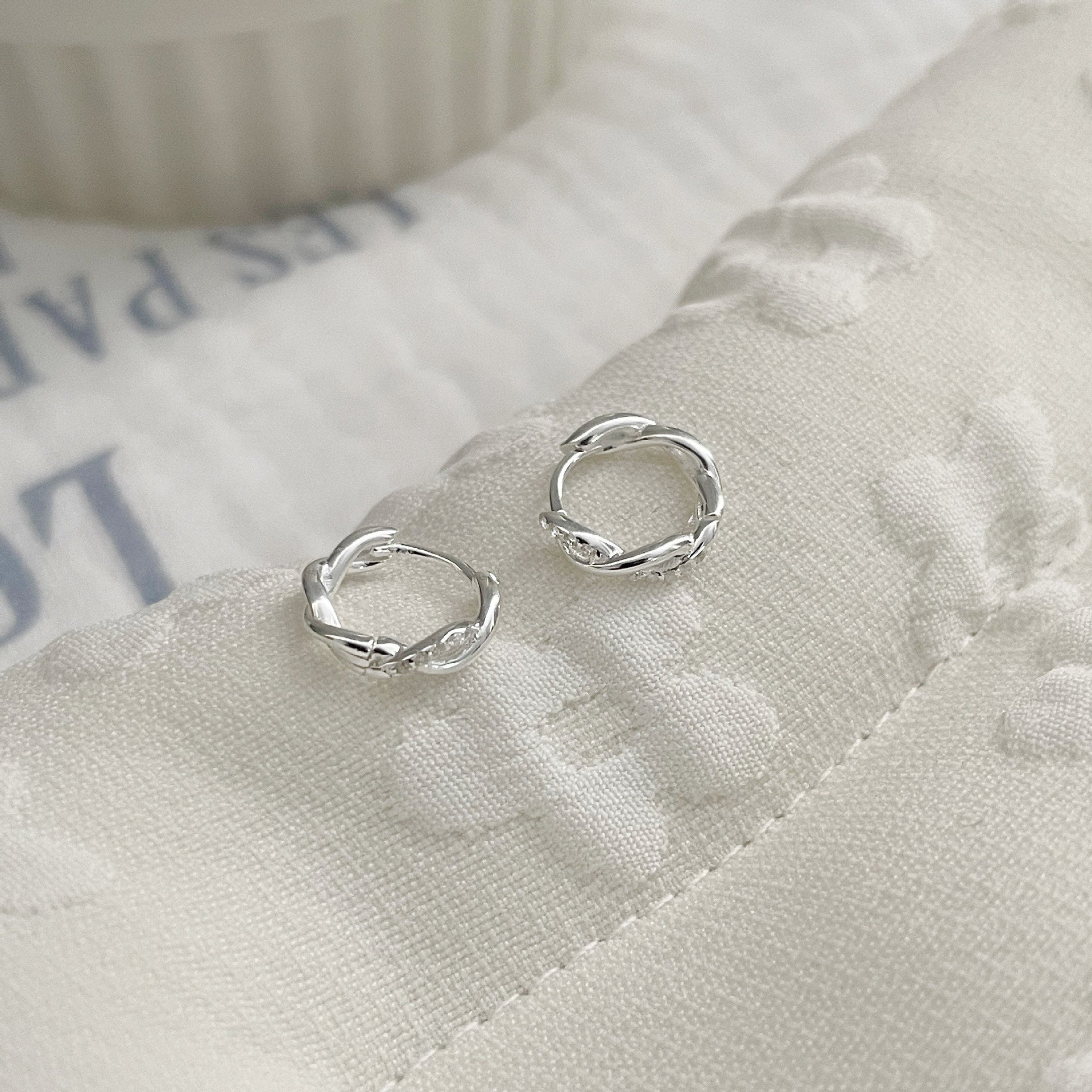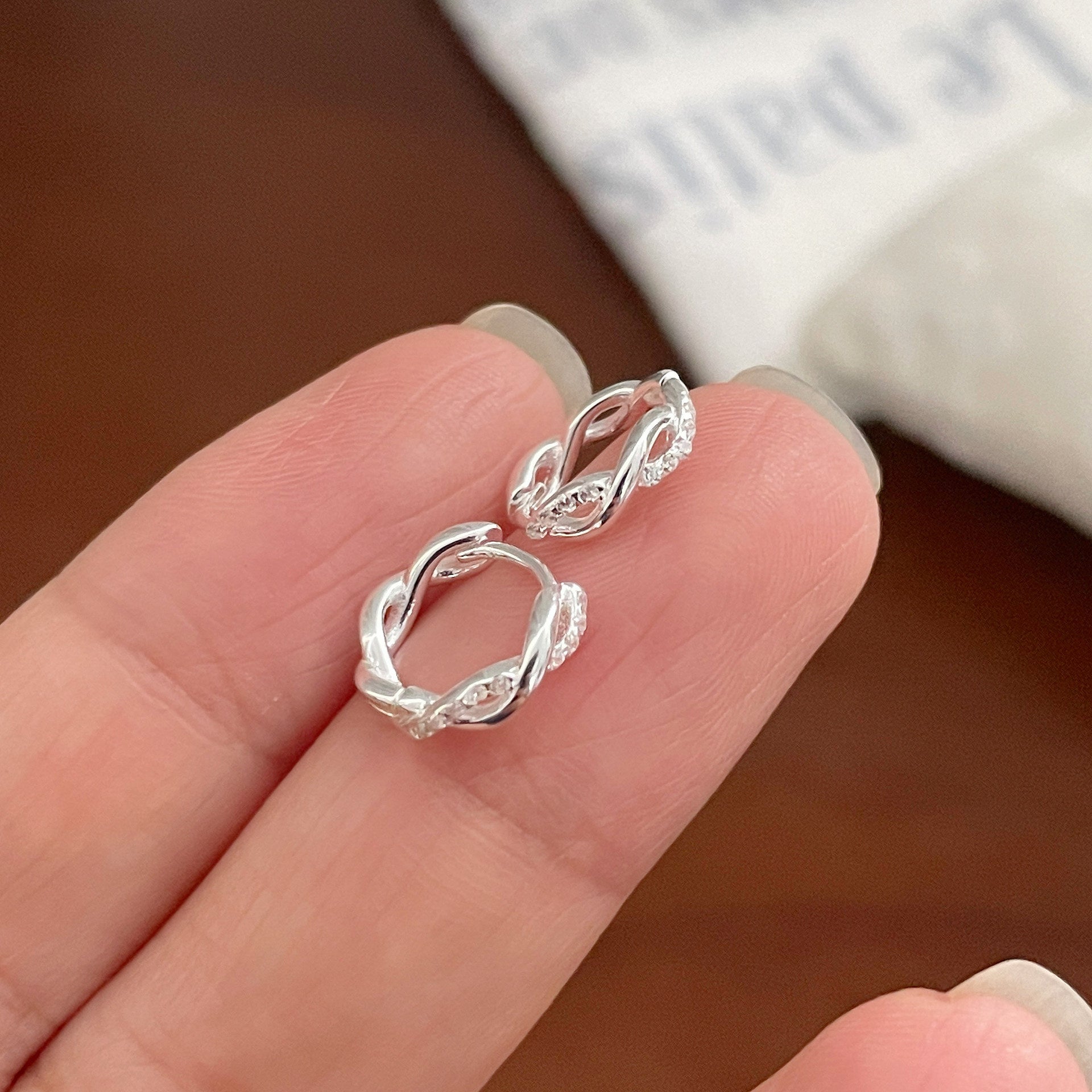F廠【DQ10083E】S925純銀精緻小巧扭繩麻花耳扣女冷淡風微鑲百搭耳環耳環 25.06-4