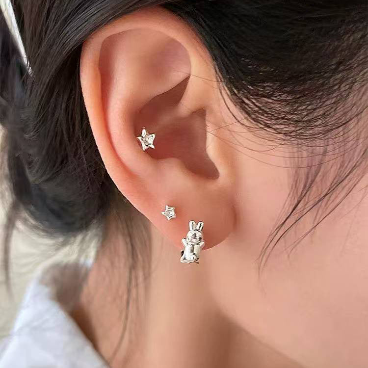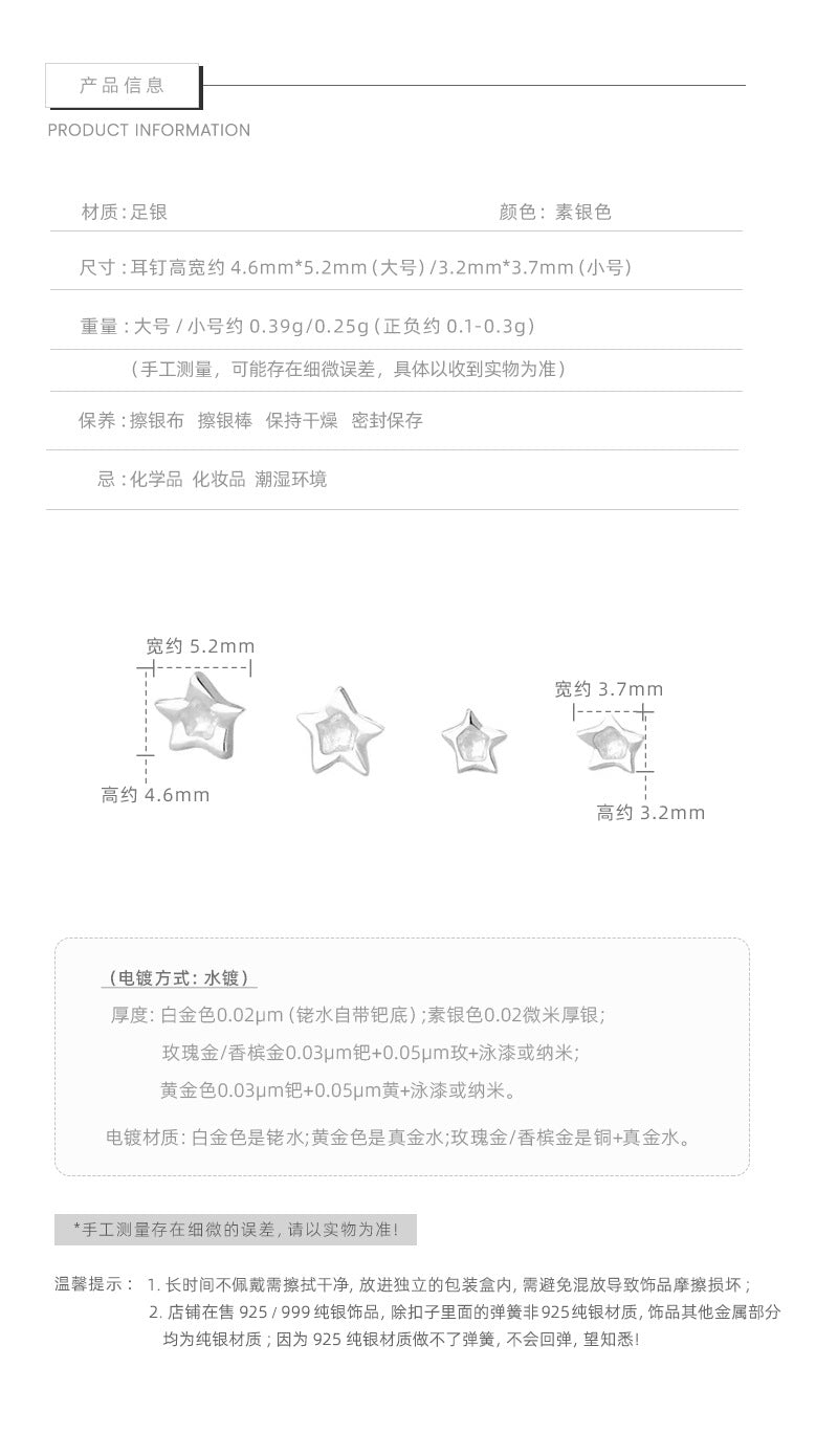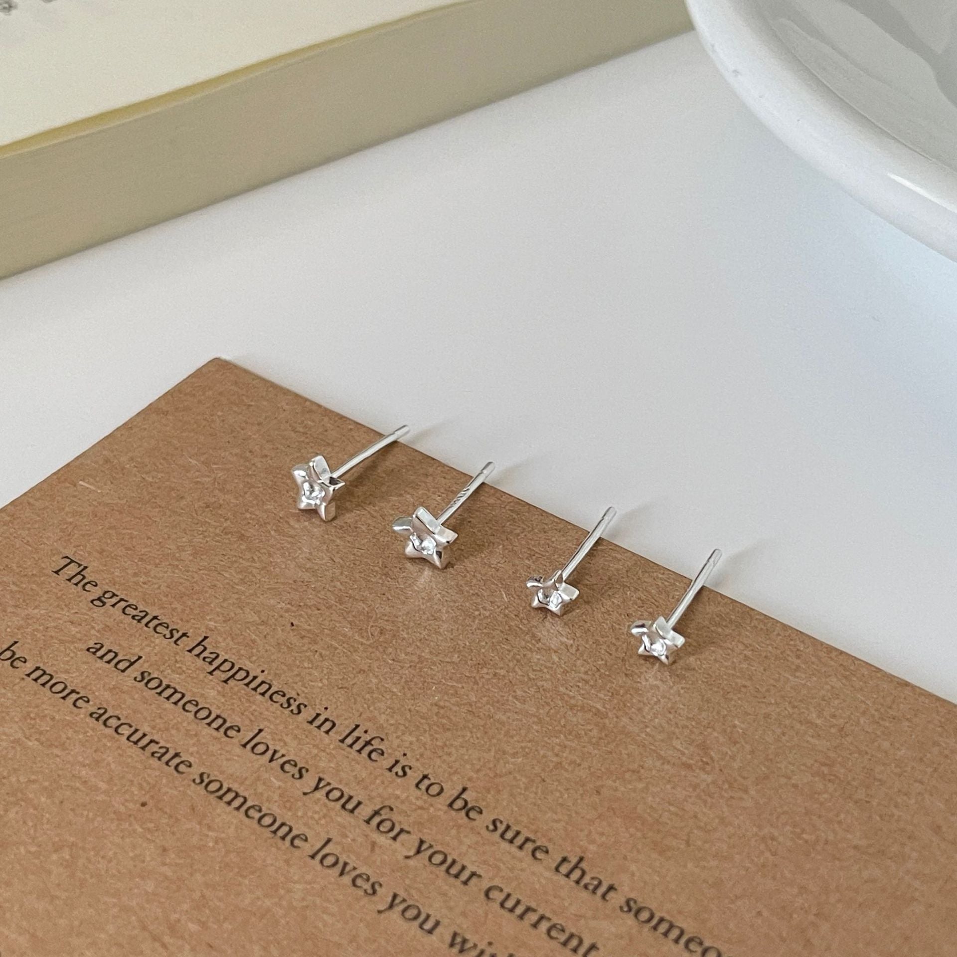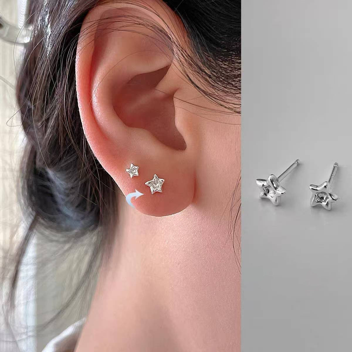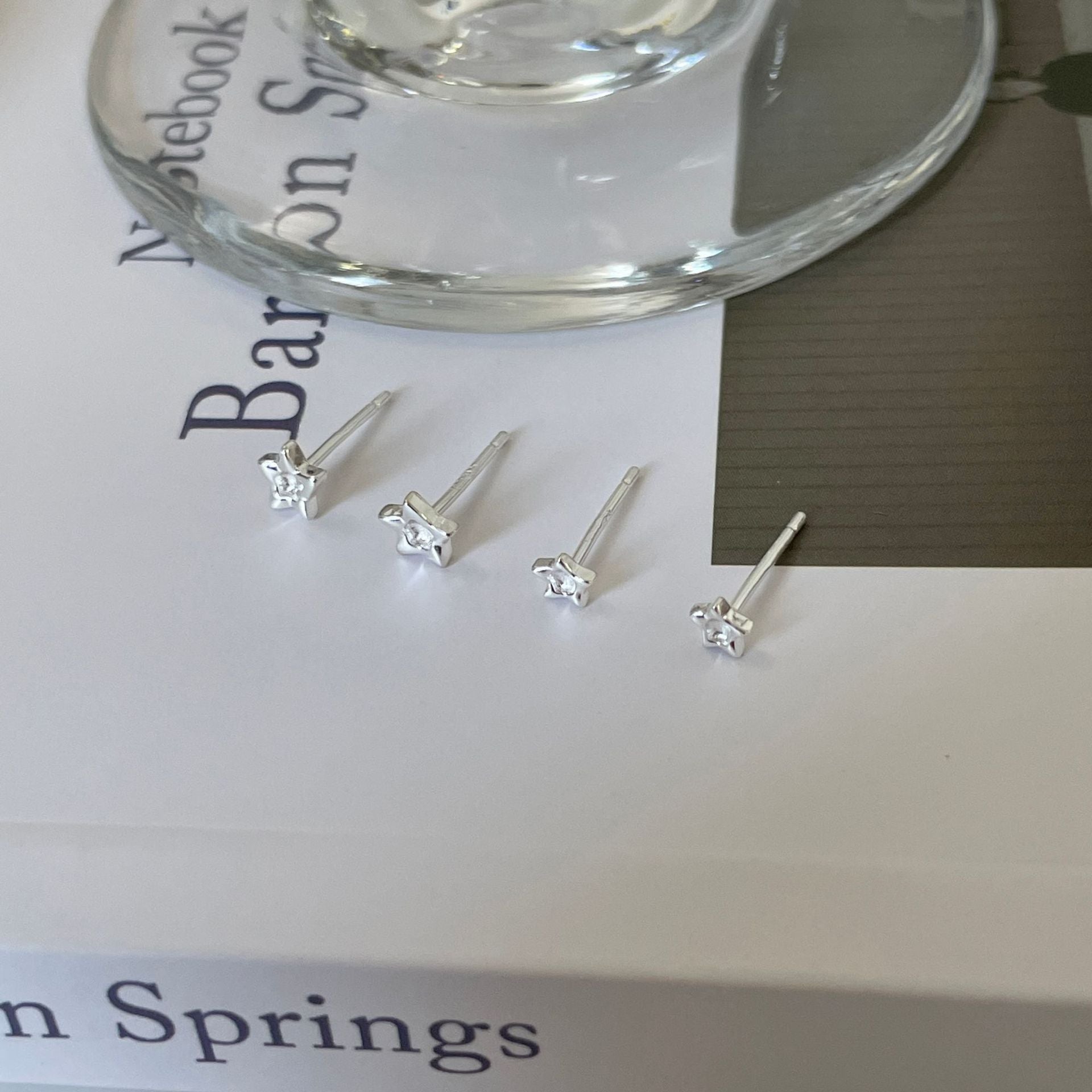 E廠【DQ10097E】S999純銀簡約小清新星星耳環女迷你設計星形耳骨釘疊戴耳飾潮 25.10-3