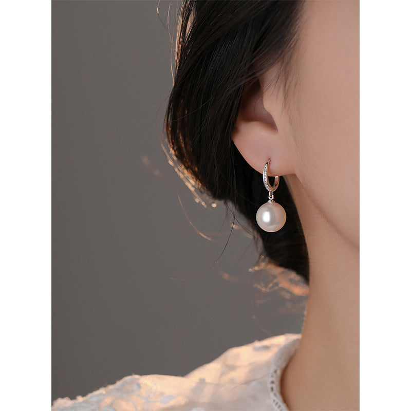 F廠【DQ10106E】S925純銀輕奢正圓仿珍珠耳扣女氣質微鑲精緻耳環高級感耳飾潮 25.09-3