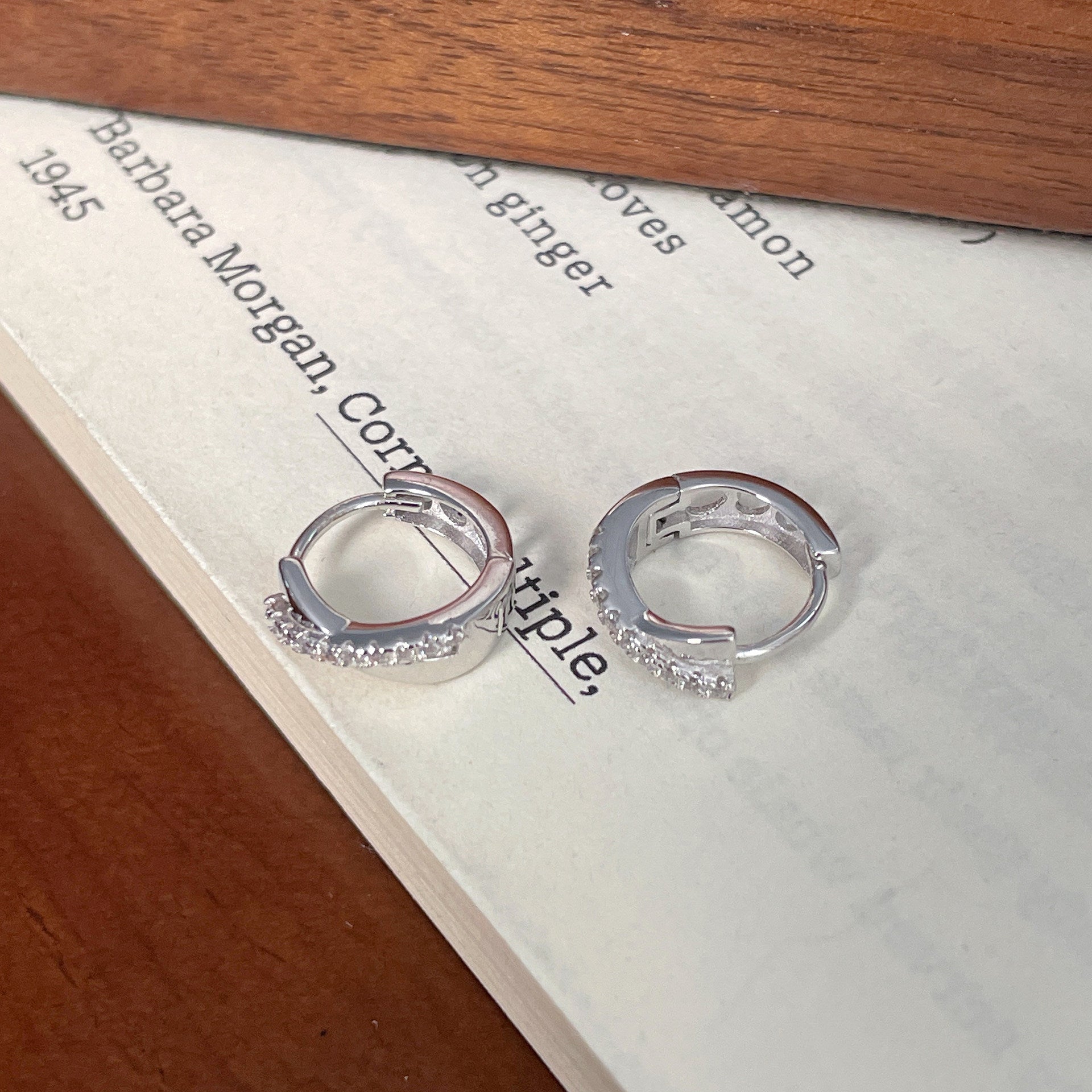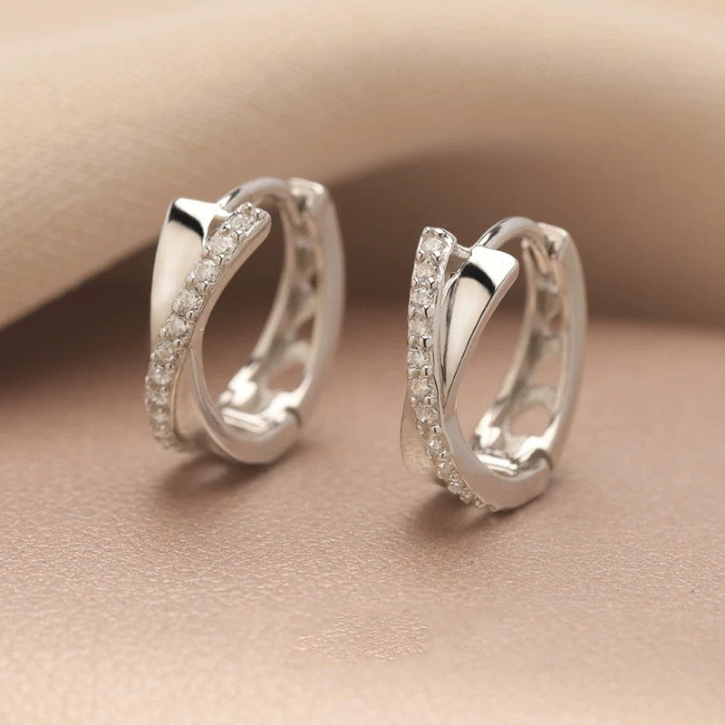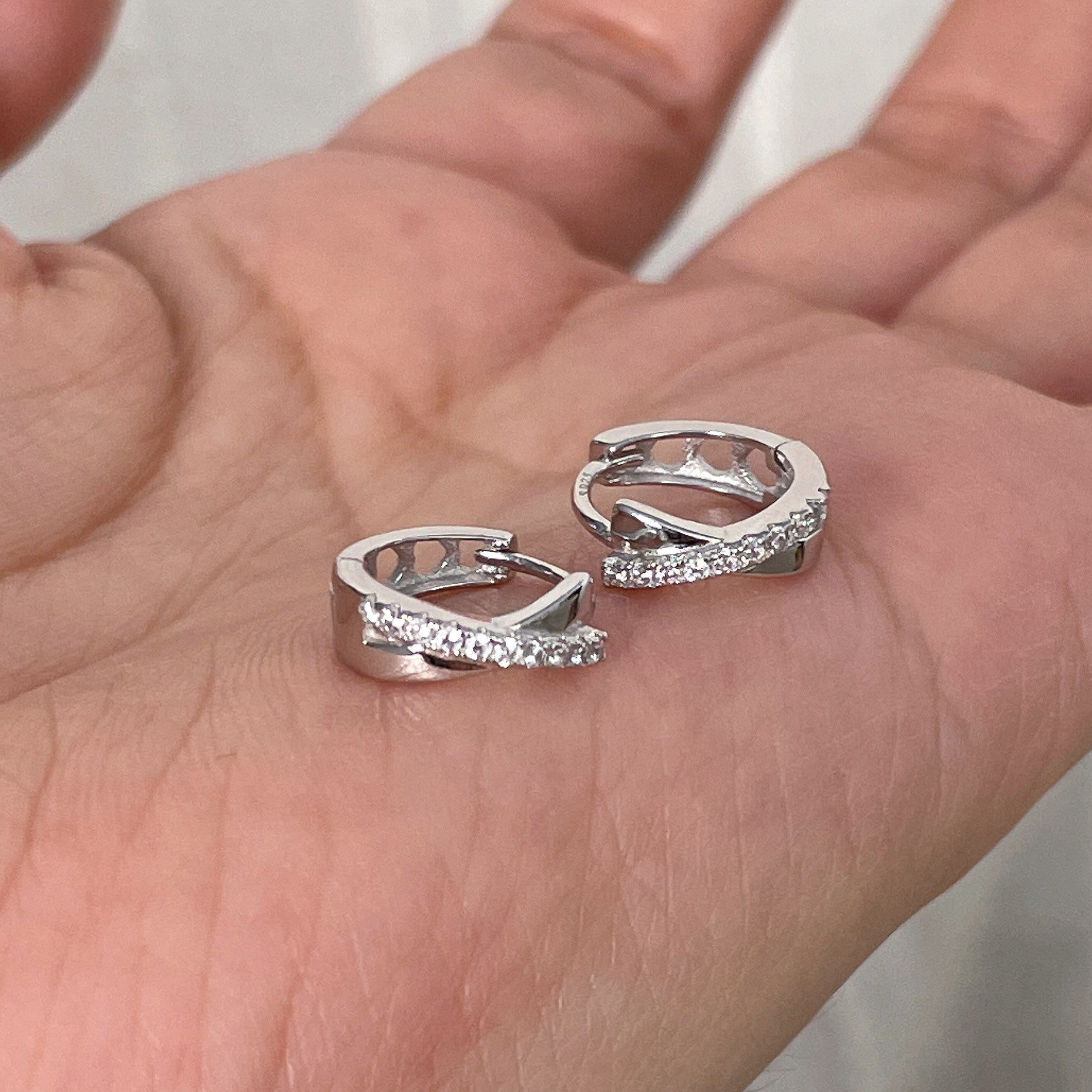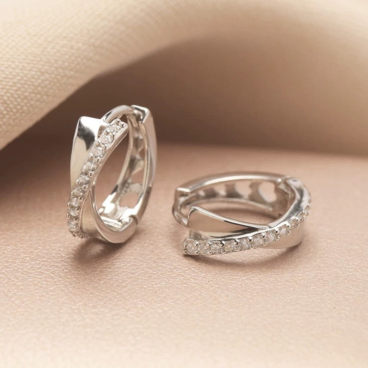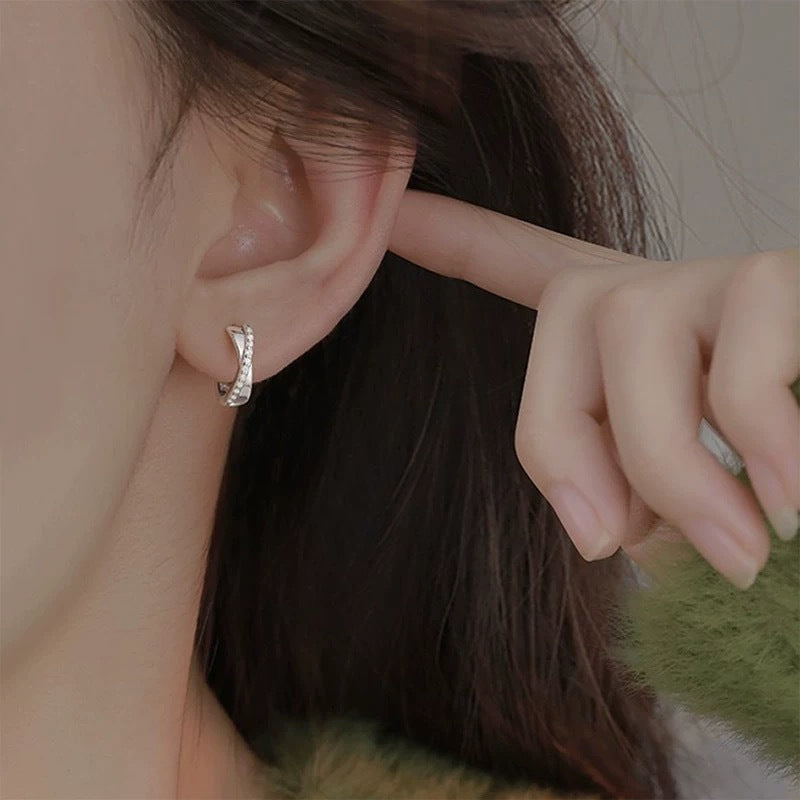 F廠【DQ10414E】S925純銀小眾設計感交叉耳扣女簡約氣質微鑲鋯石百搭耳環耳飾 25.06-4