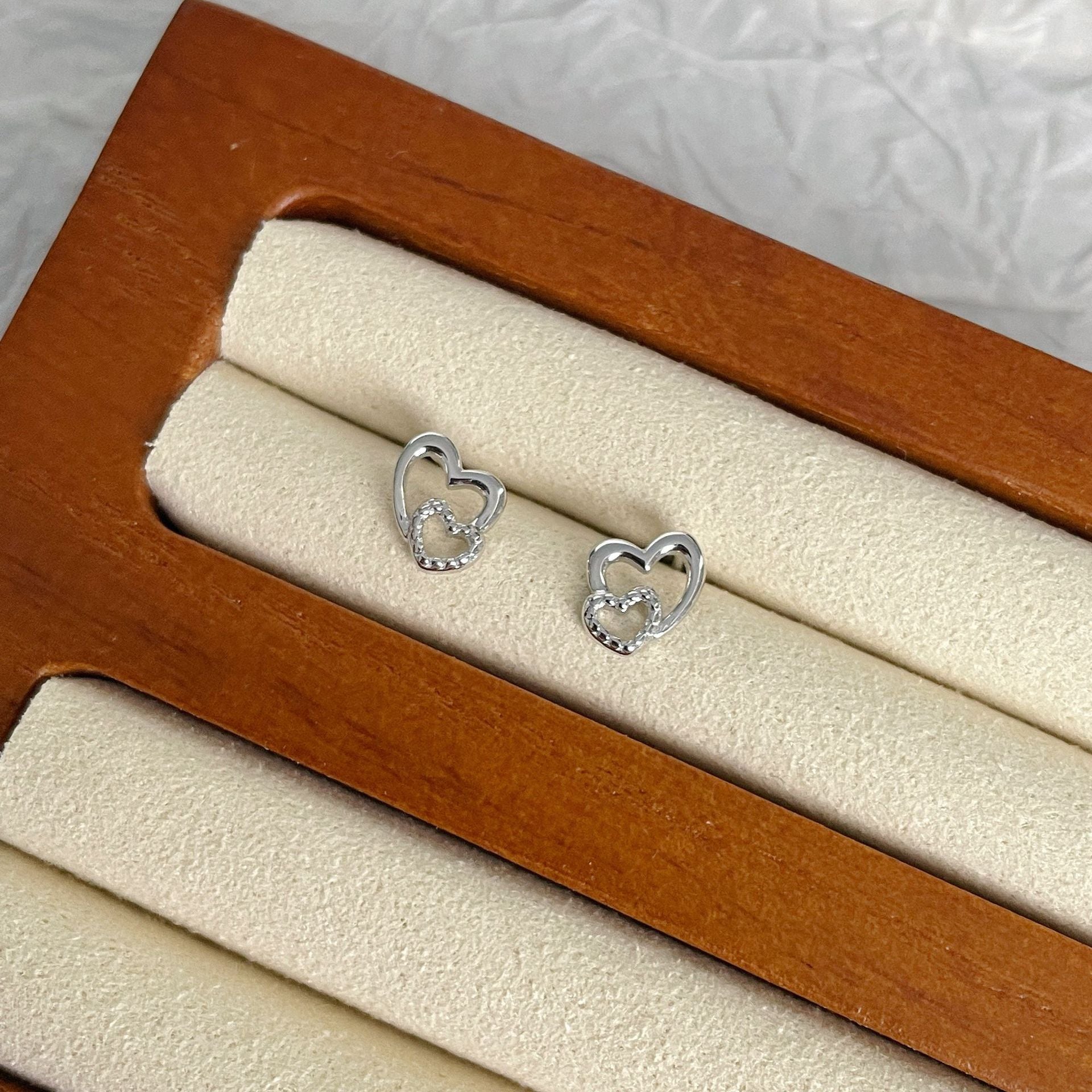 F廠【DQ10422E】S925純銀小眾設計感愛心耳環女日韓簡約鏤空心形日常百搭耳飾 25.06-4