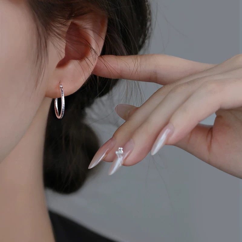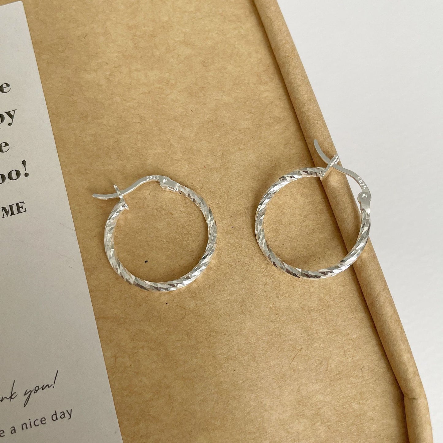 F廠【DQ10425E】日韓簡約車花扭紋圓圈耳扣女S925純銀素圈精緻高級感百搭耳環 25.03-3
