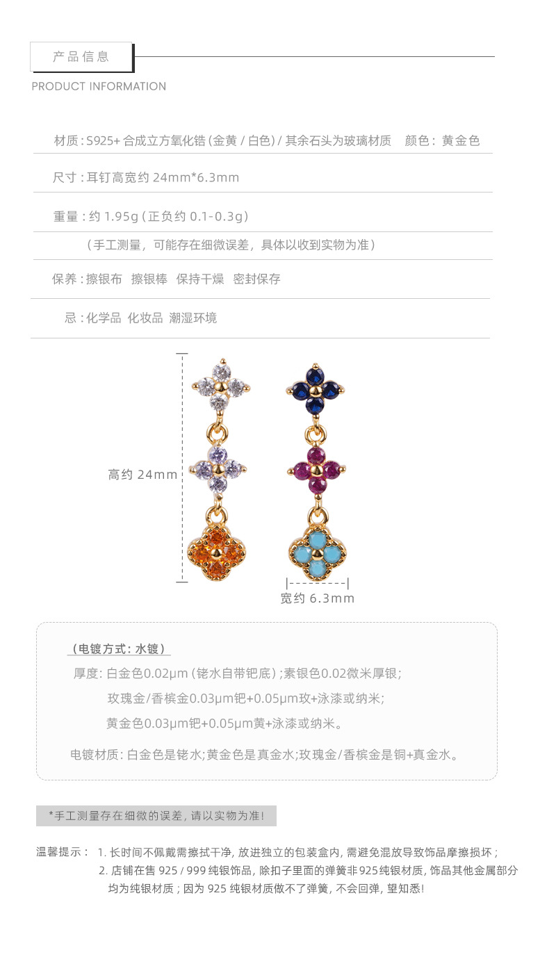 F廠【DQ10437E】復古多巴胺四葉草耳環女S925純銀法式高級感仿藍松石氣質耳飾 25.09-1