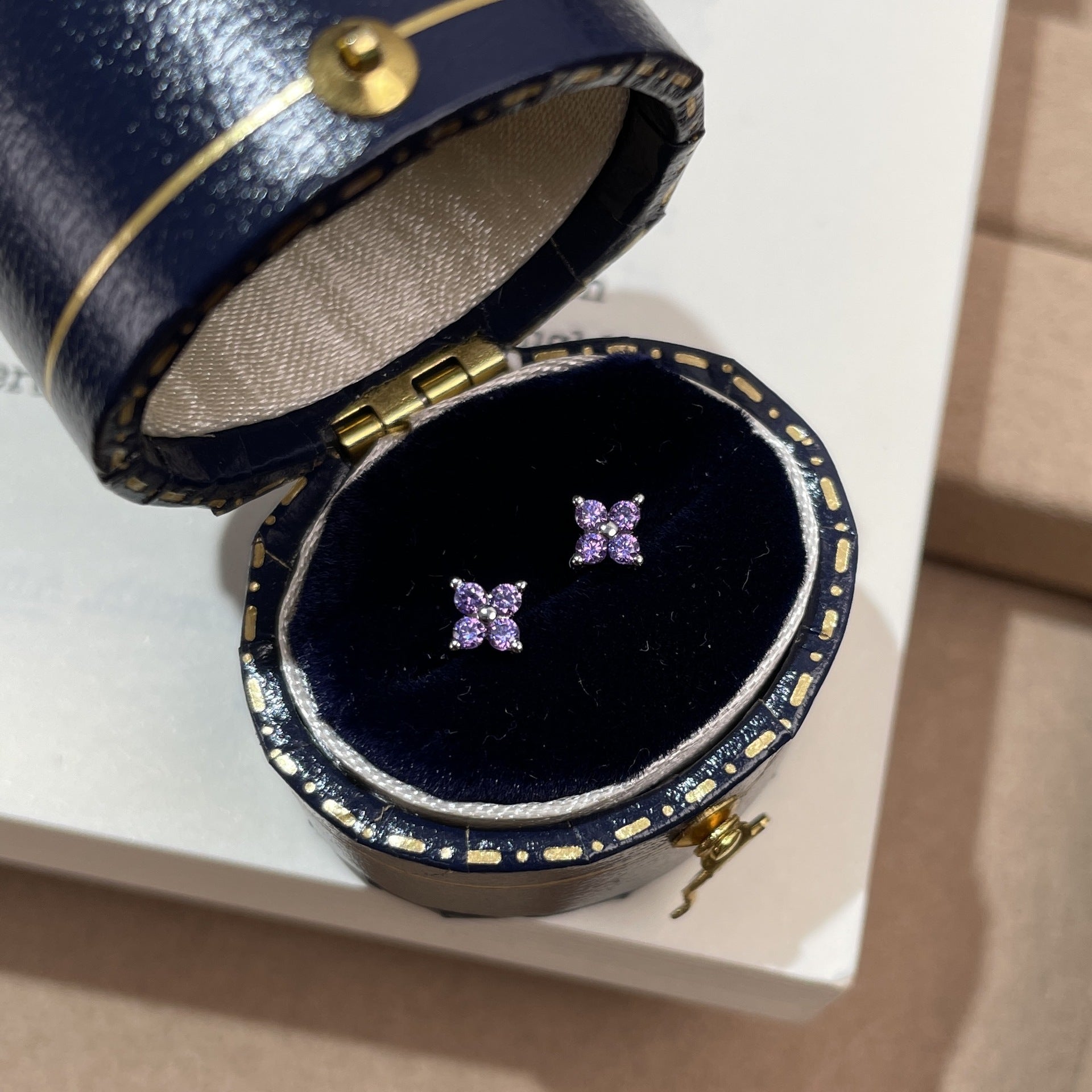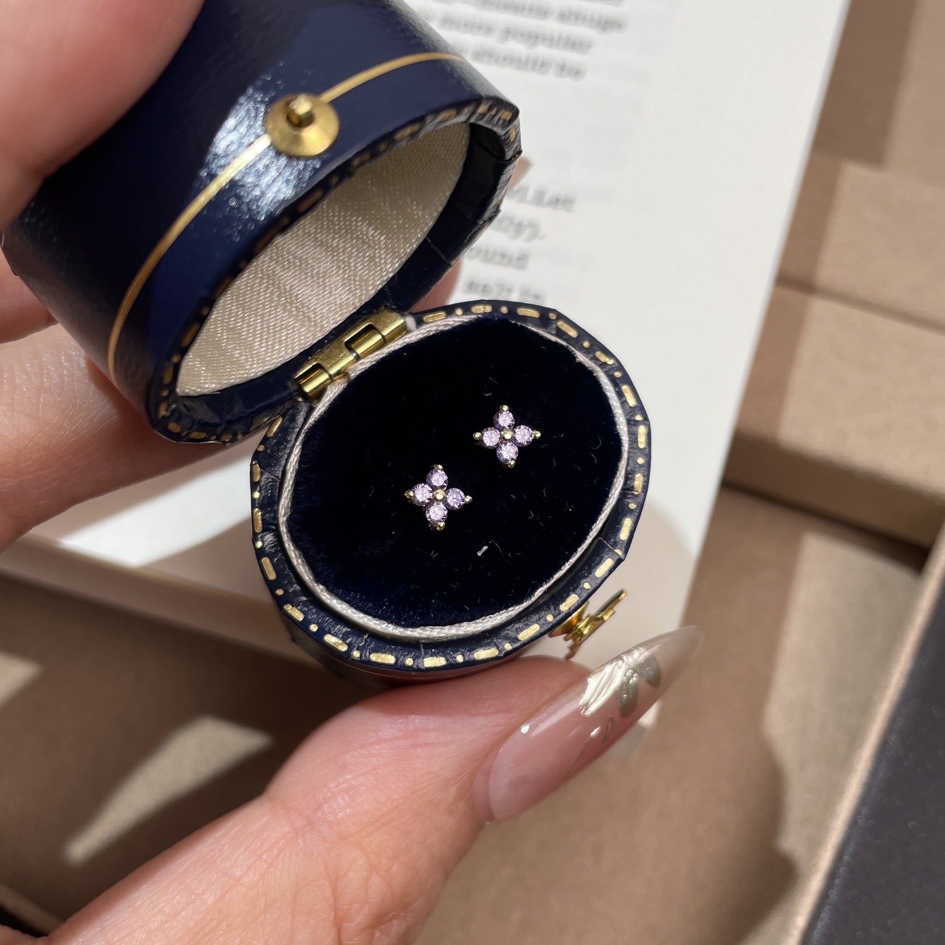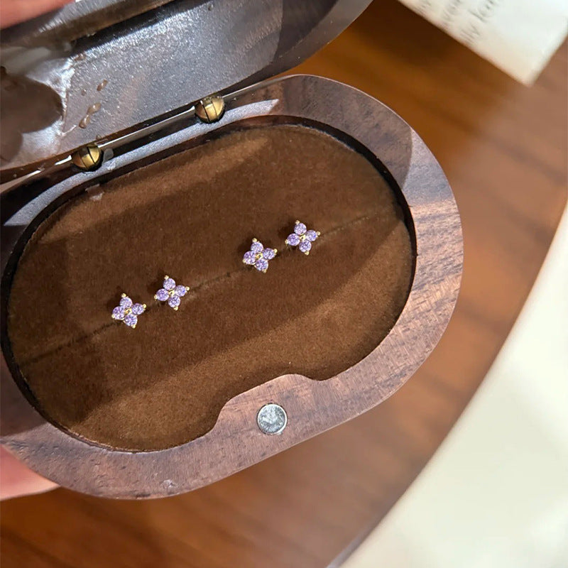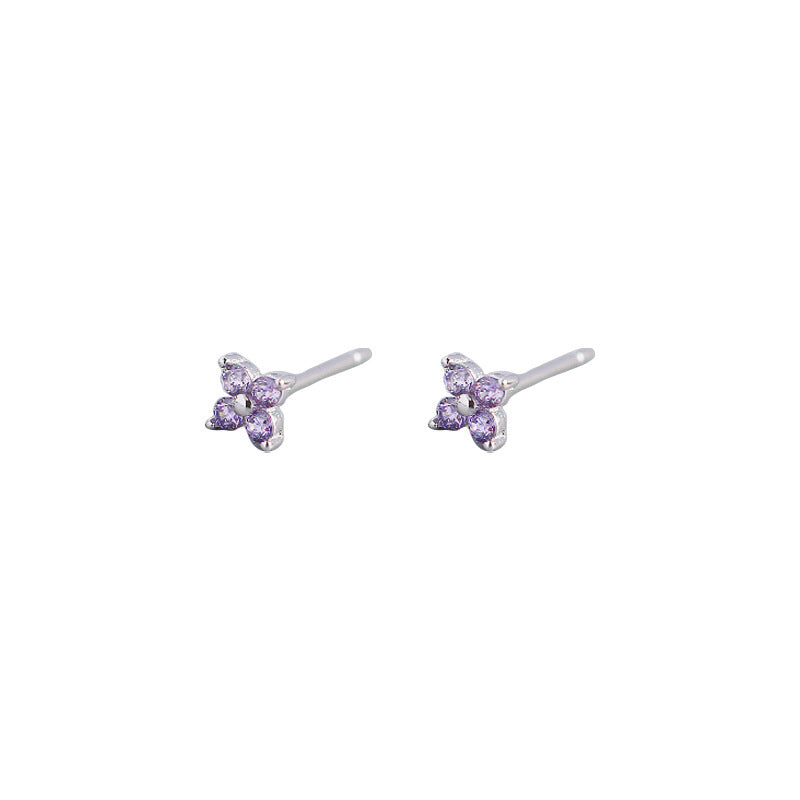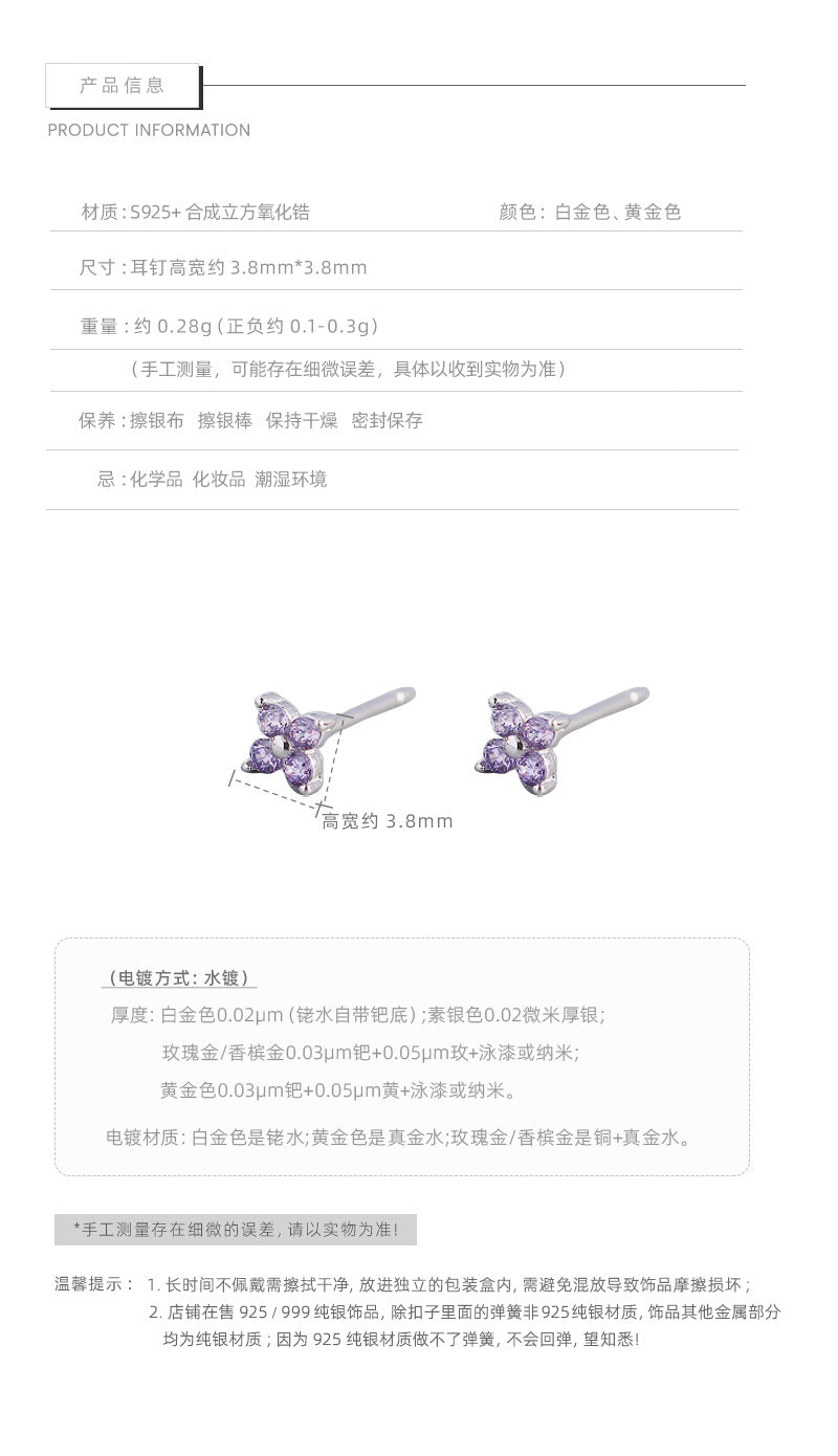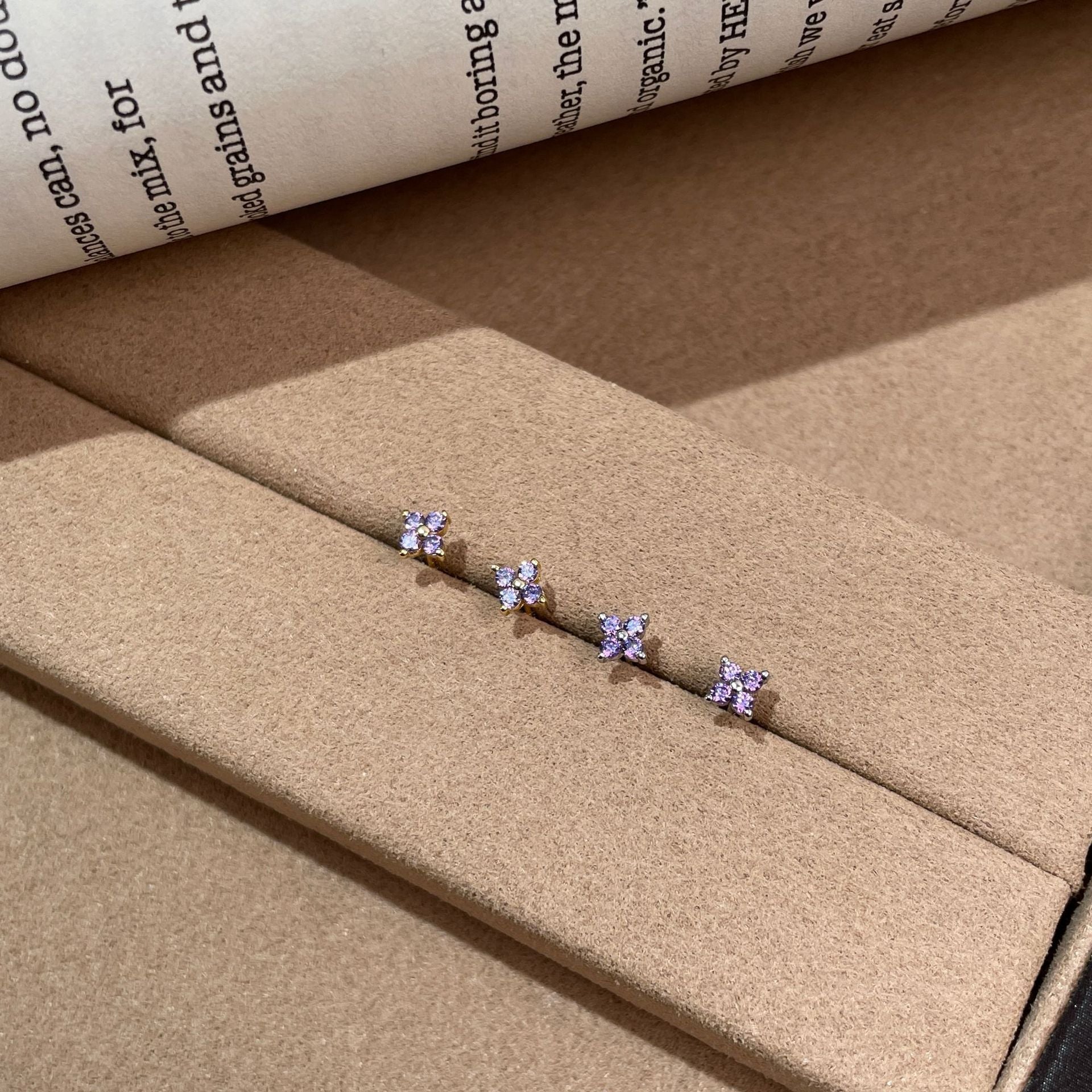 F廠【DQ10462E】S925純銀韓迷你紫色四葉草耳環女精緻甜美四葉花百搭耳飾潮 25.08-3