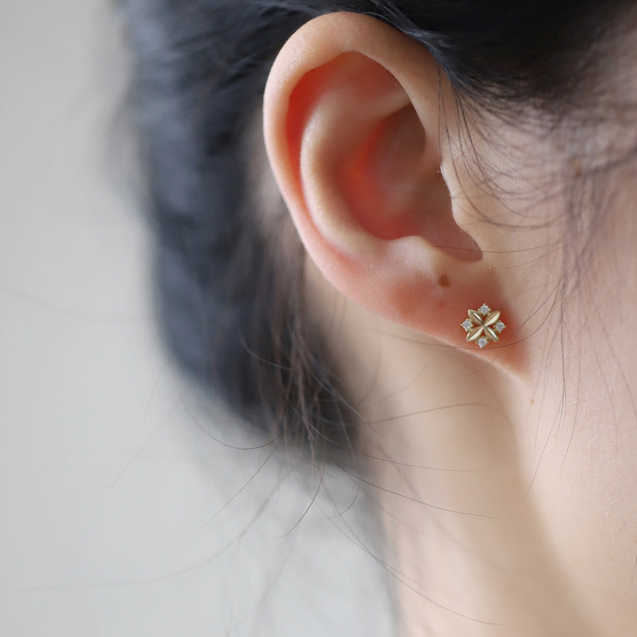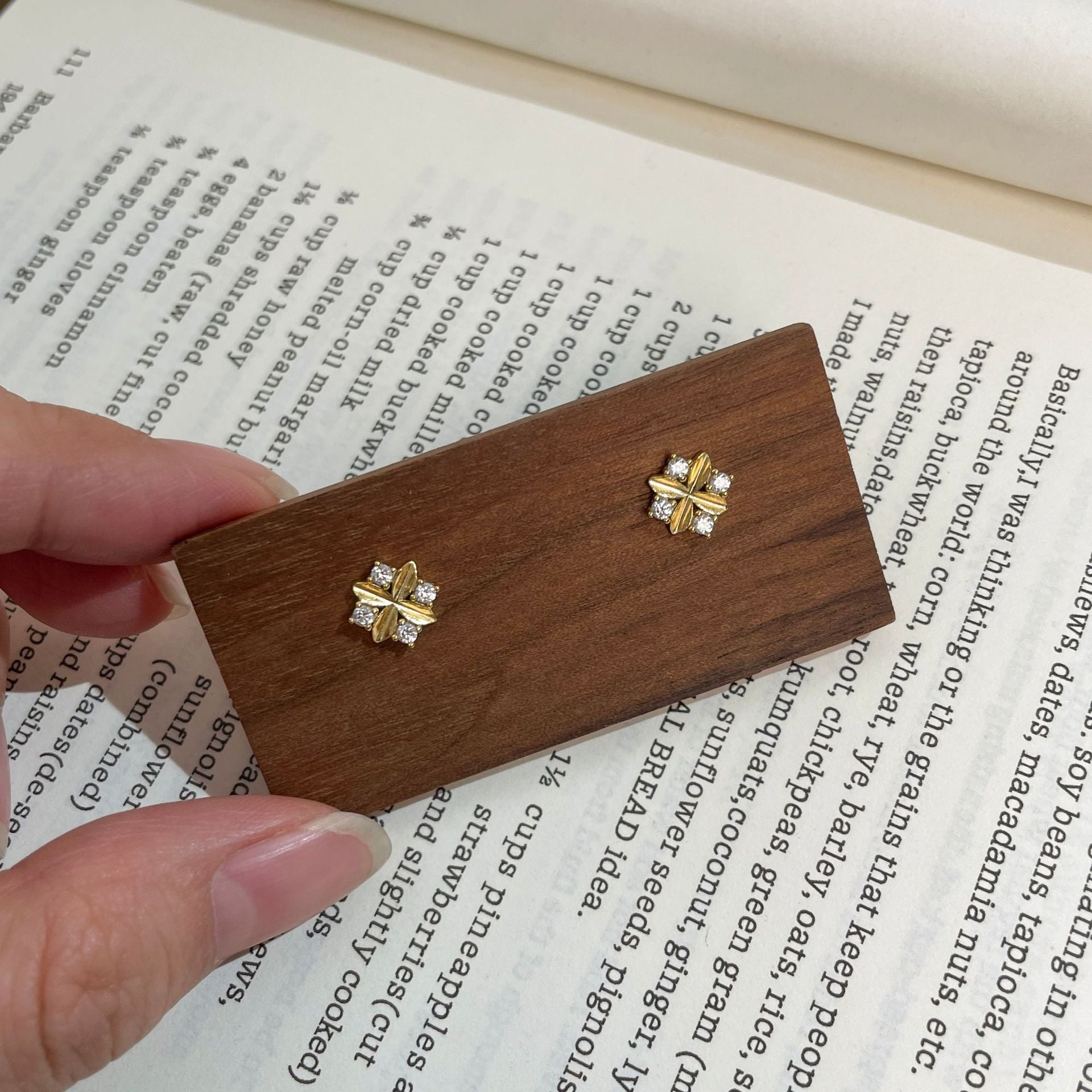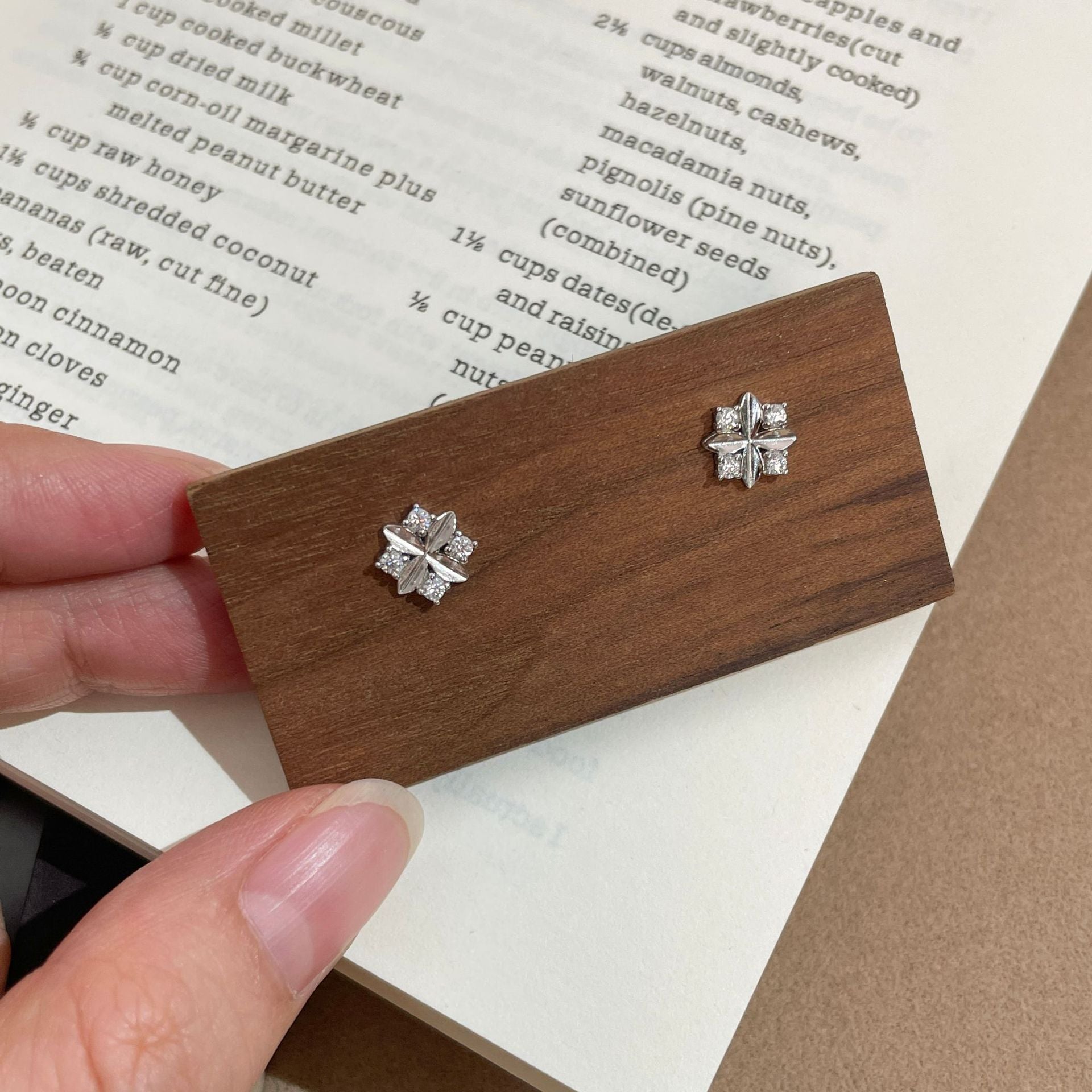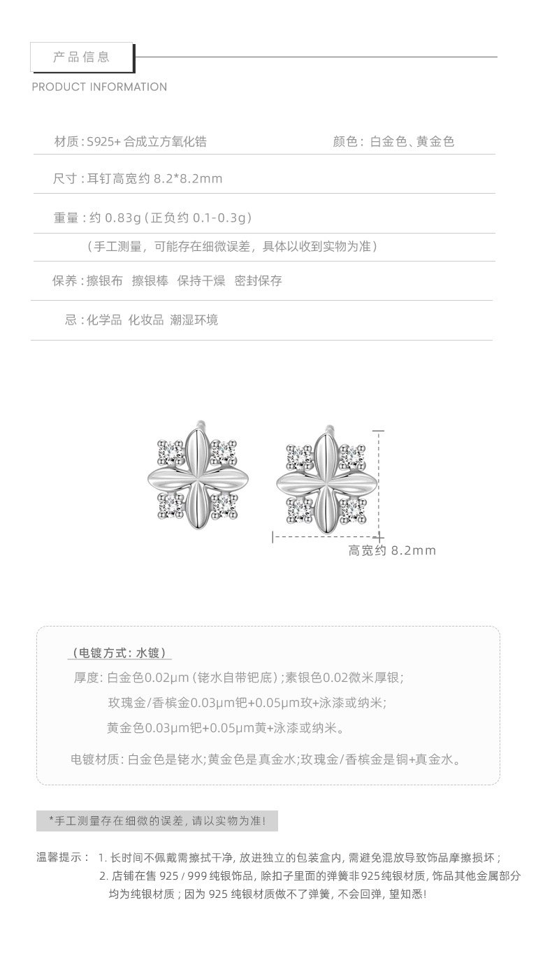 F廠【DQ10463E】ins小眾設計十字花朵耳環女S925純銀簡約四葉草鋯石百搭耳飾 25.09-1