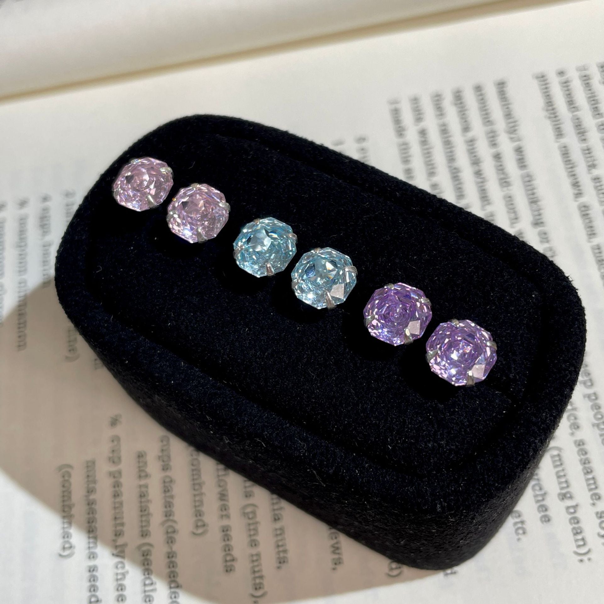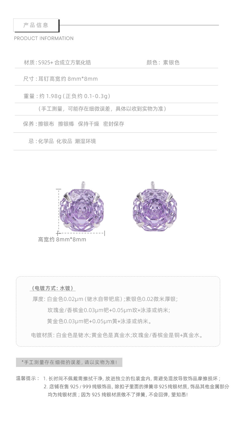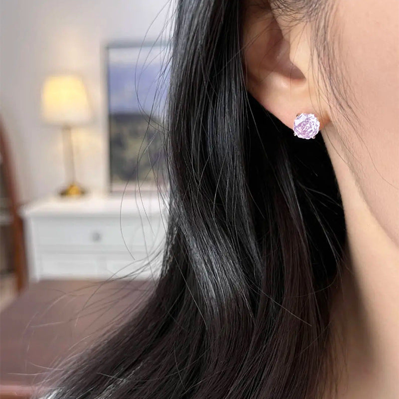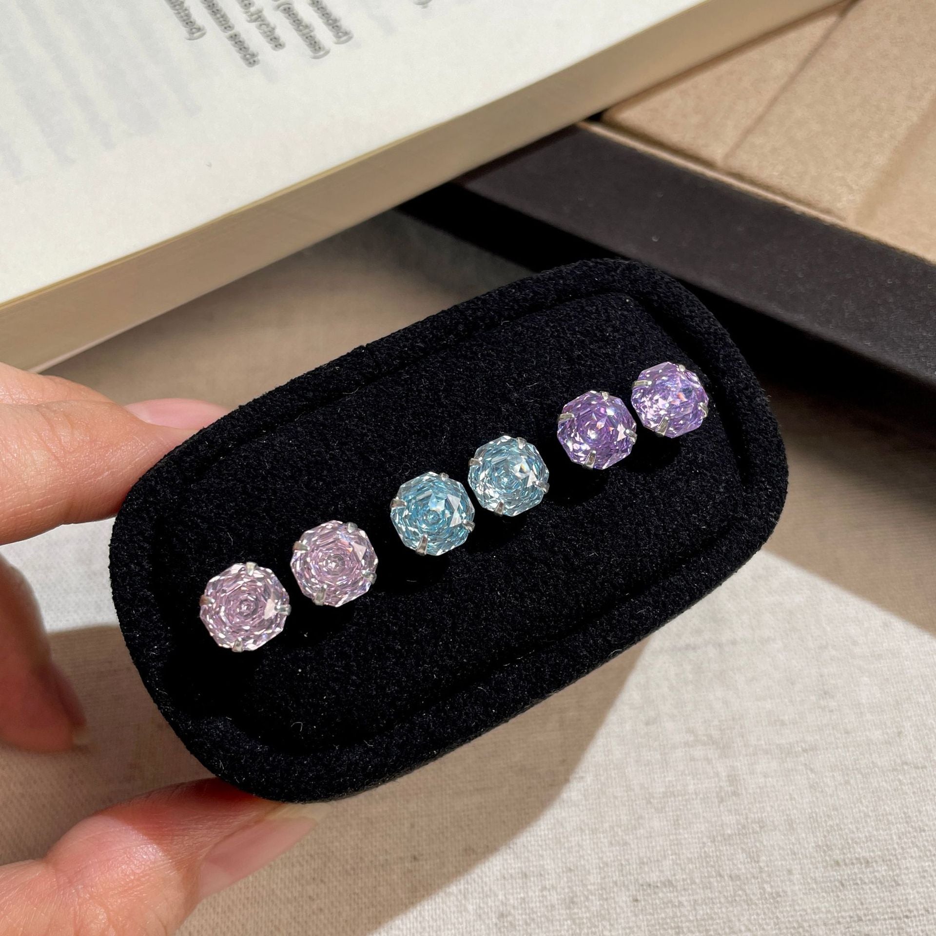 F廠【DQ10522E】S925純銀8mm爆閃千禧玫瑰切耳環女精緻百搭耳骨釘高級感耳飾 25.09-1