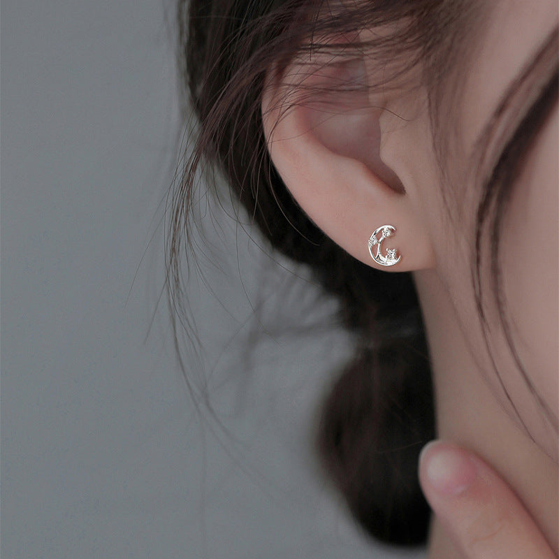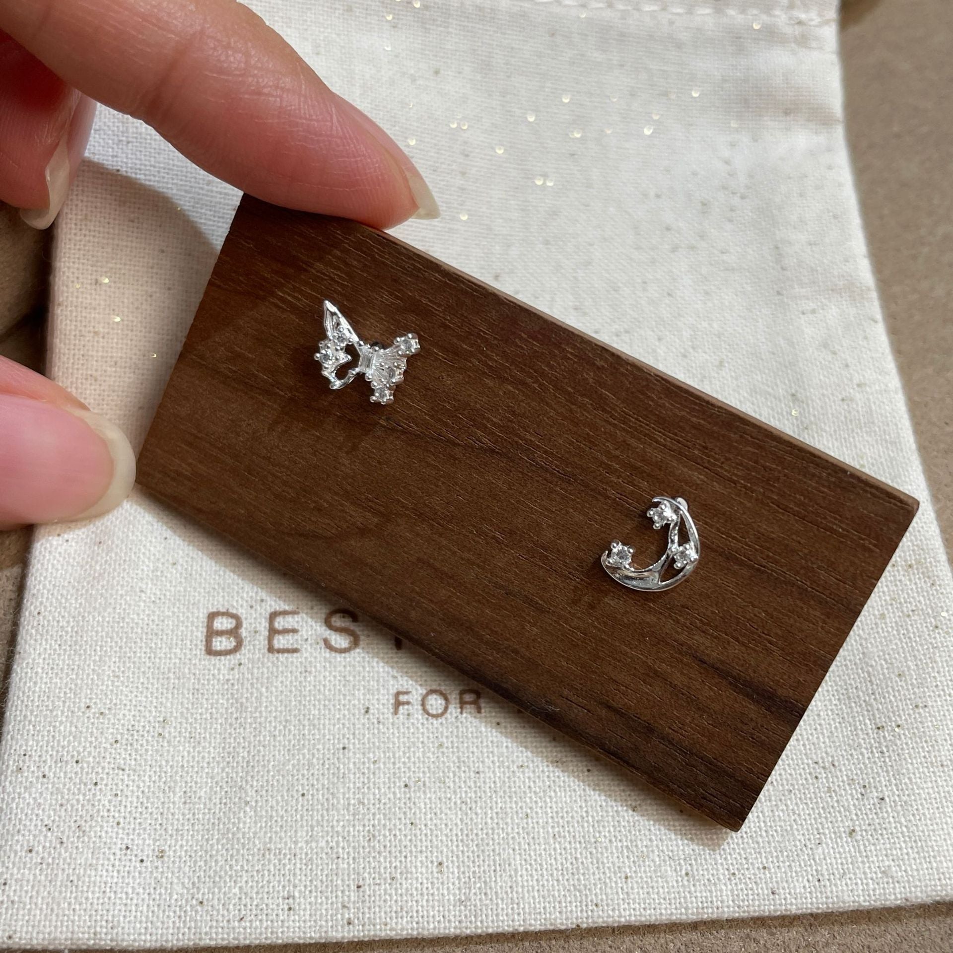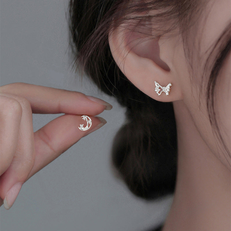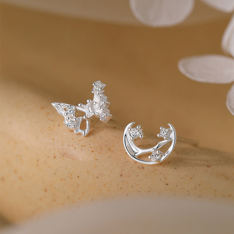 F廠【DQ10599E】S999純銀小清新蝴蝶月亮耳環女精緻甜美不對稱養耳洞耳飾 25.09-1