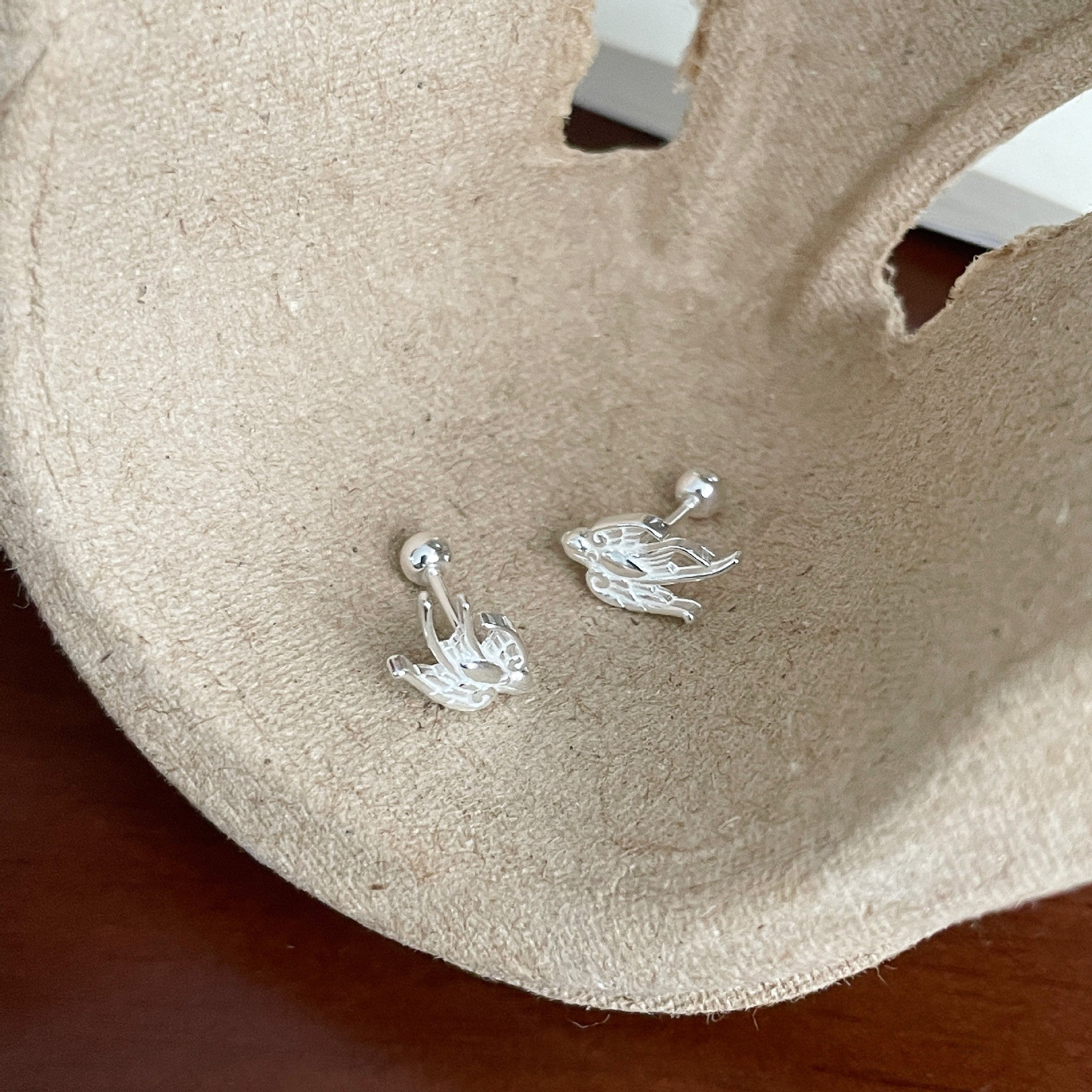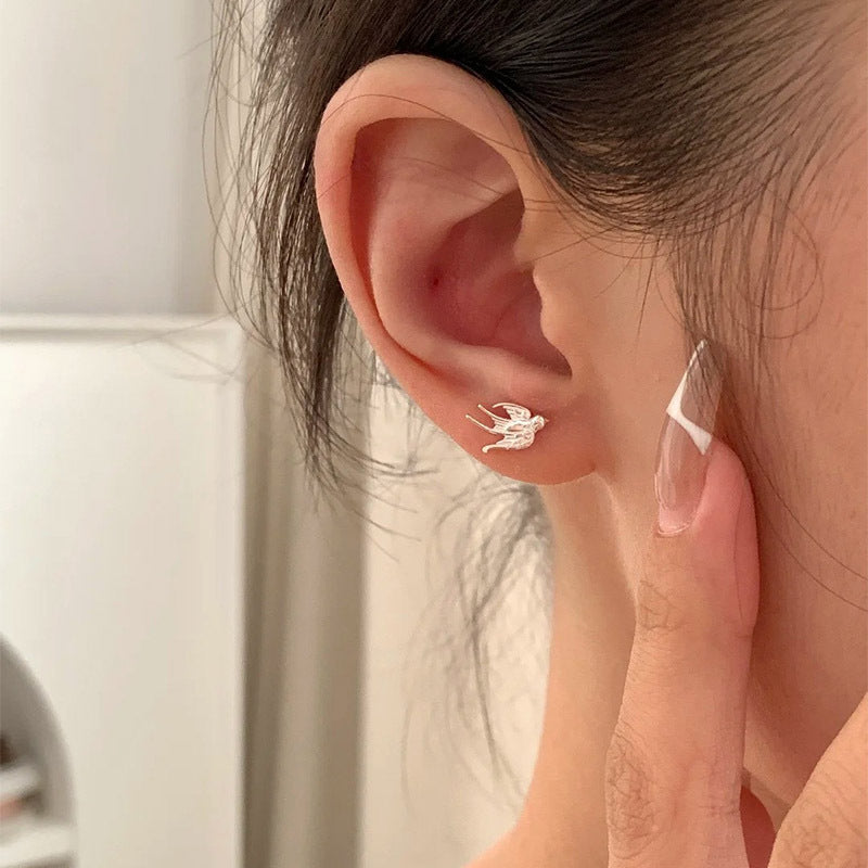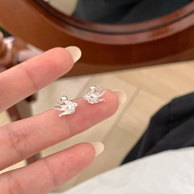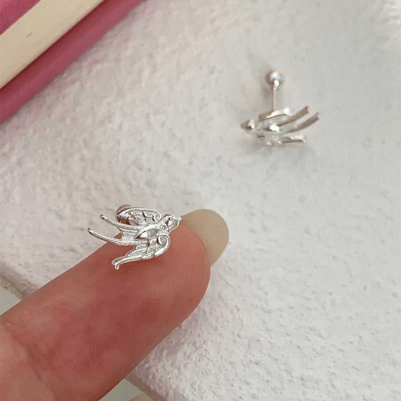 F廠【DQ10606E】足銀999森系簡約燕子耳環女氣質文藝飛鳥螺絲擰養耳純銀耳飾 25.04-3