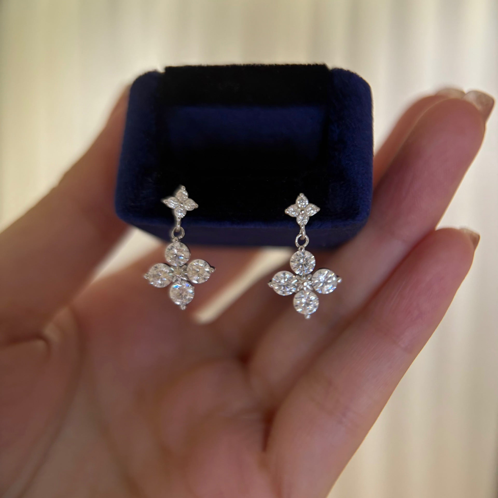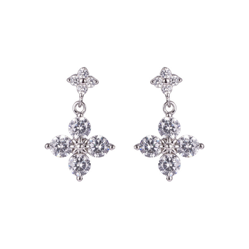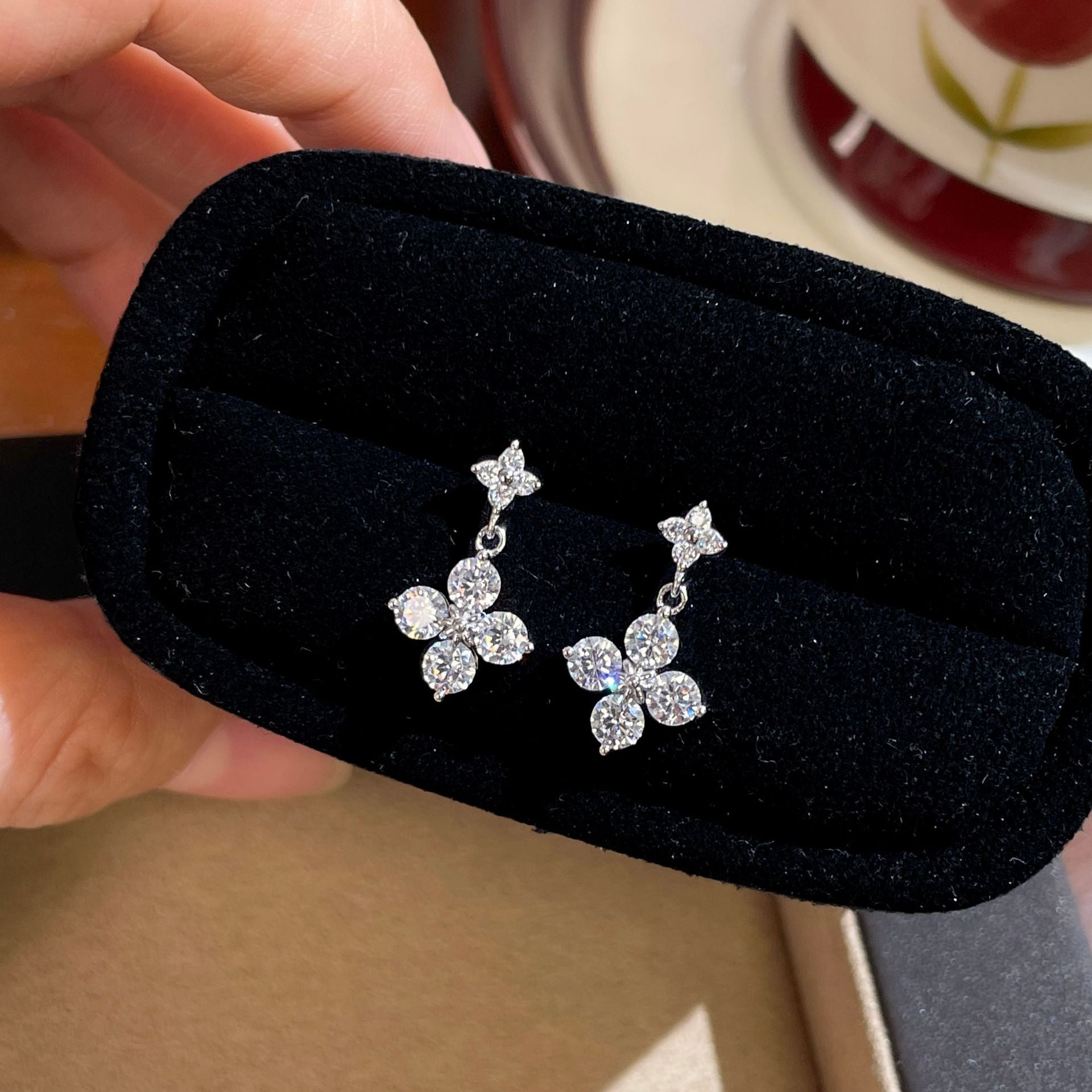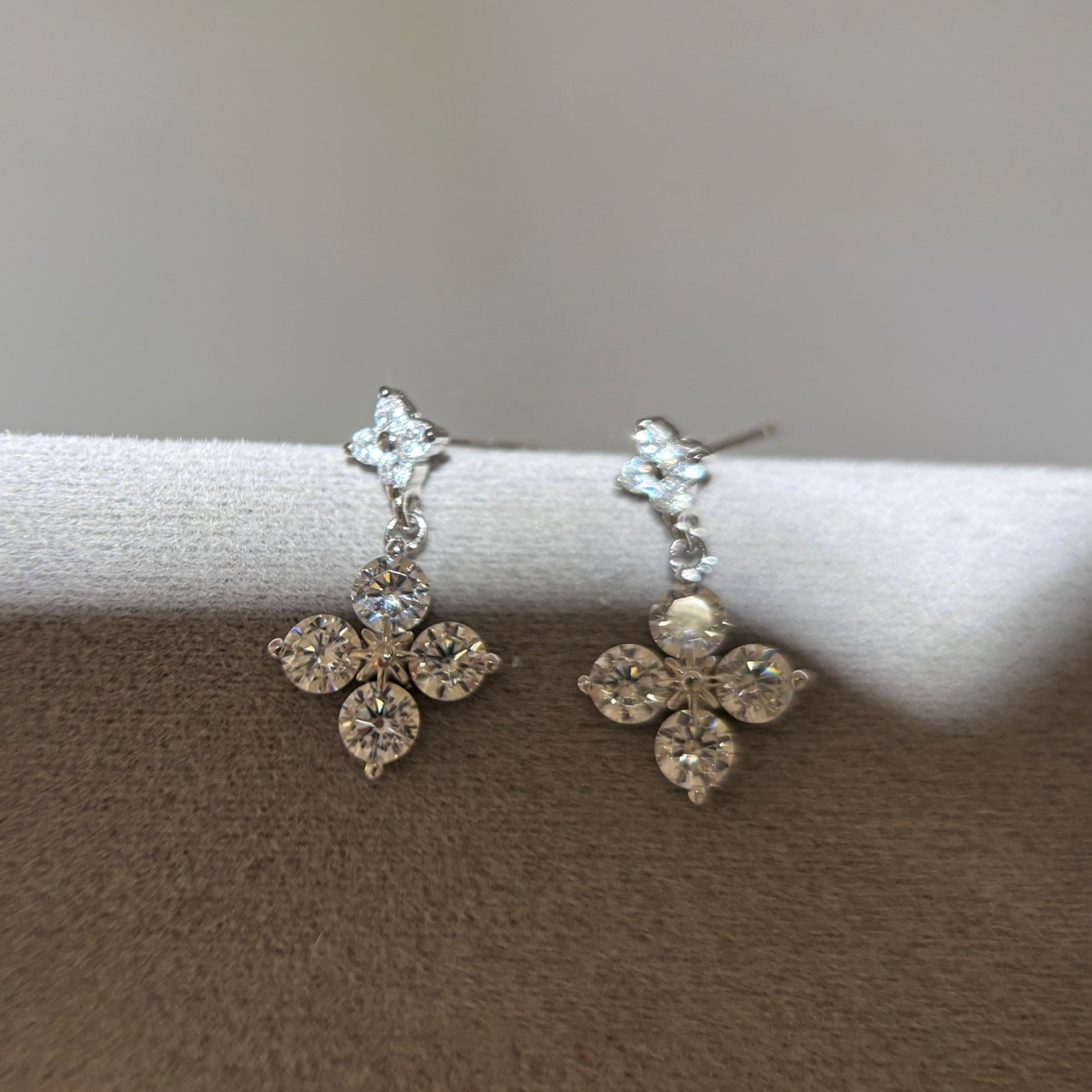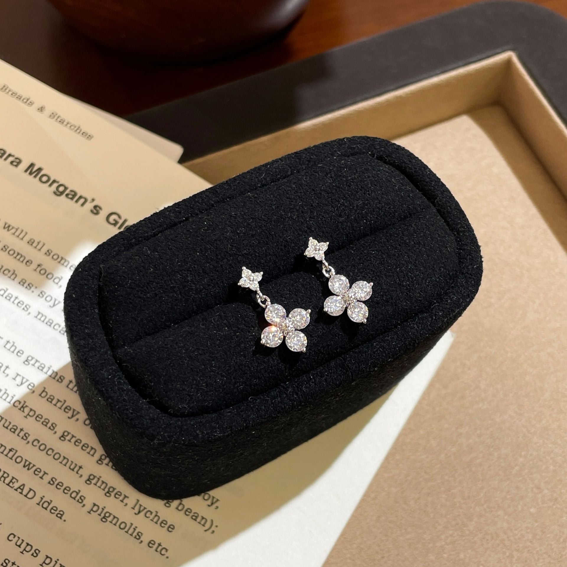F廠【DQ10636E】S925純銀輕奢精緻四葉草閃鑽耳環女復古經典花朵流蘇百搭耳飾 25.10-4
