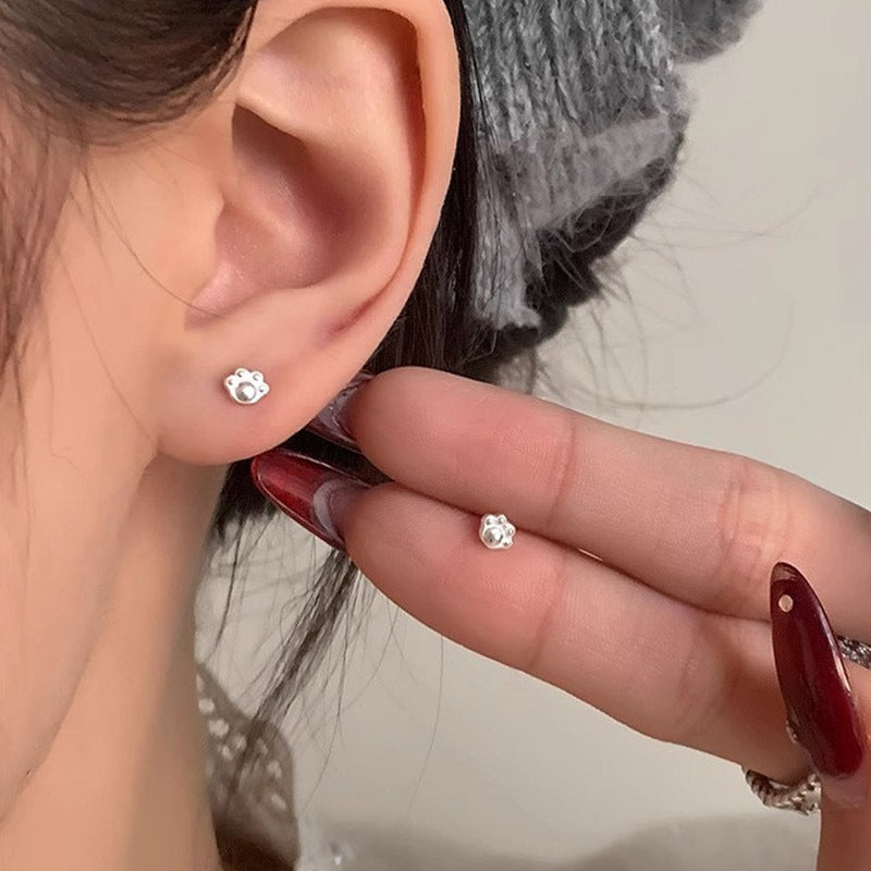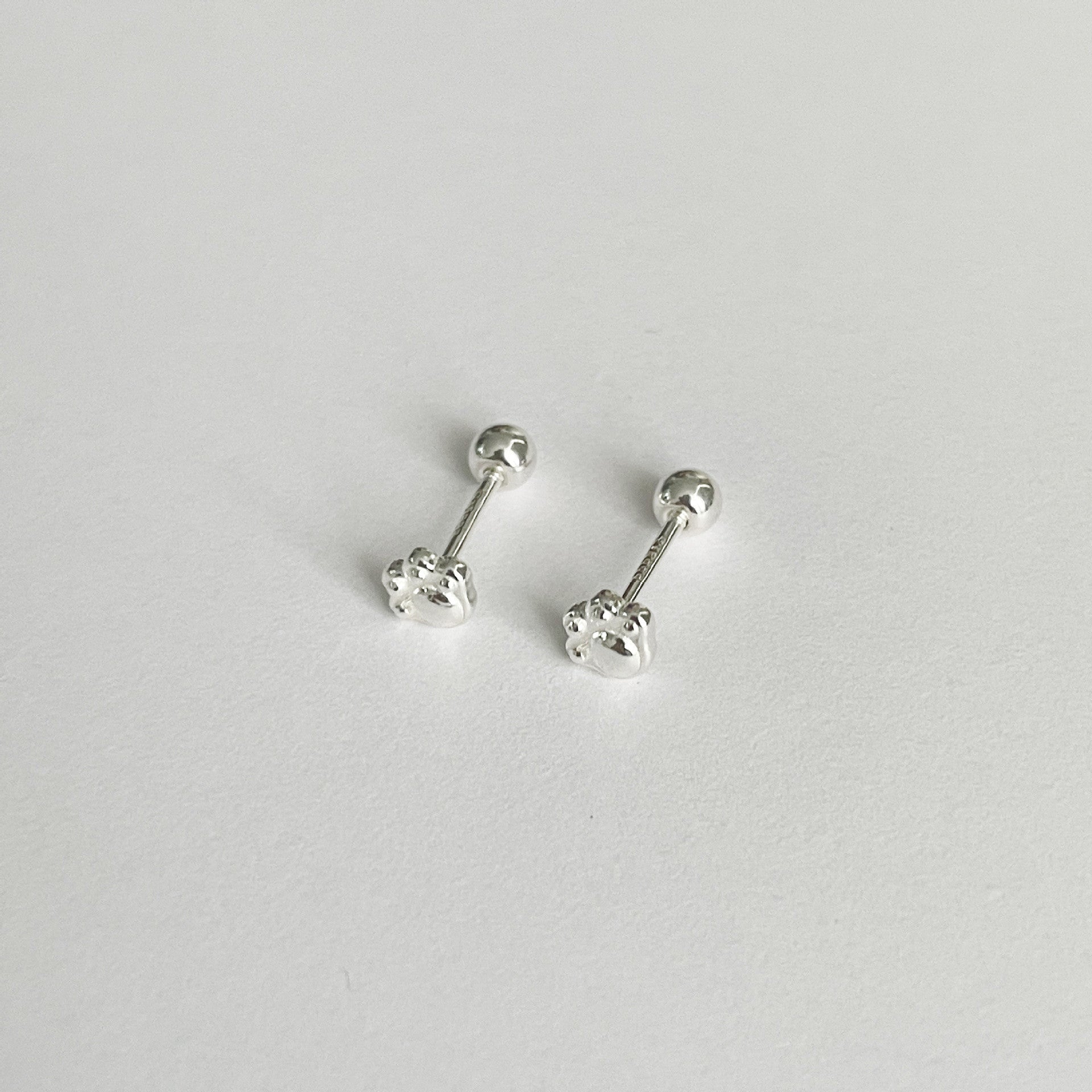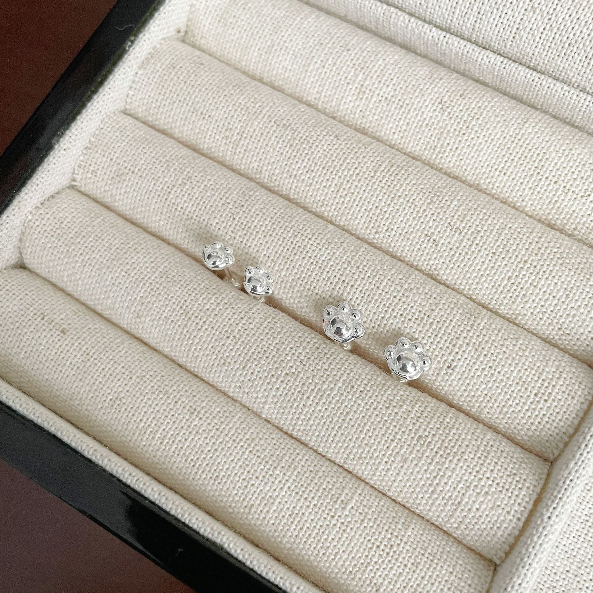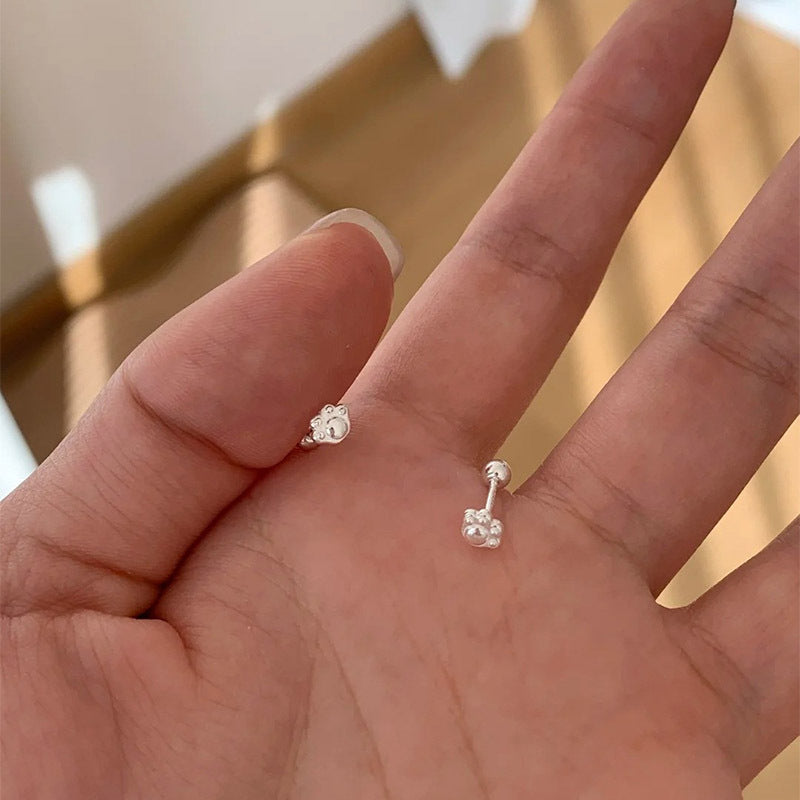 F廠【DQ10649E】足銀999精緻甜美小貓爪耳環女小巧可愛耳骨釘螺絲擰扣耳飾潮 25.04-3