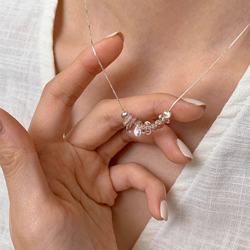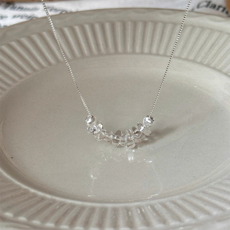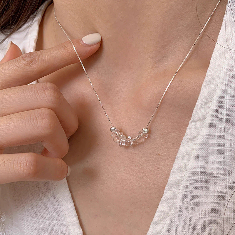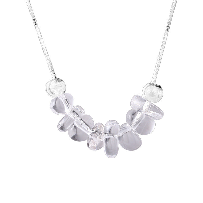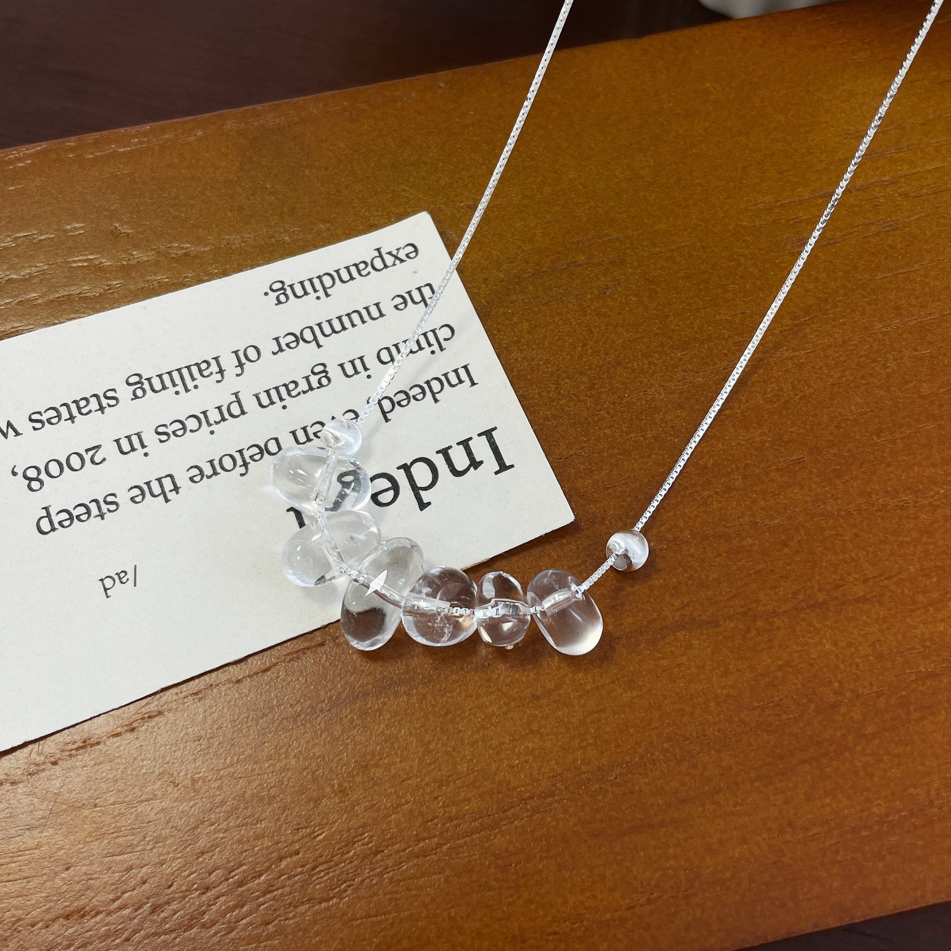 F廠【DQ1069N】貓眼珠天然白水晶項鍊女S925純銀不規則串珠輕奢時髦鎖骨鏈潮 25.06-3