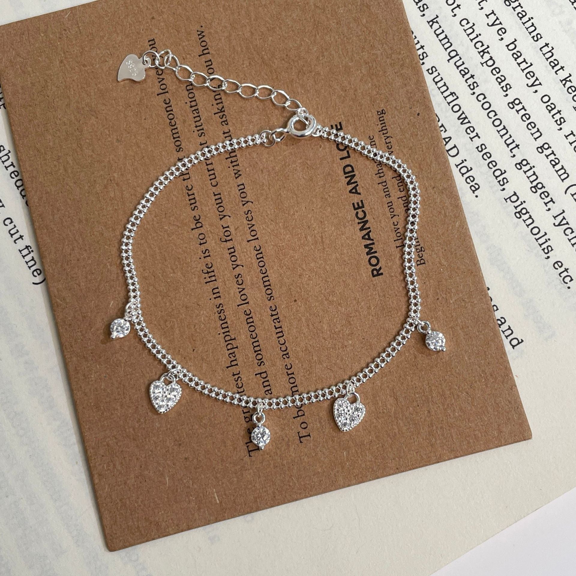 F廠【DQ1074S】S925純銀輕奢小眾愛心鋯石流蘇手鍊女韓風氣質蕾絲感百搭手飾 25.10-1