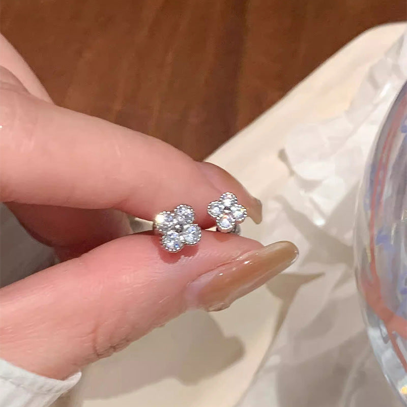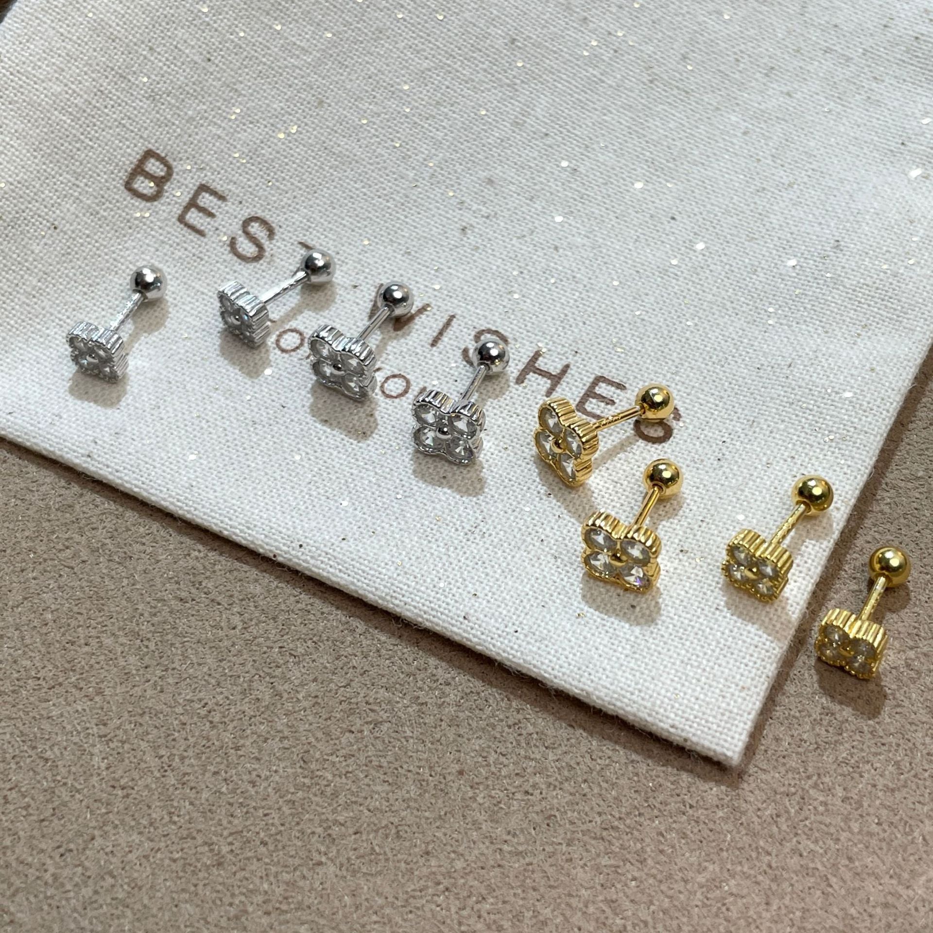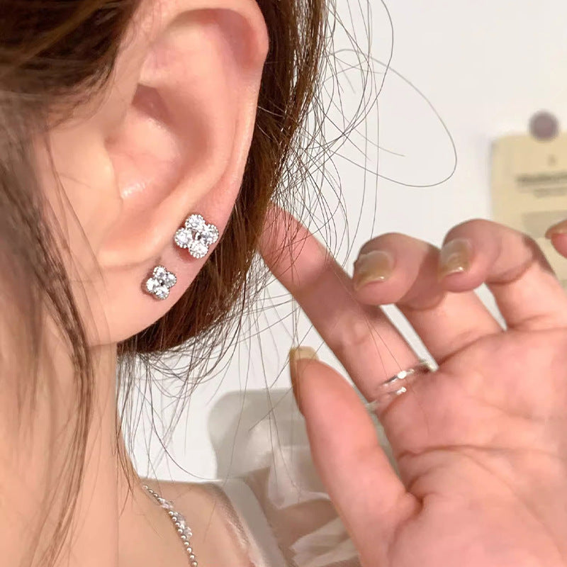 F廠【DQ10764E】S925純銀韓系滿鑽四葉草耳環小清新鋯石耳骨釘疊戴花朵耳飾女 25.08-2