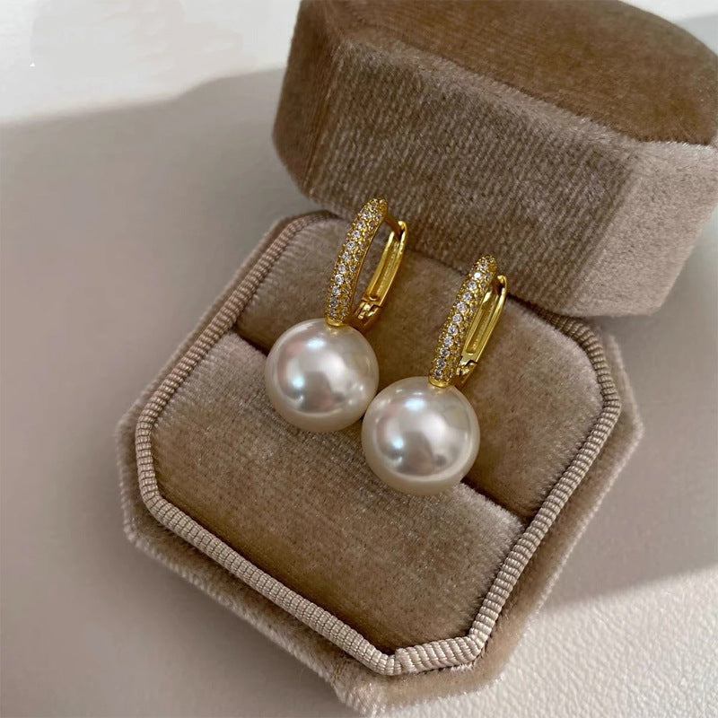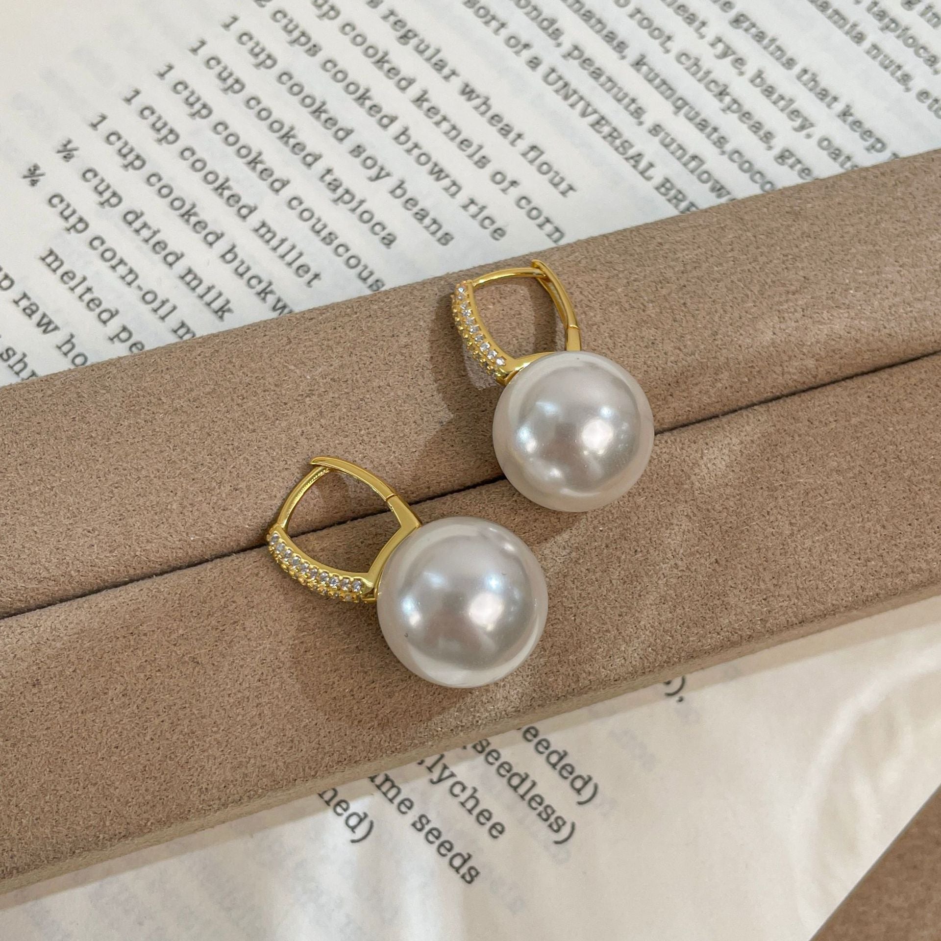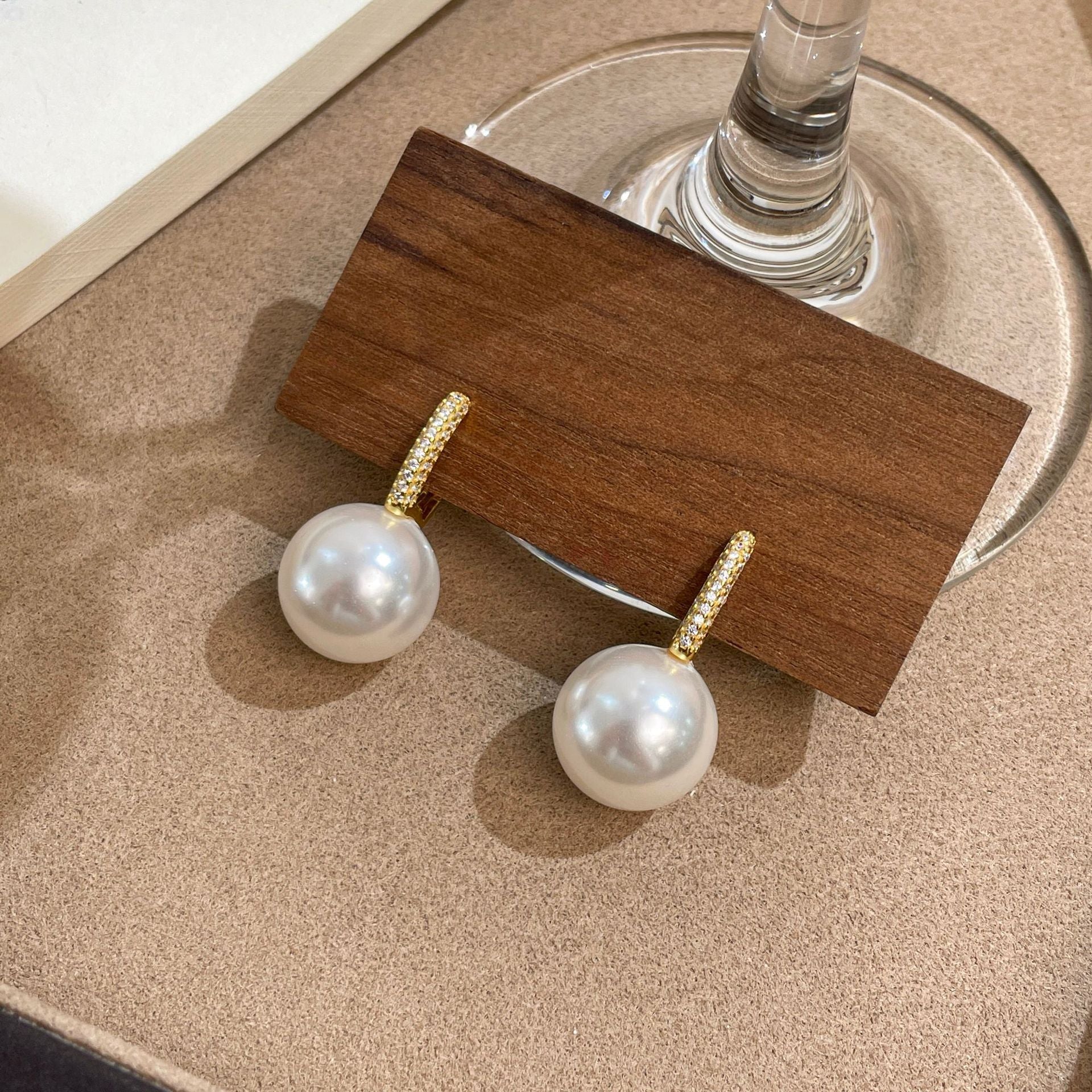 F廠【DQ10765E】S925純銀法式輕奢正圓仿珍珠耳扣女高級感微鑲經典百搭耳環潮 25.09-3