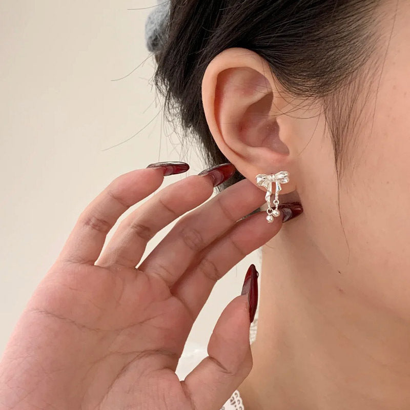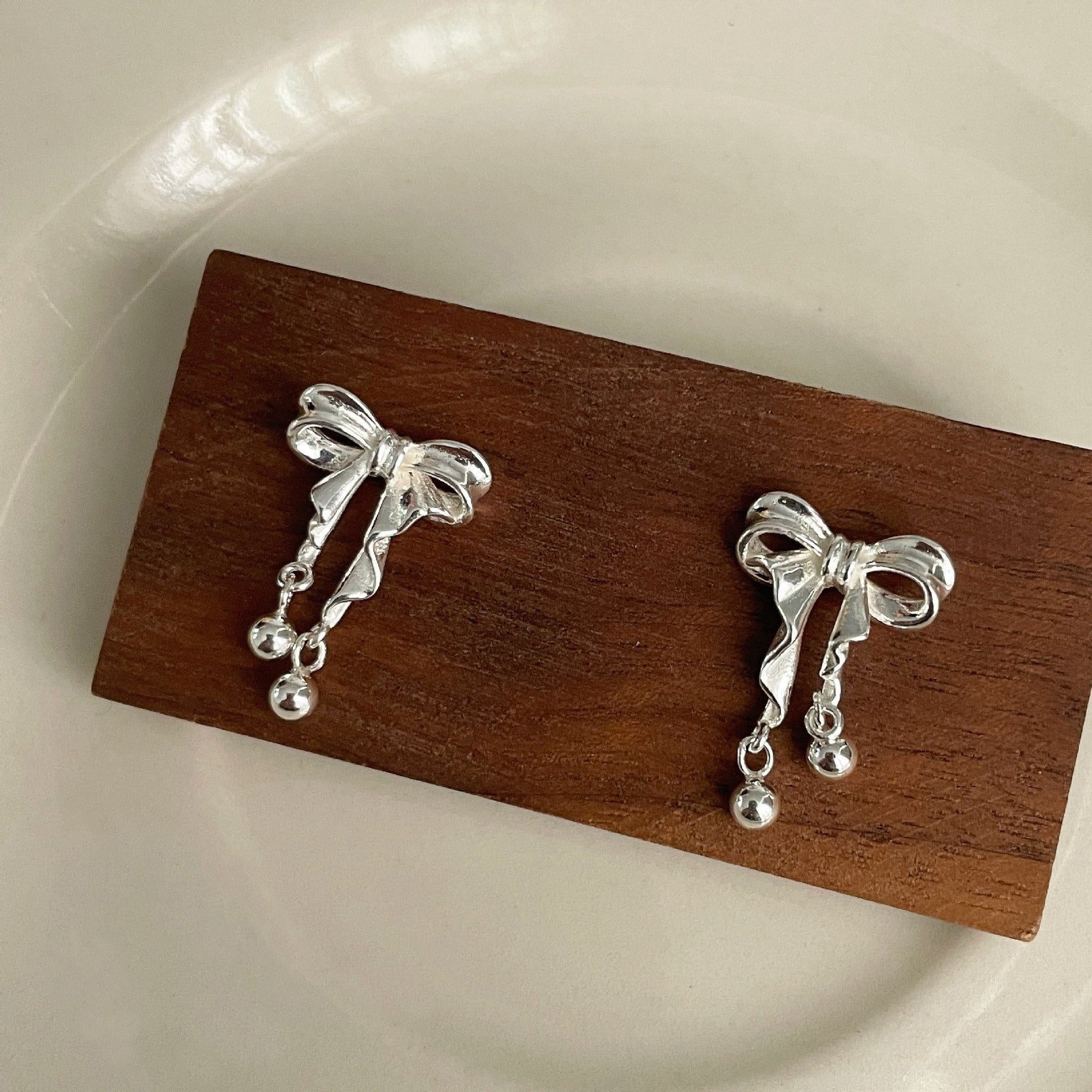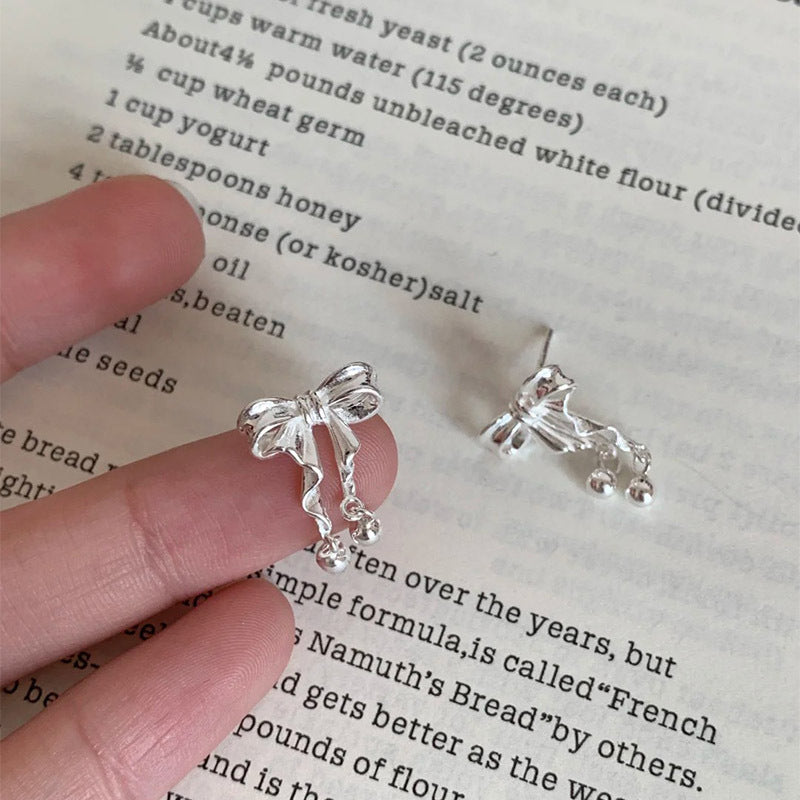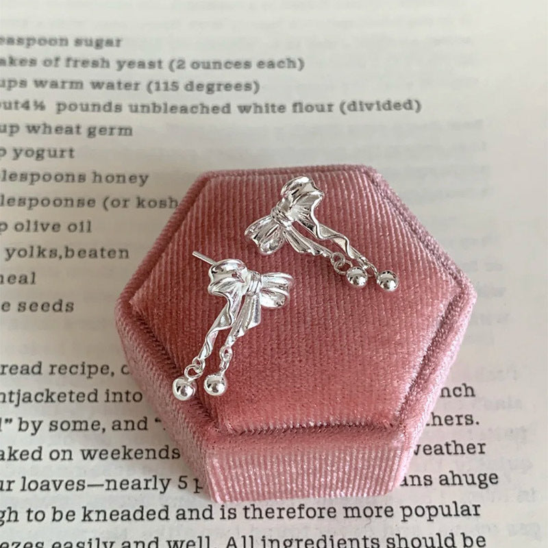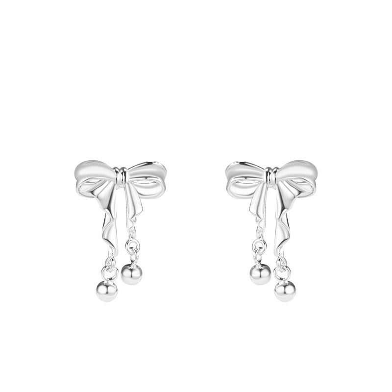F廠【DQ10790E】999足銀韓系ins風蝴蝶結耳環女小清新甜美圓珠流蘇高級感耳飾 25.04-4