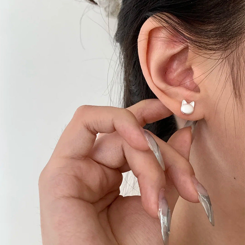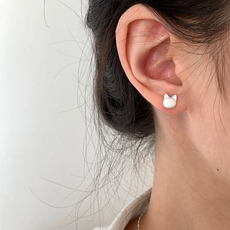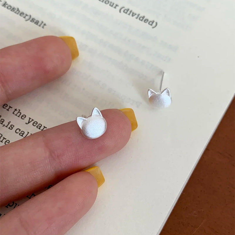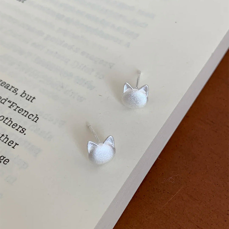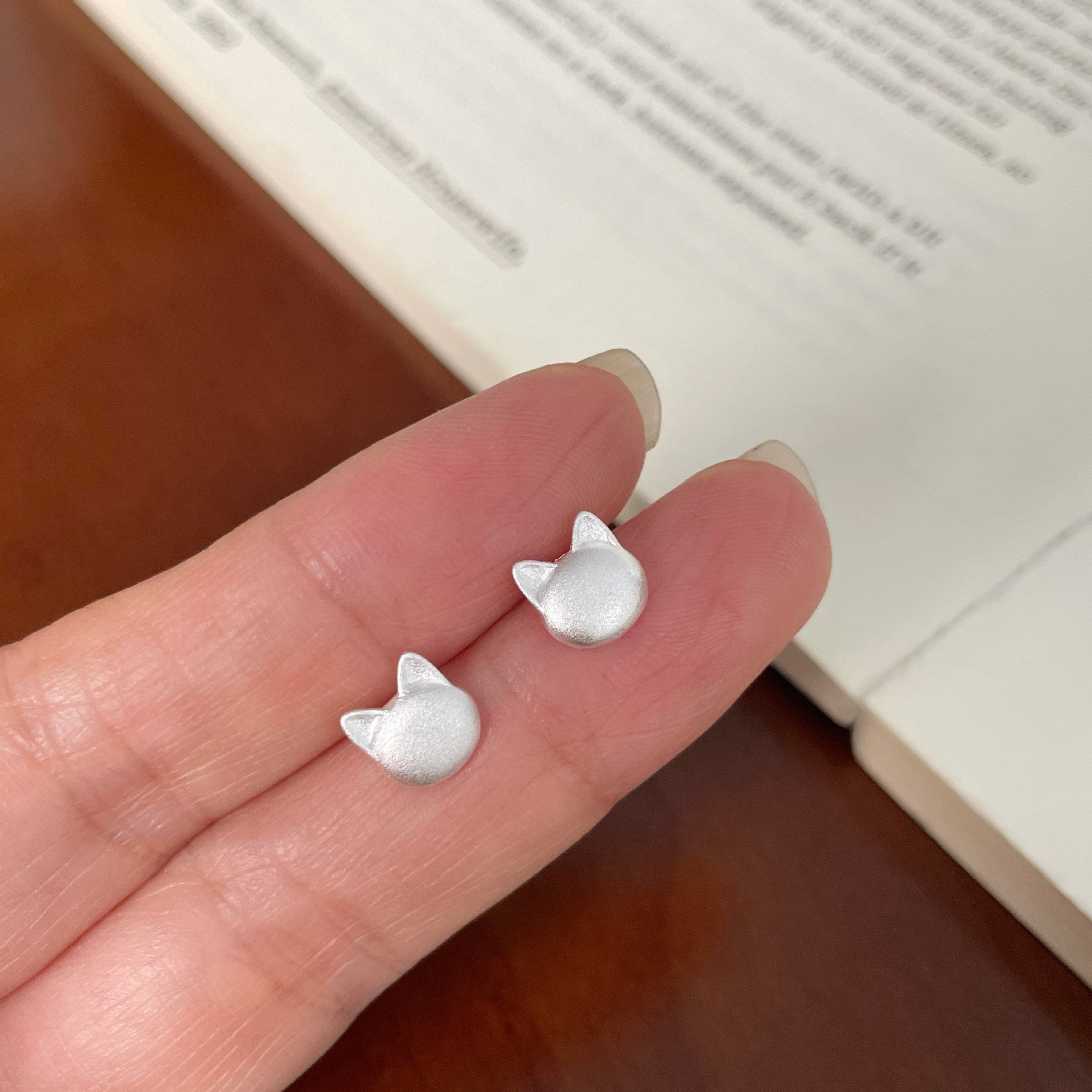 F廠【DQ10844E】S925純銀甜美可愛小貓耳環女精緻磨砂貓咪簡約基本款耳環百搭 25.07-1