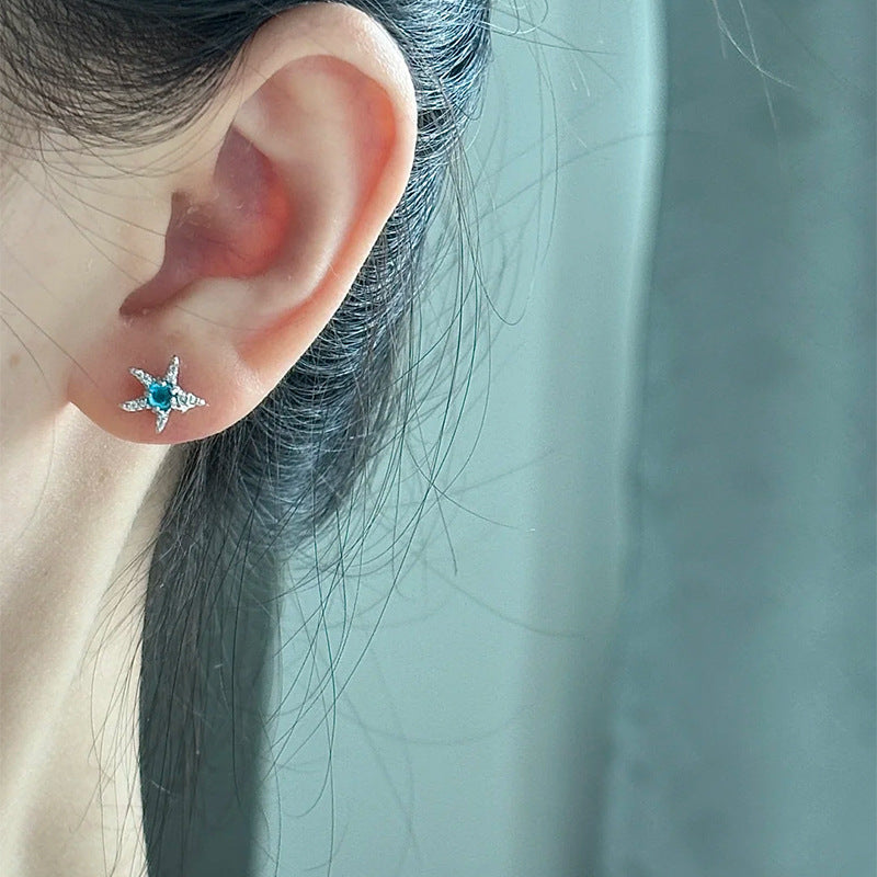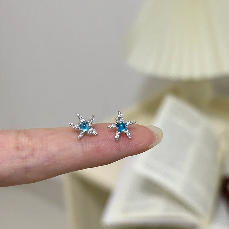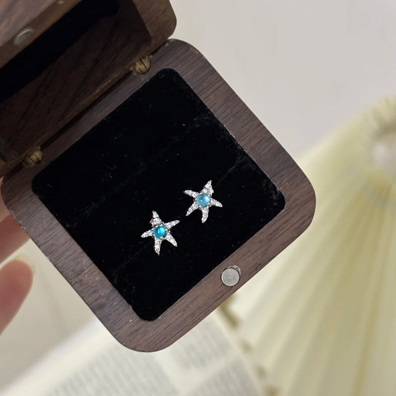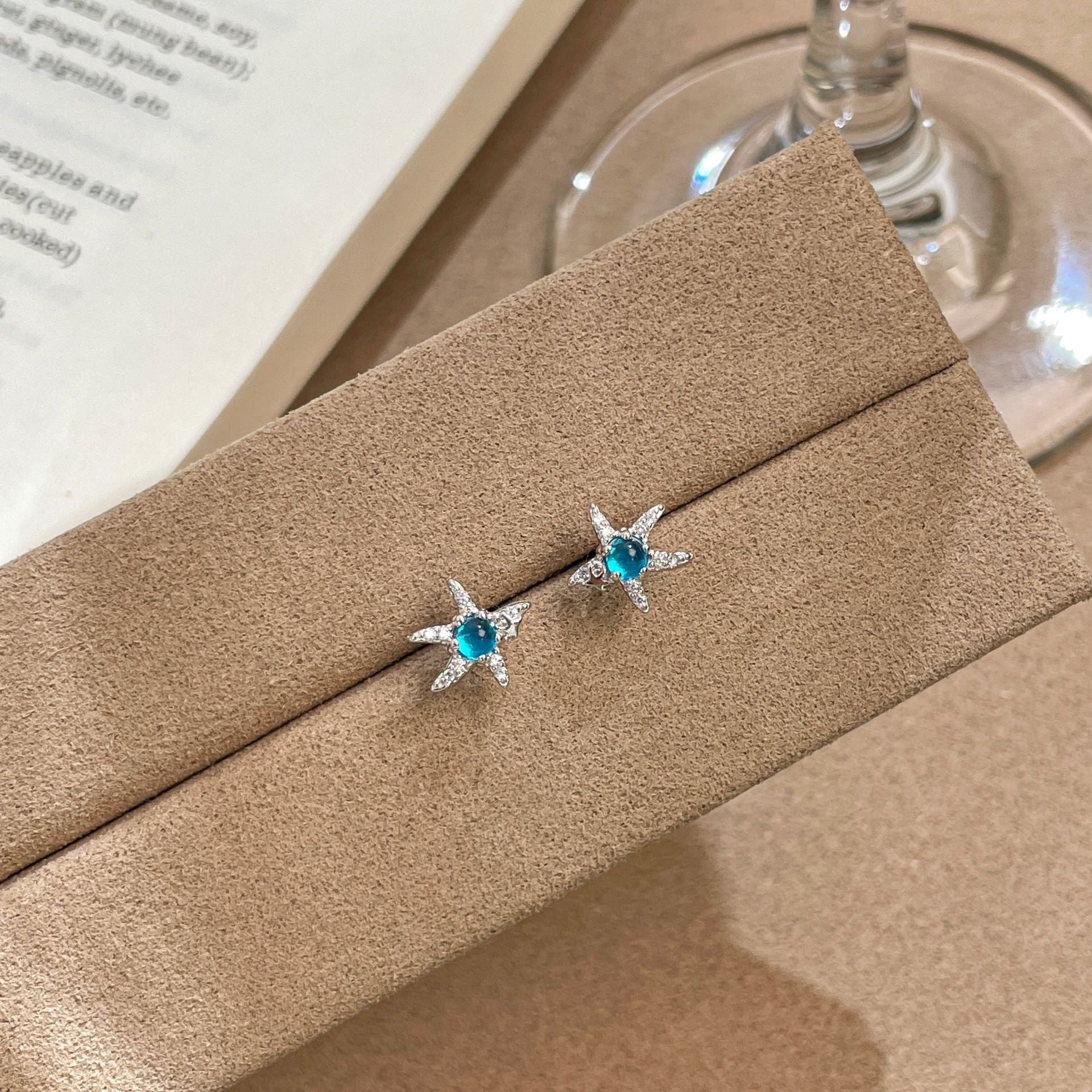 F廠【DQ10874E】S999純銀小眾設計藍石海星耳環女精緻甜美星星鋯石高級感耳飾 25.09-3