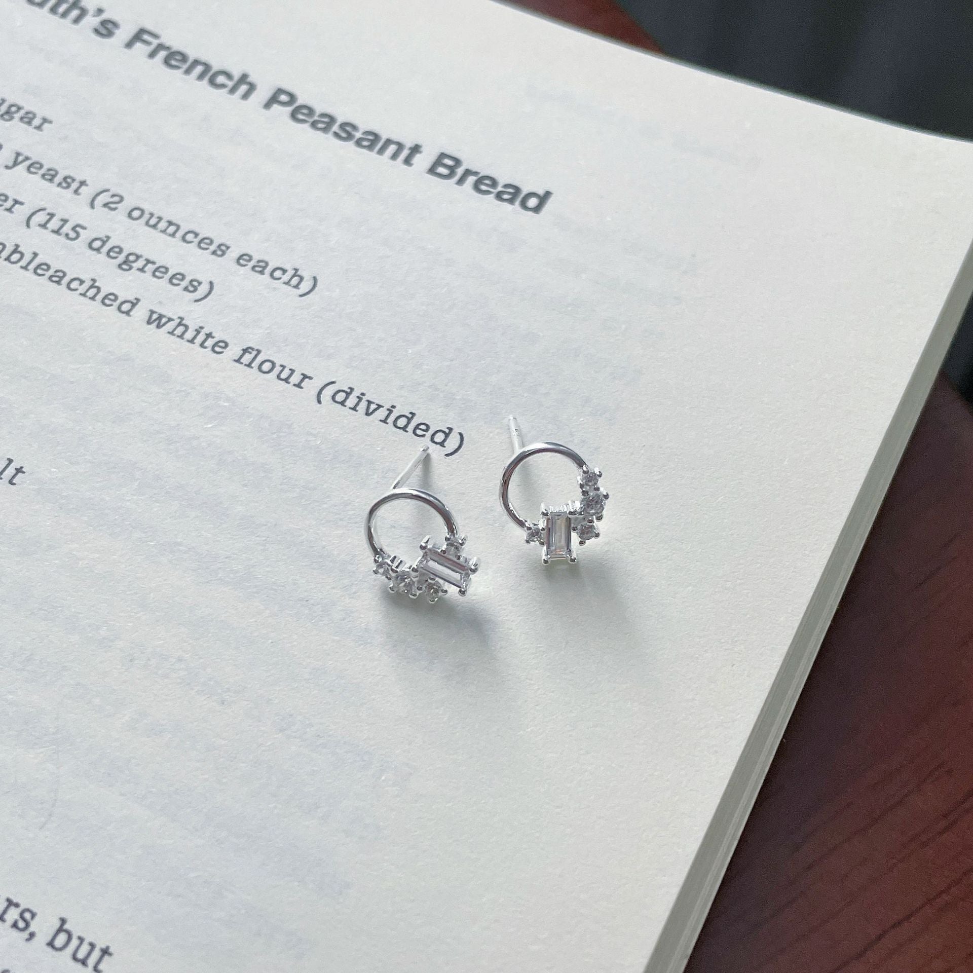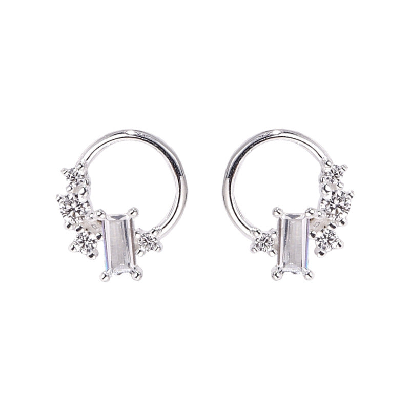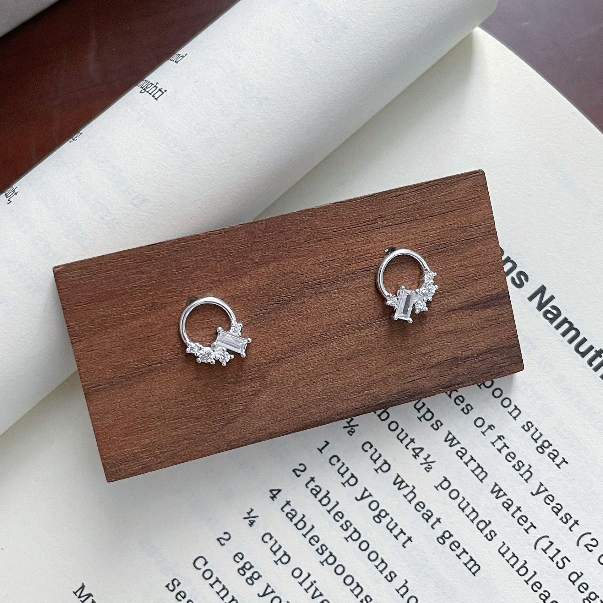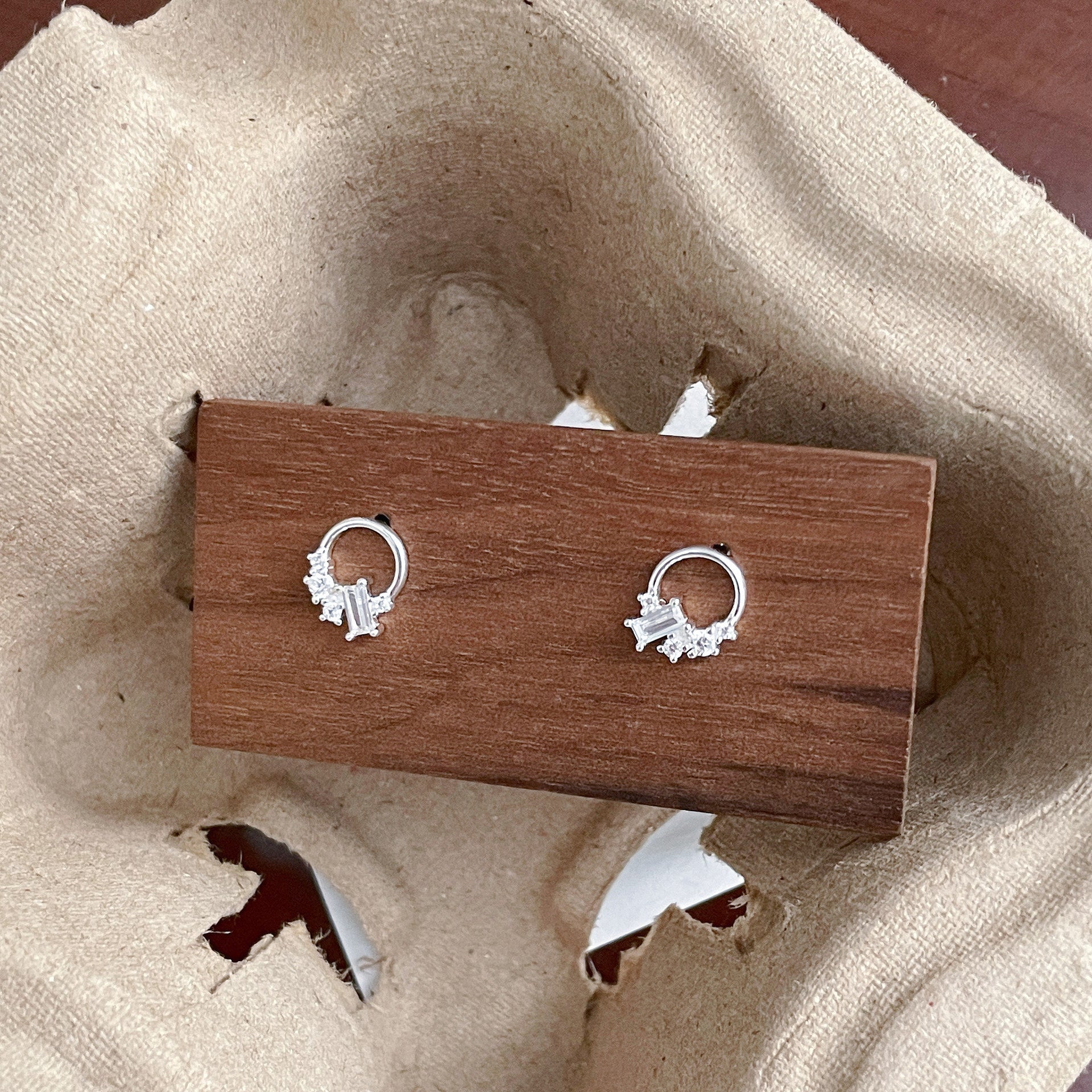 F廠【DQ10877E】S925純銀日韓簡約閃鑽圓環耳環女ins風氣質幾何鋯石百搭耳飾 25.06-4