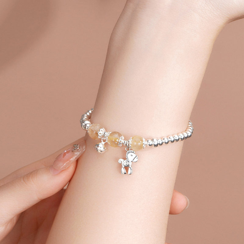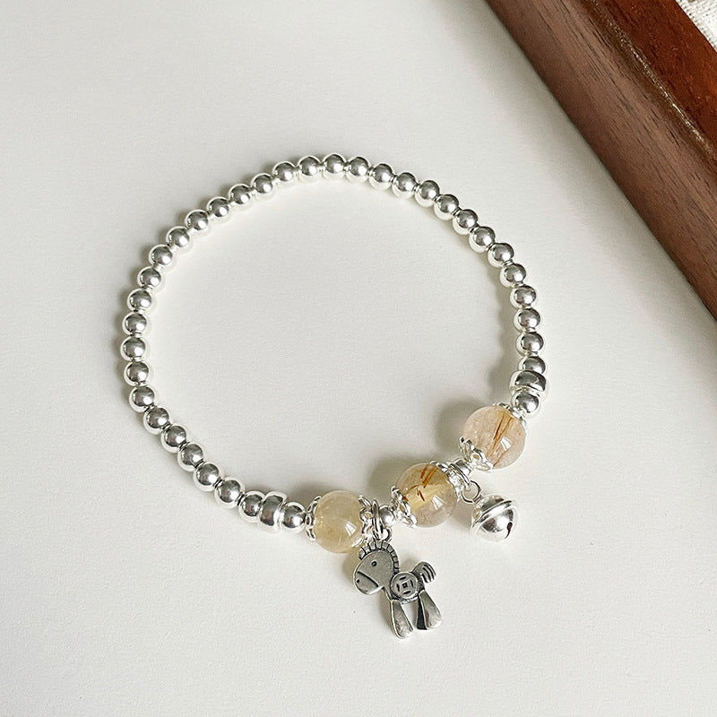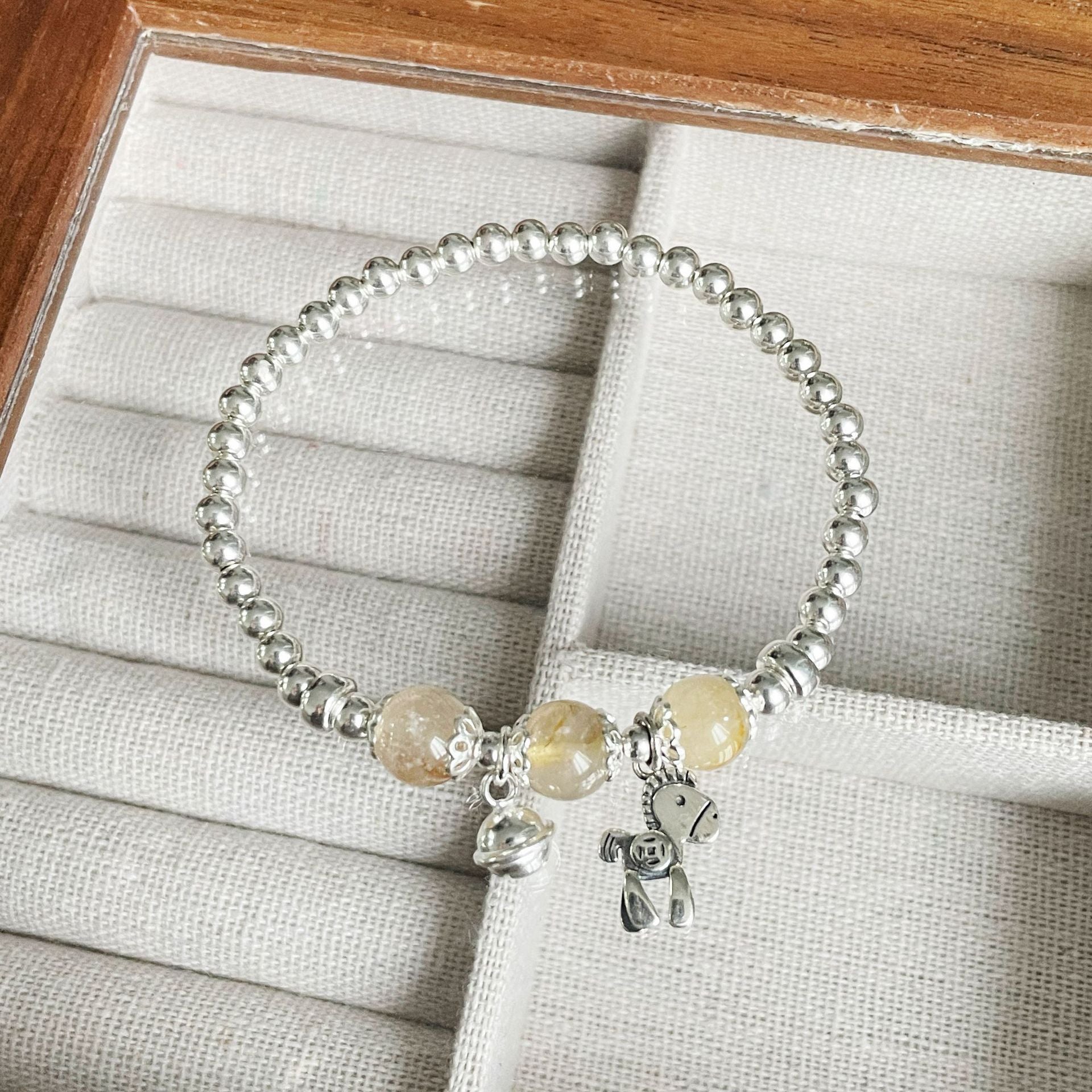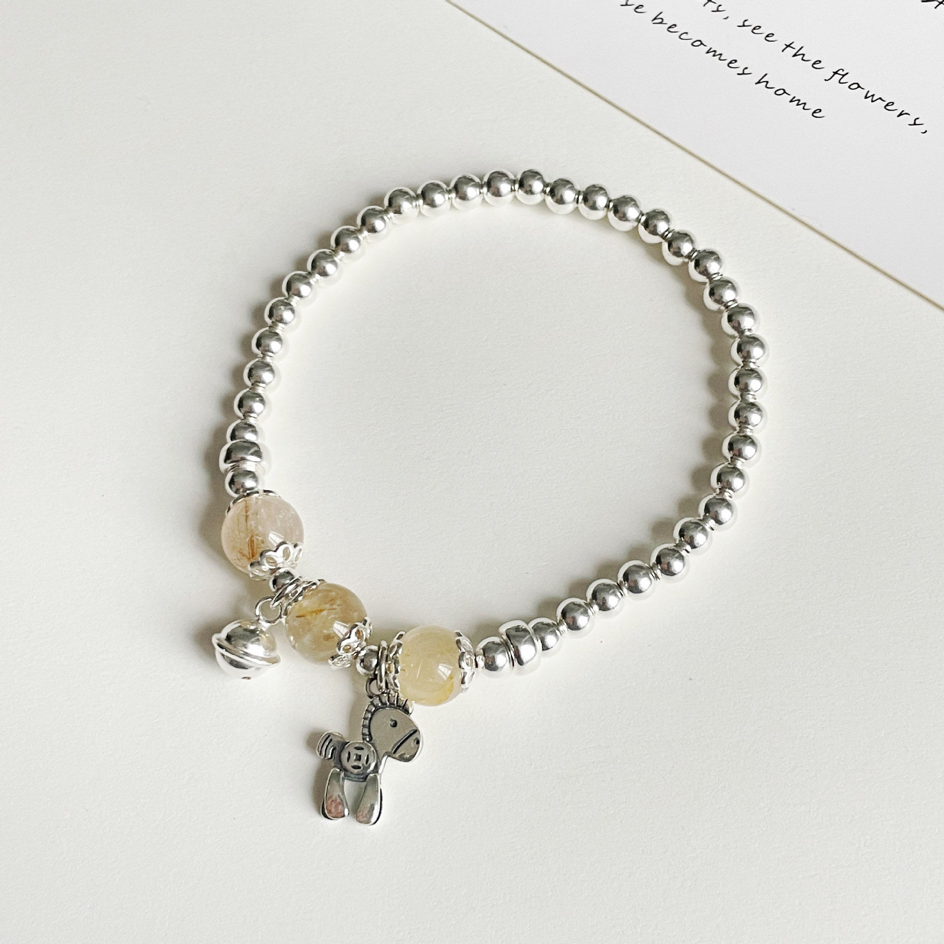 F廠【DQ1089S】馬上有錢手串女S925純銀天然黃水晶圓珠手鍊木馬鈴鐺手飾 25.04-1