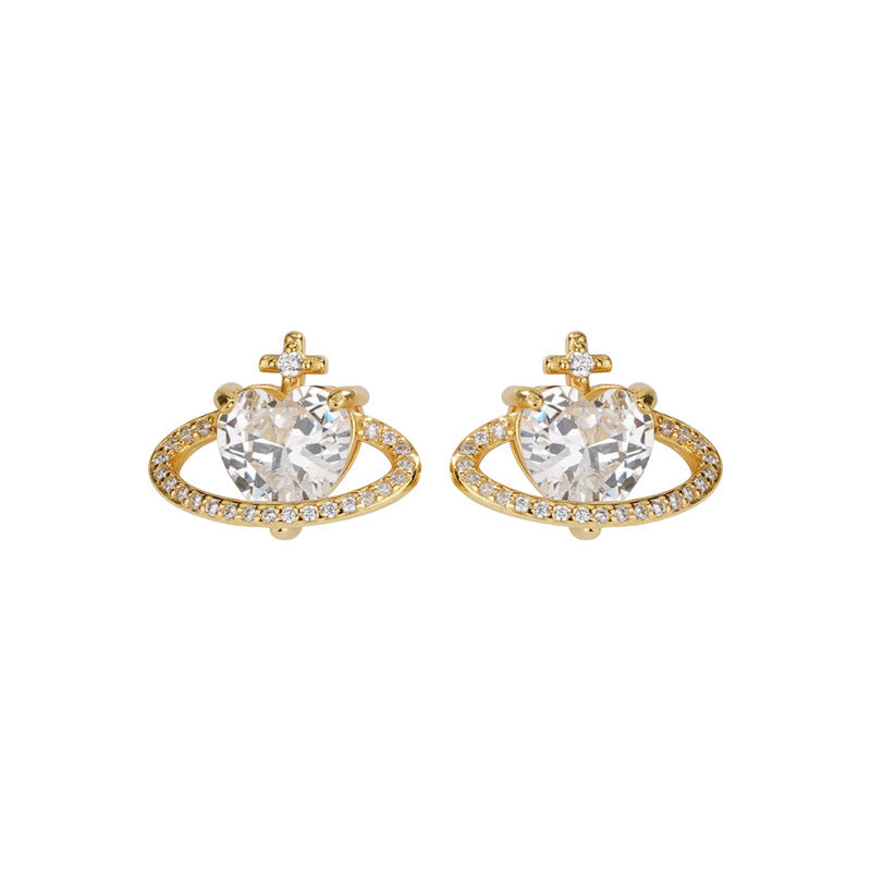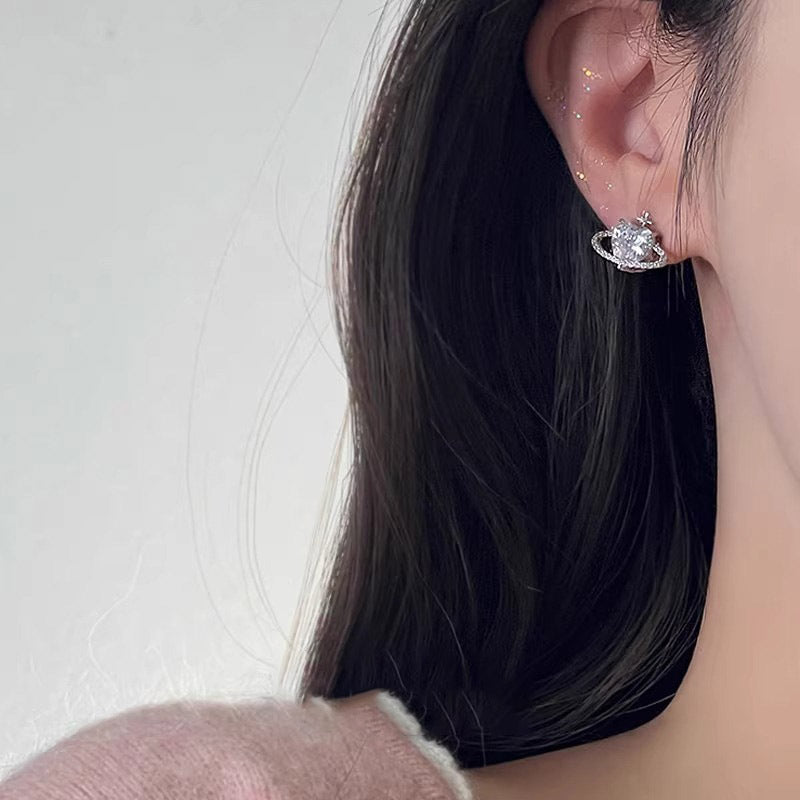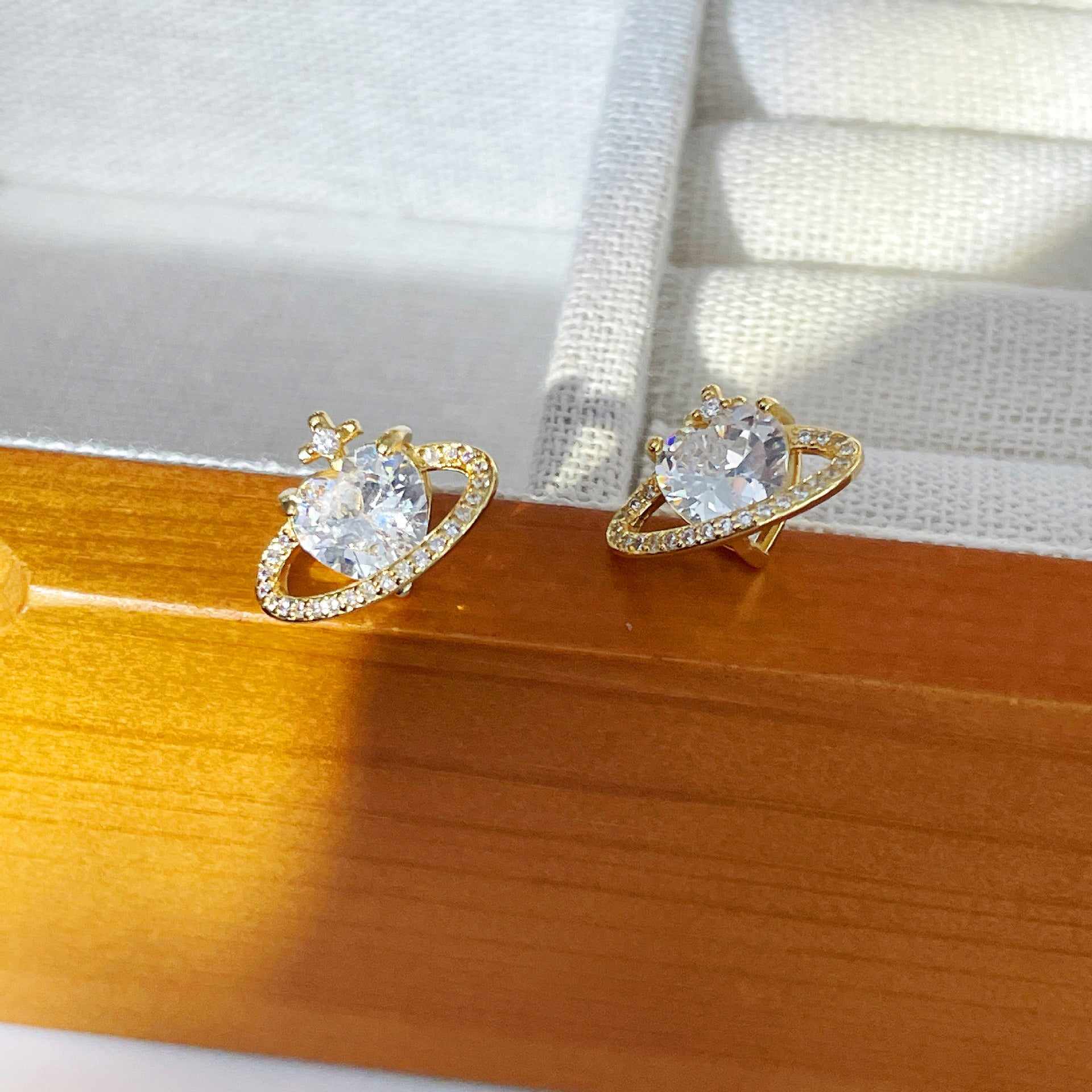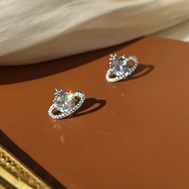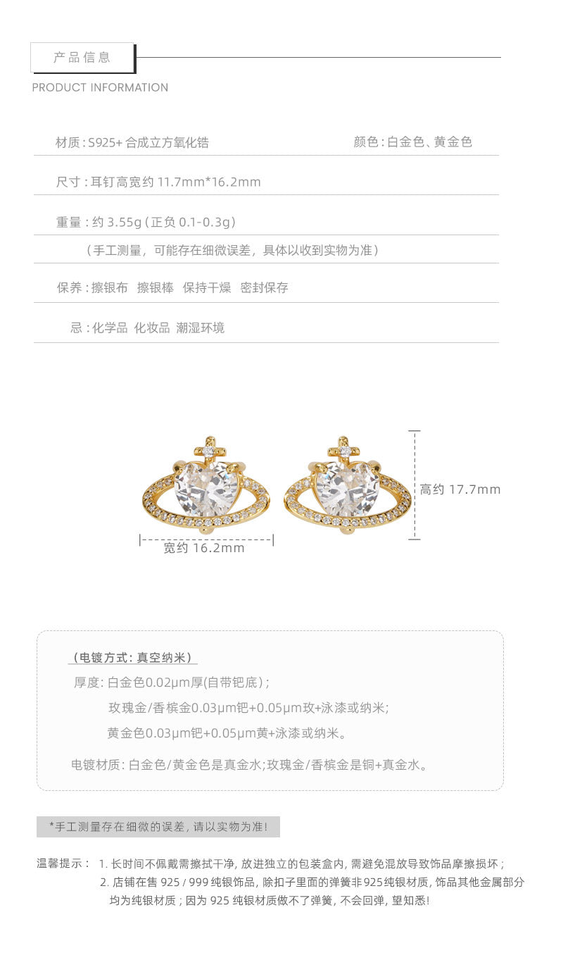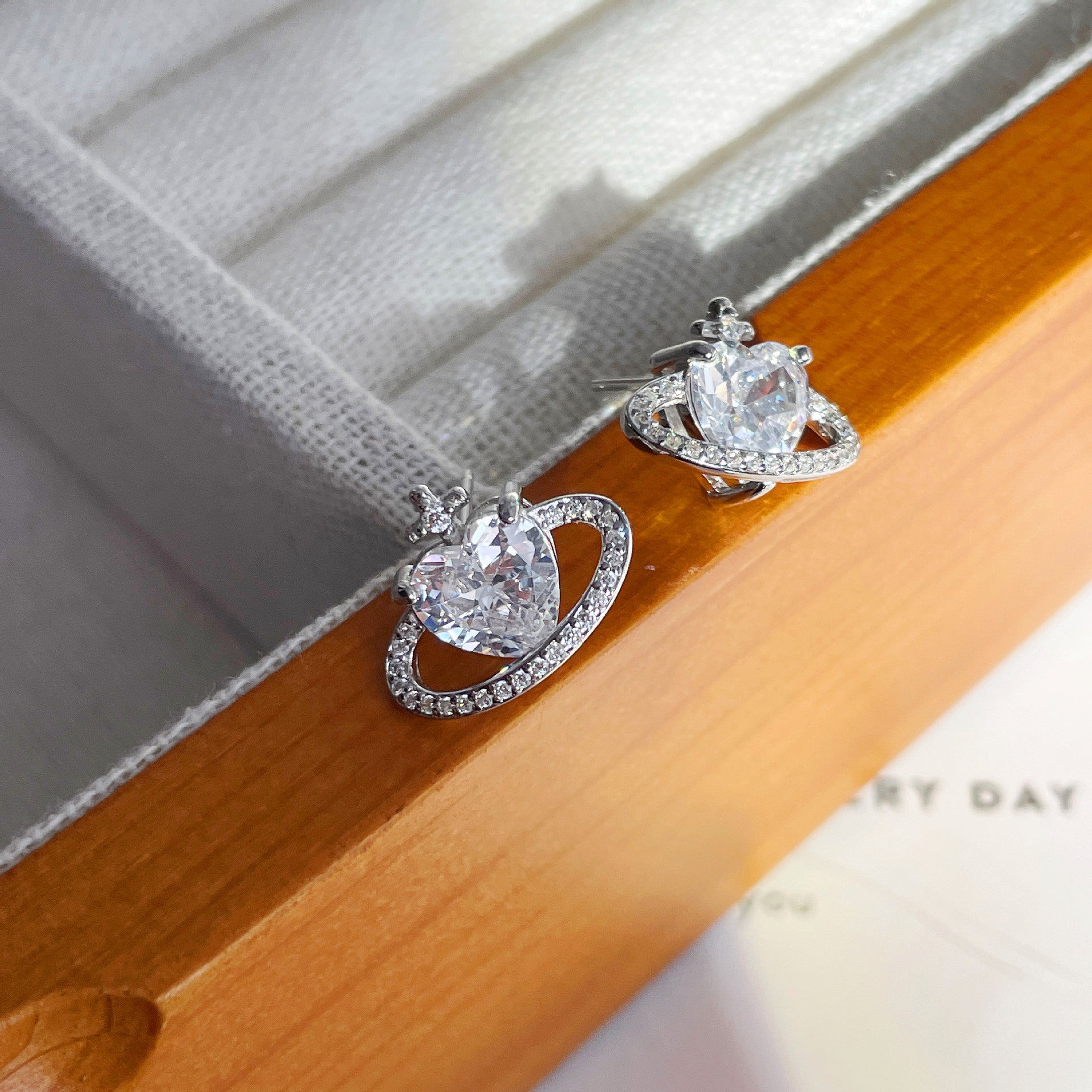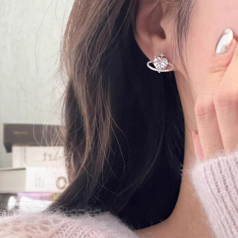 F廠【DQ10937E】S925純銀璀璨星球愛心耳環女精緻高級感心形閃鑽耳飾品甜酷風 25.04-1