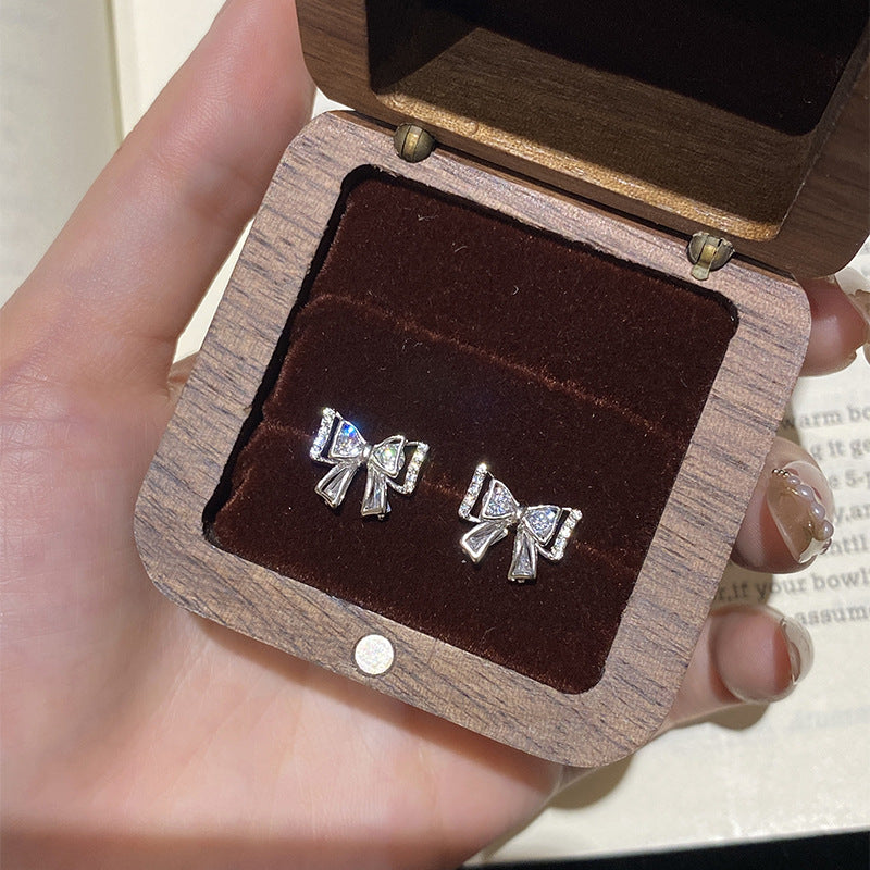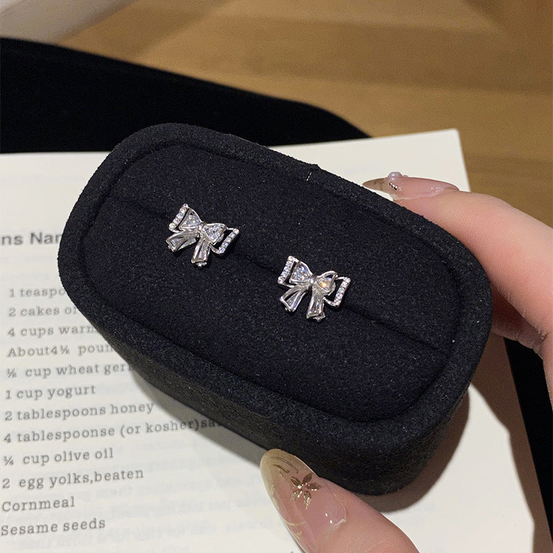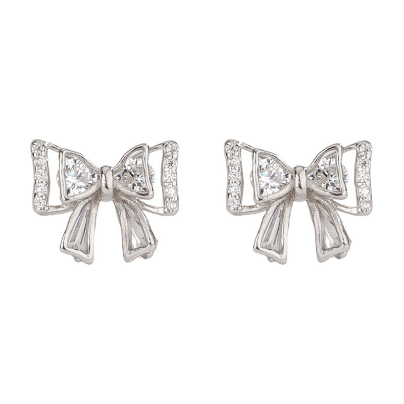 F廠【DQ10955E】足銀999甜美氣質鏤空蝴蝶結耳環女小眾高級感鑲鋯石簡約耳飾 25.06-4