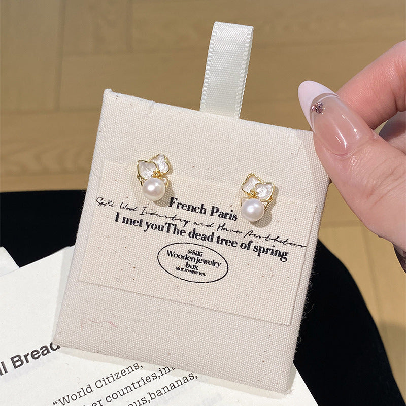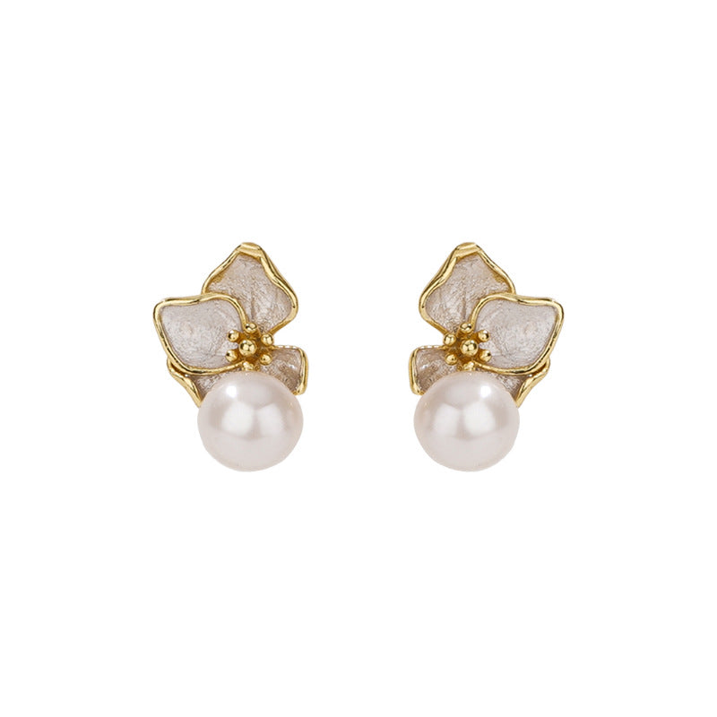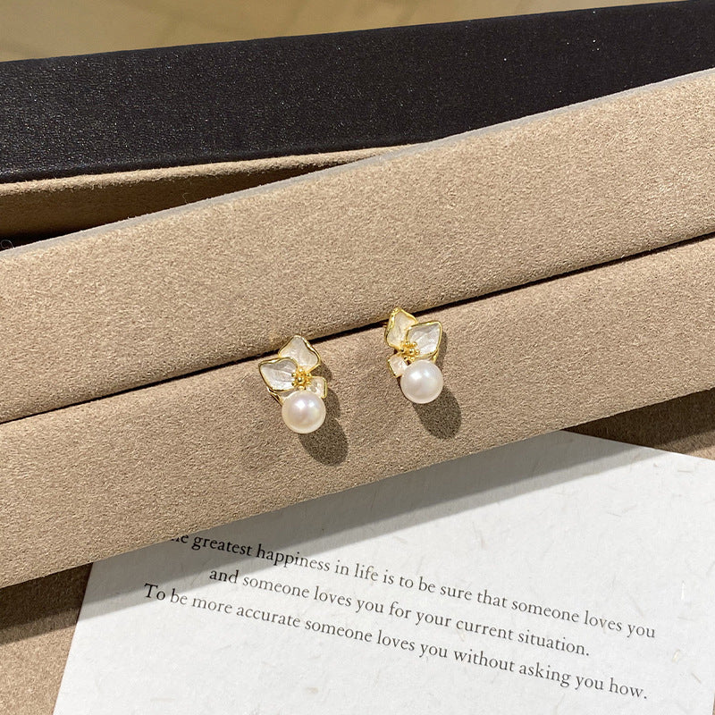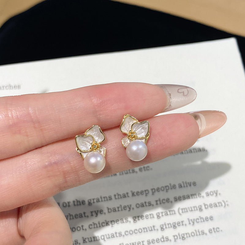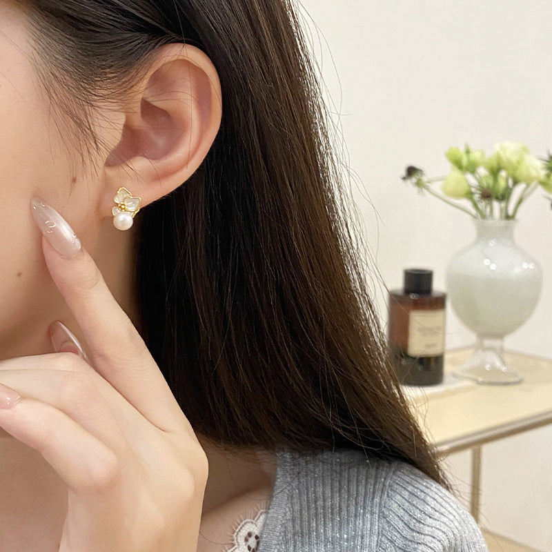F廠【DQ10986E】S925純銀法式復古蝴蝶蘭淡水珍珠耳環女簡約氣質花朵百搭耳飾 25.07-1