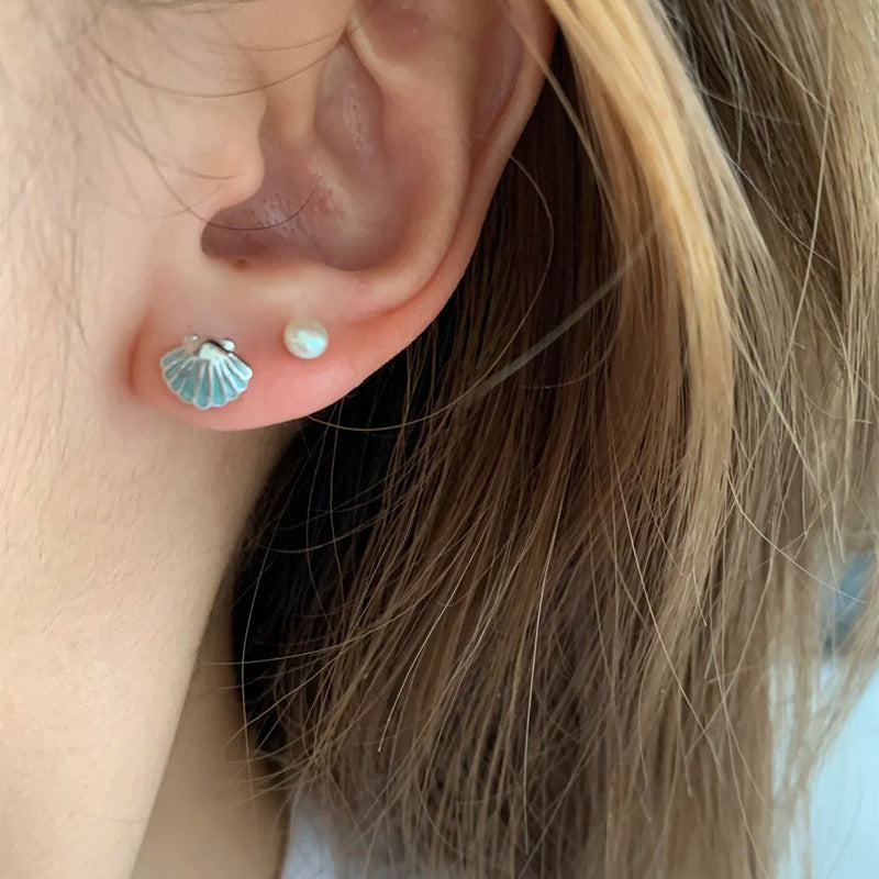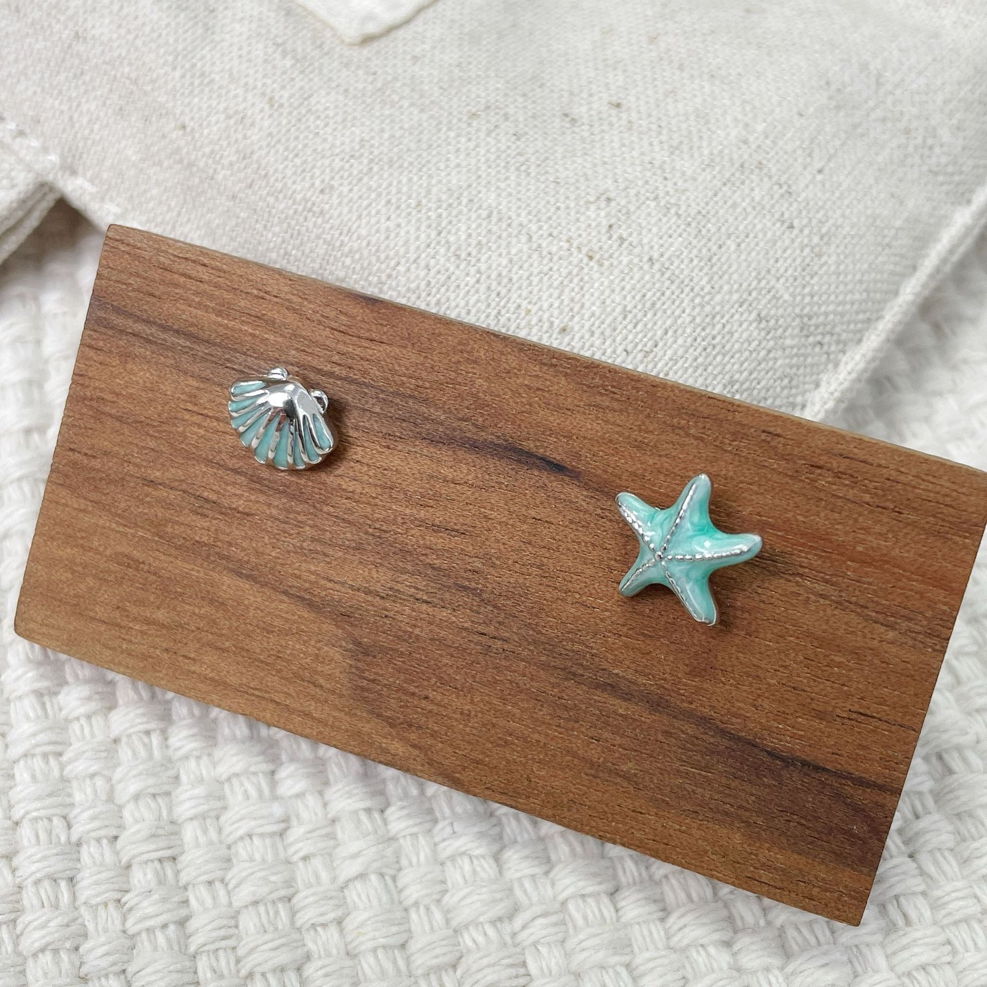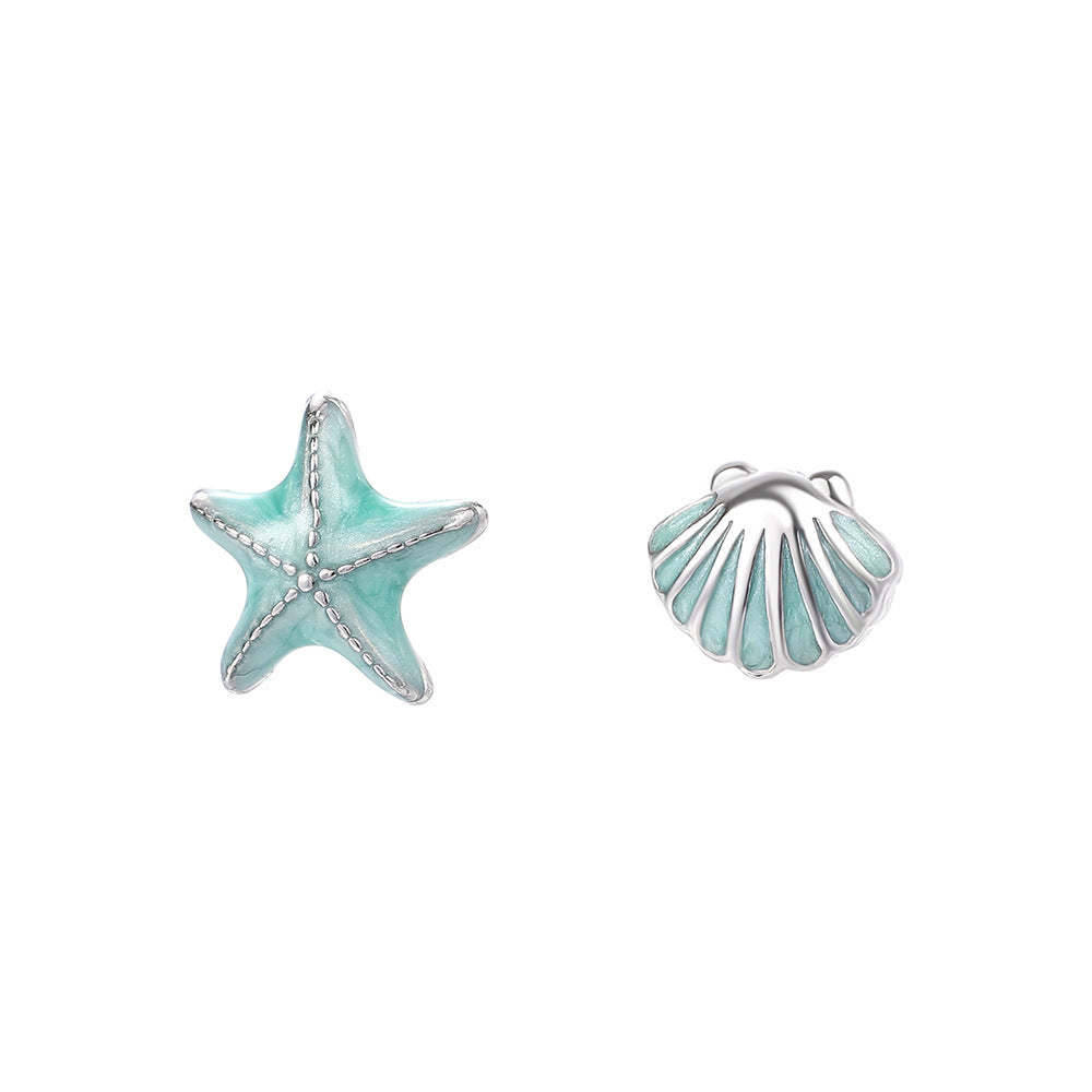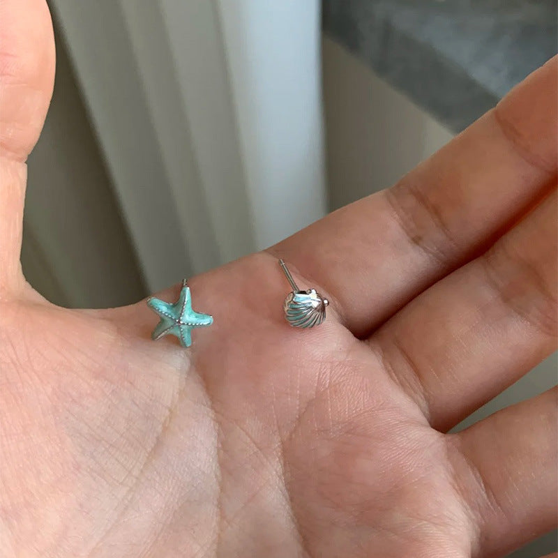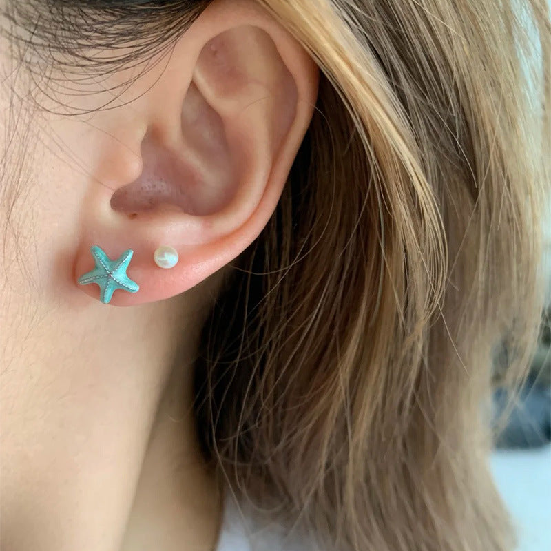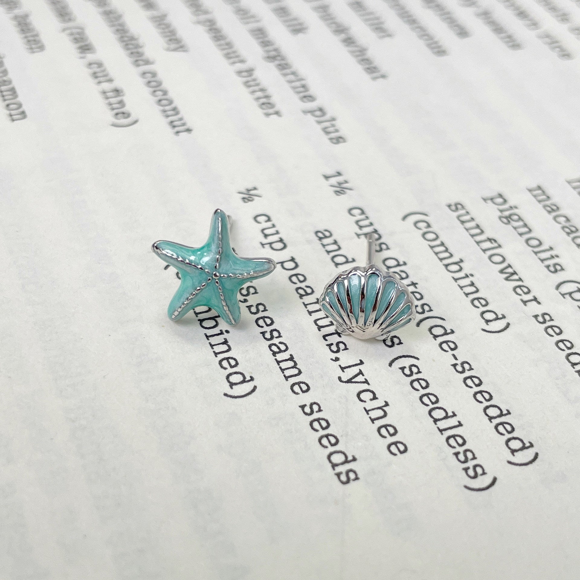 F廠【DQ11052E】足銀999夏季沙灘海星貝殼耳環女甜美ins藍色高級感耳飾度假風 25.06-2