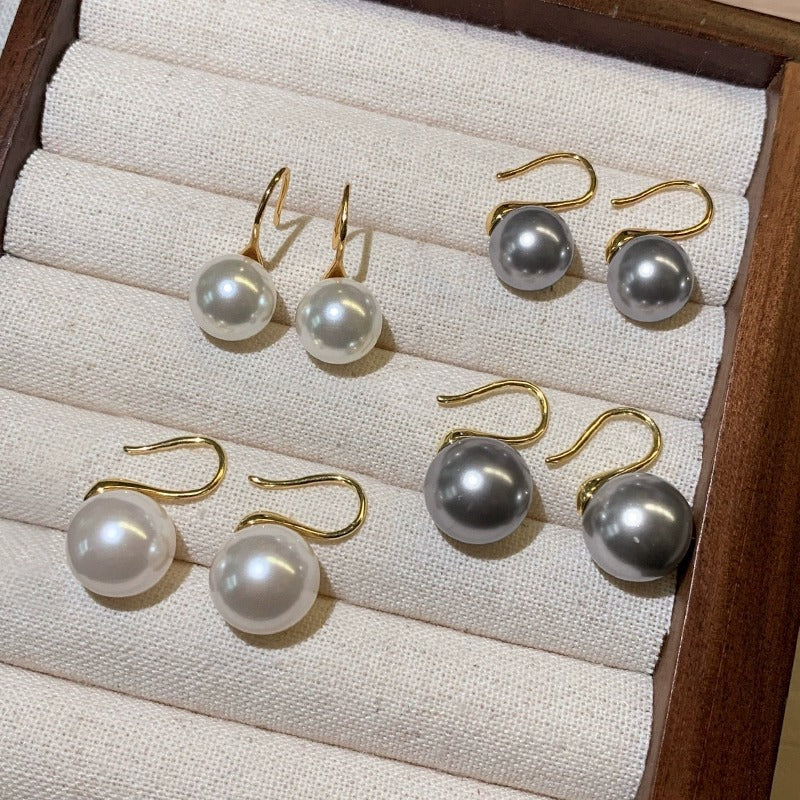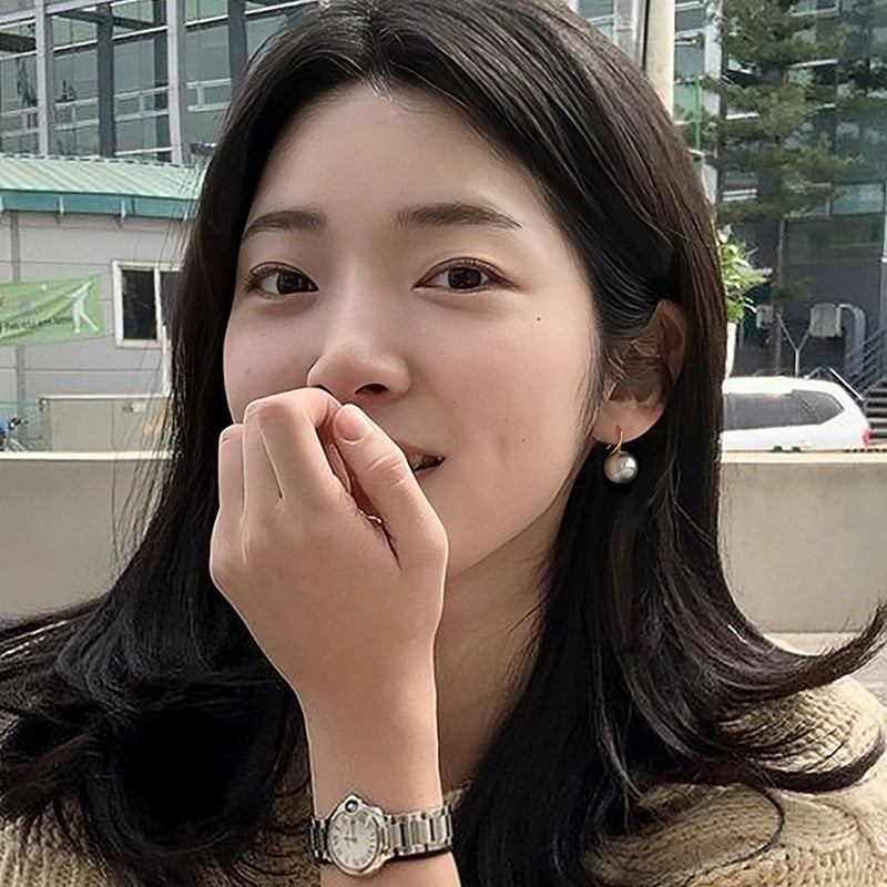 F廠【DQ11137E】S925純銀法式復古圓形仿珍珠耳環女輕奢高級感耳環耳環耳環耳飾品 25.09-3