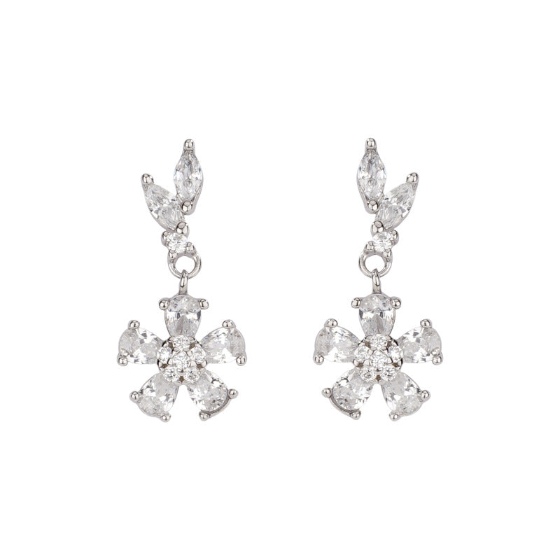 F廠【DQ11146E】實拍S999純銀精緻閃鑽花朵耳環女小眾設計氣質鑲鋯石小花耳飾 25.09-3
