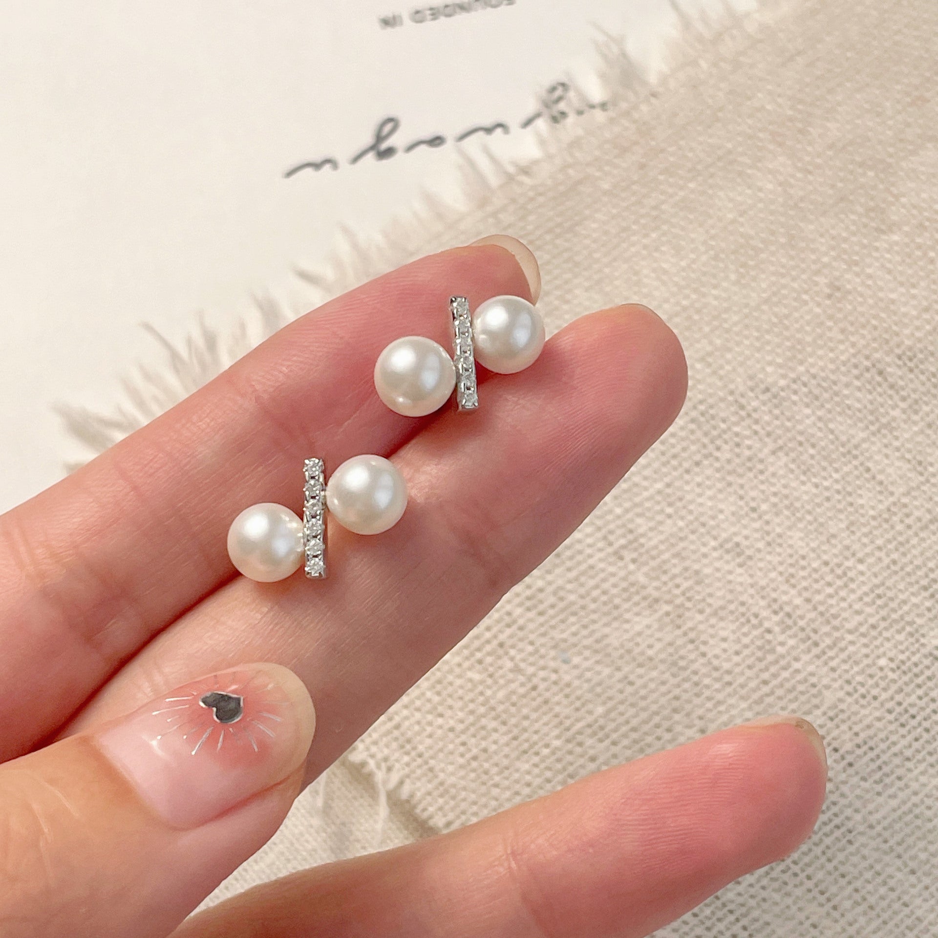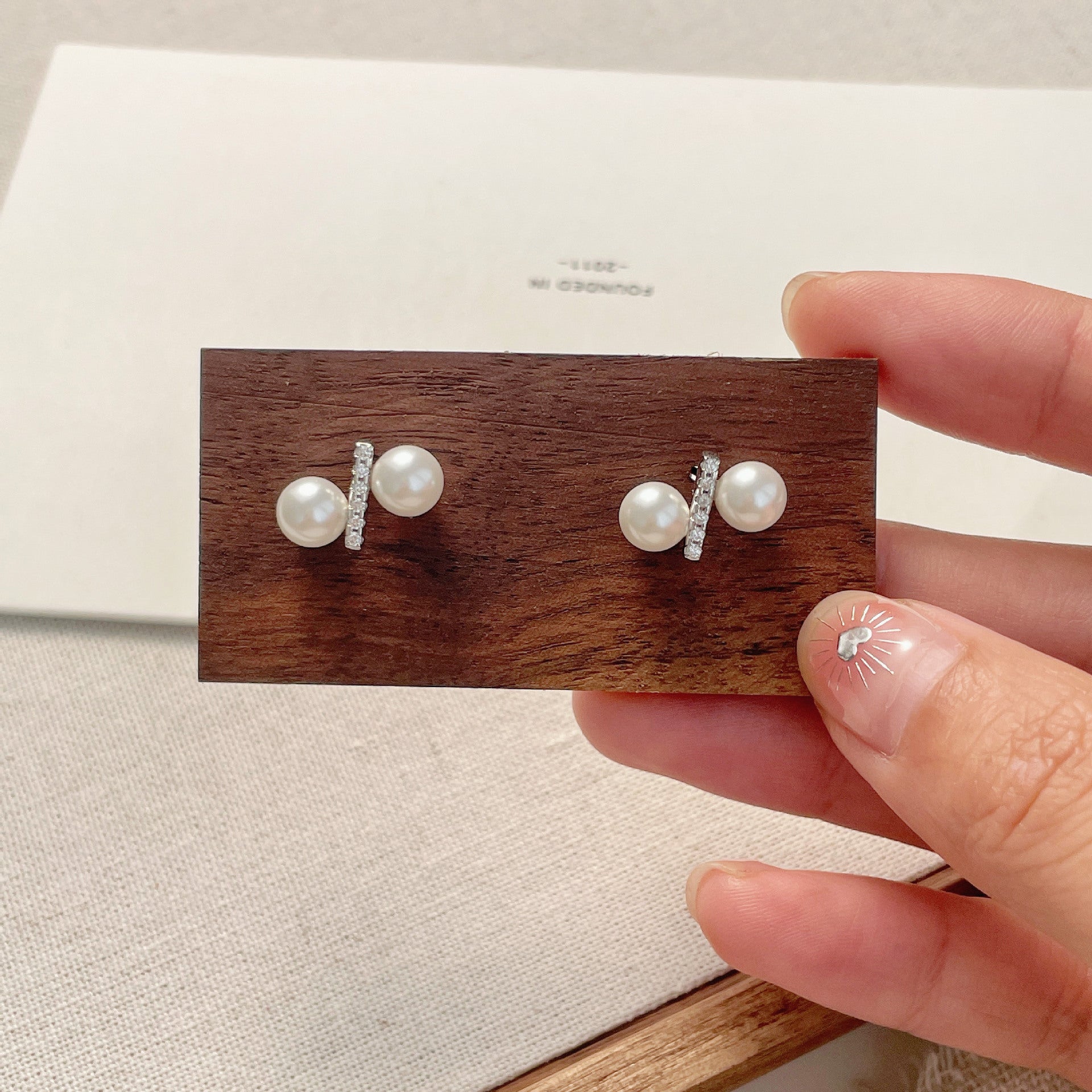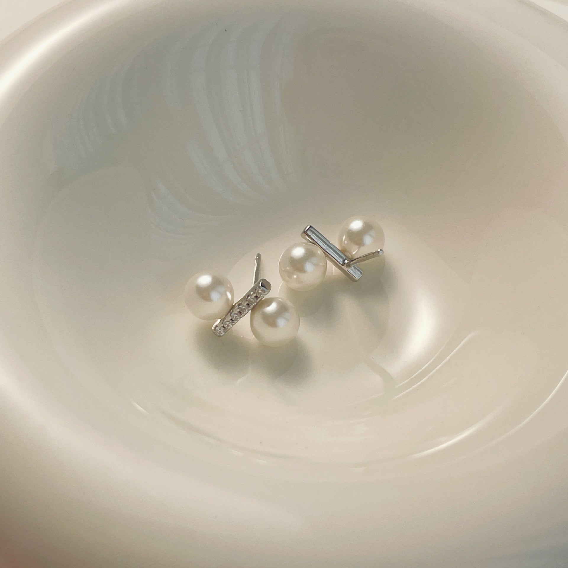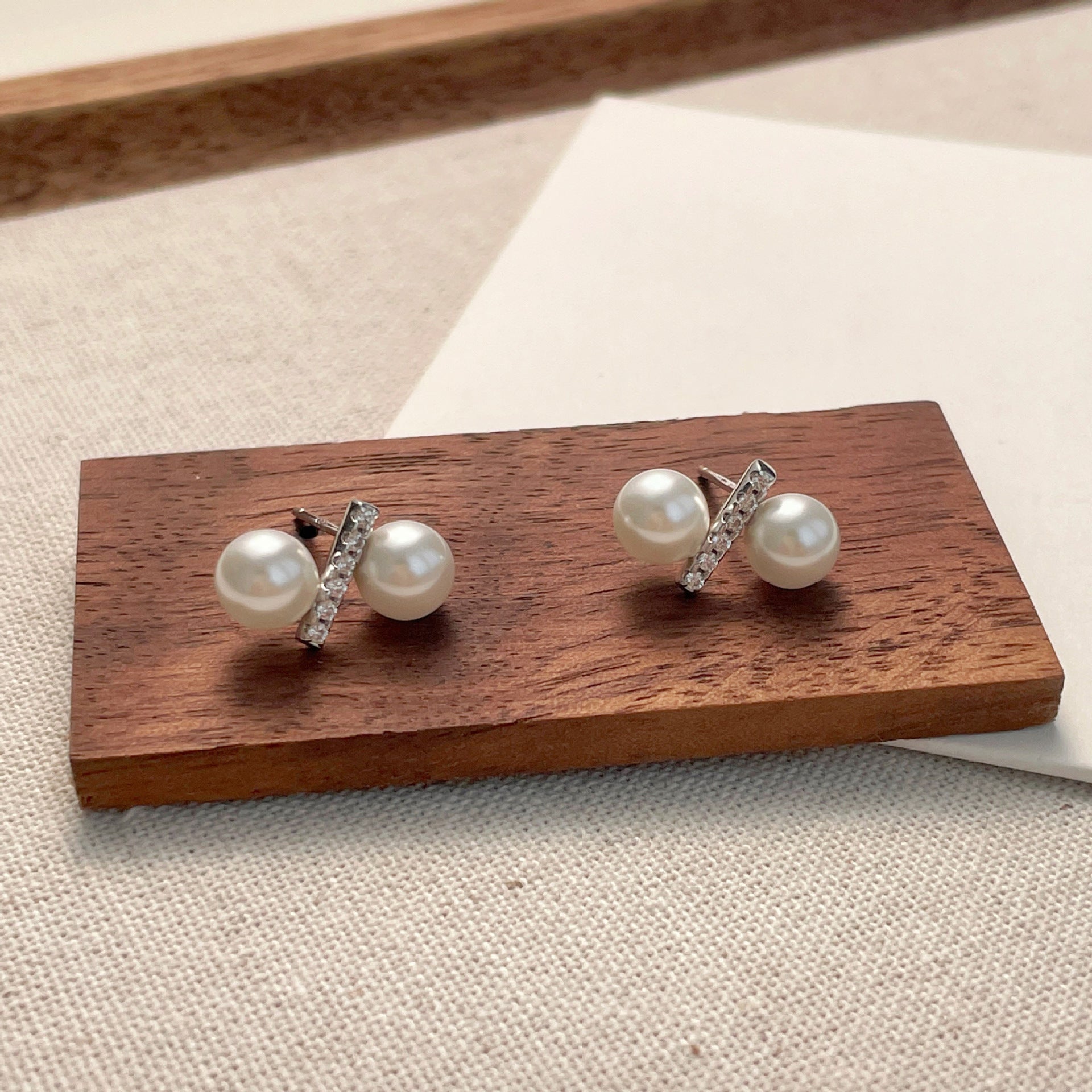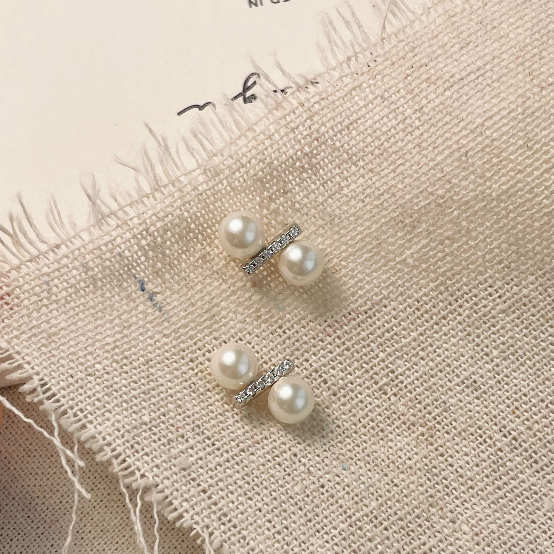 F廠【DQ11169E】S925純銀精緻輕奢仿珍珠耳環女簡約符號微鑲高級感耳飾潮 25.10-1