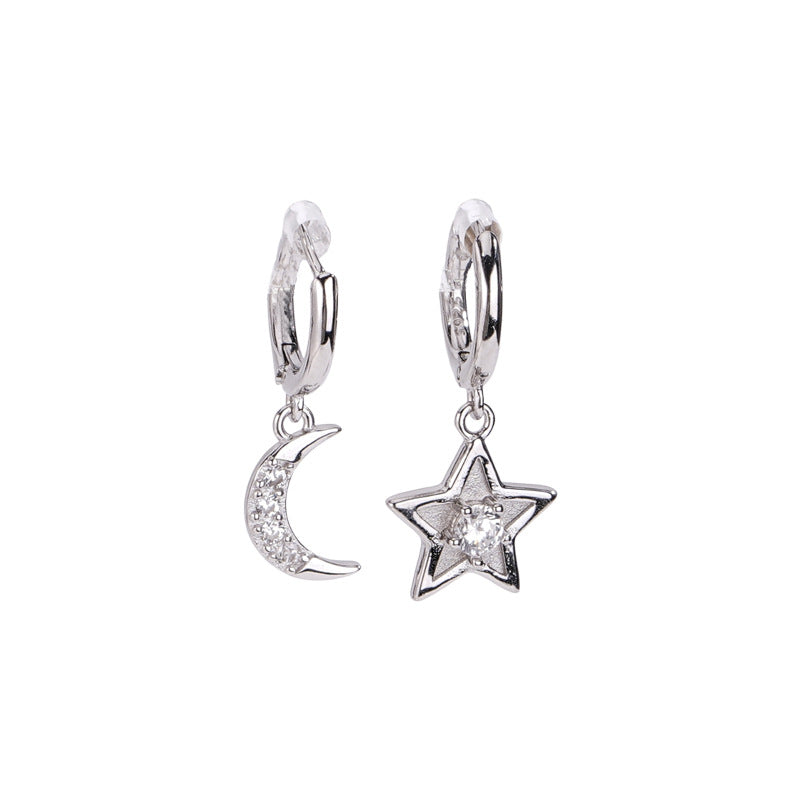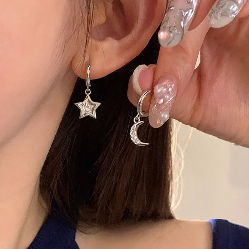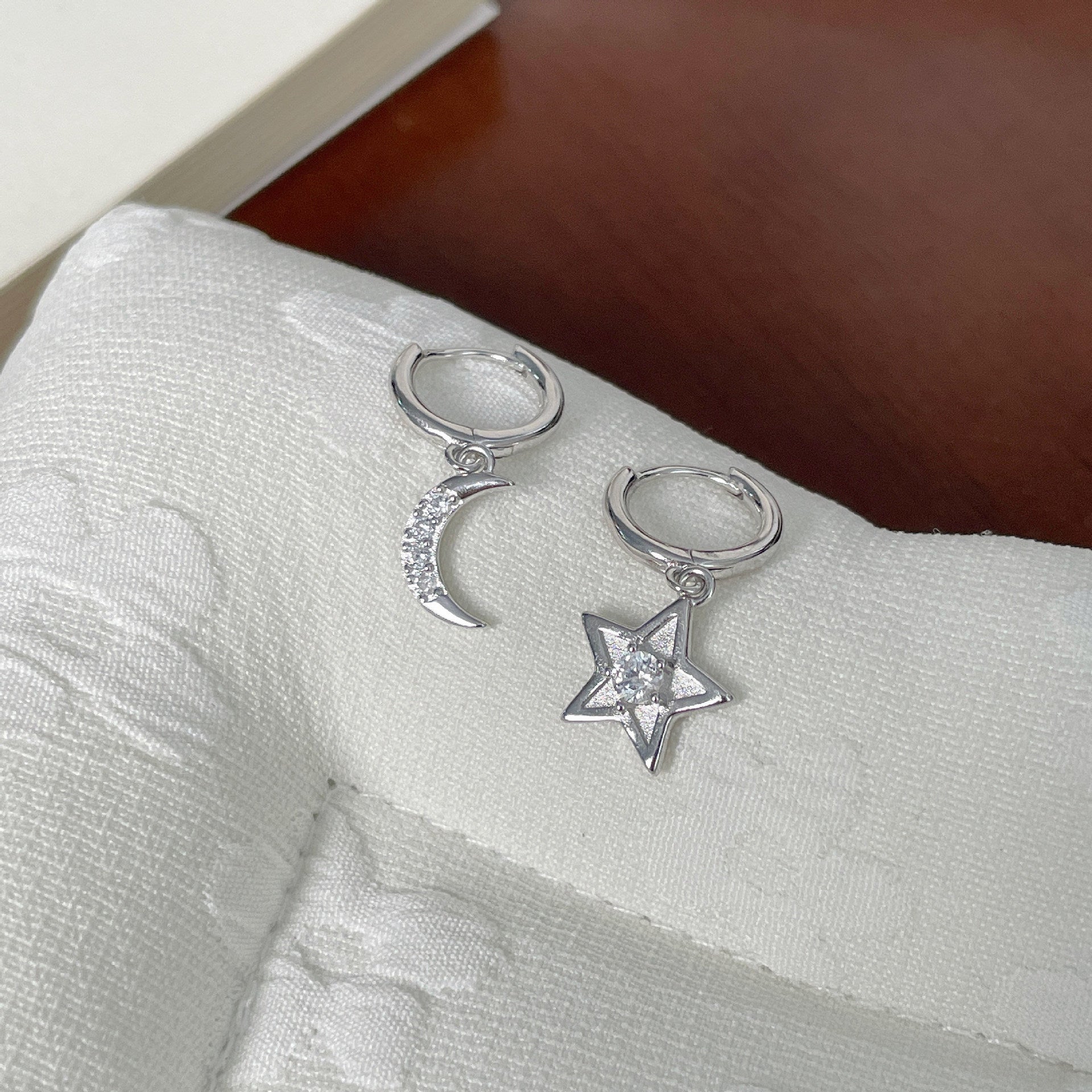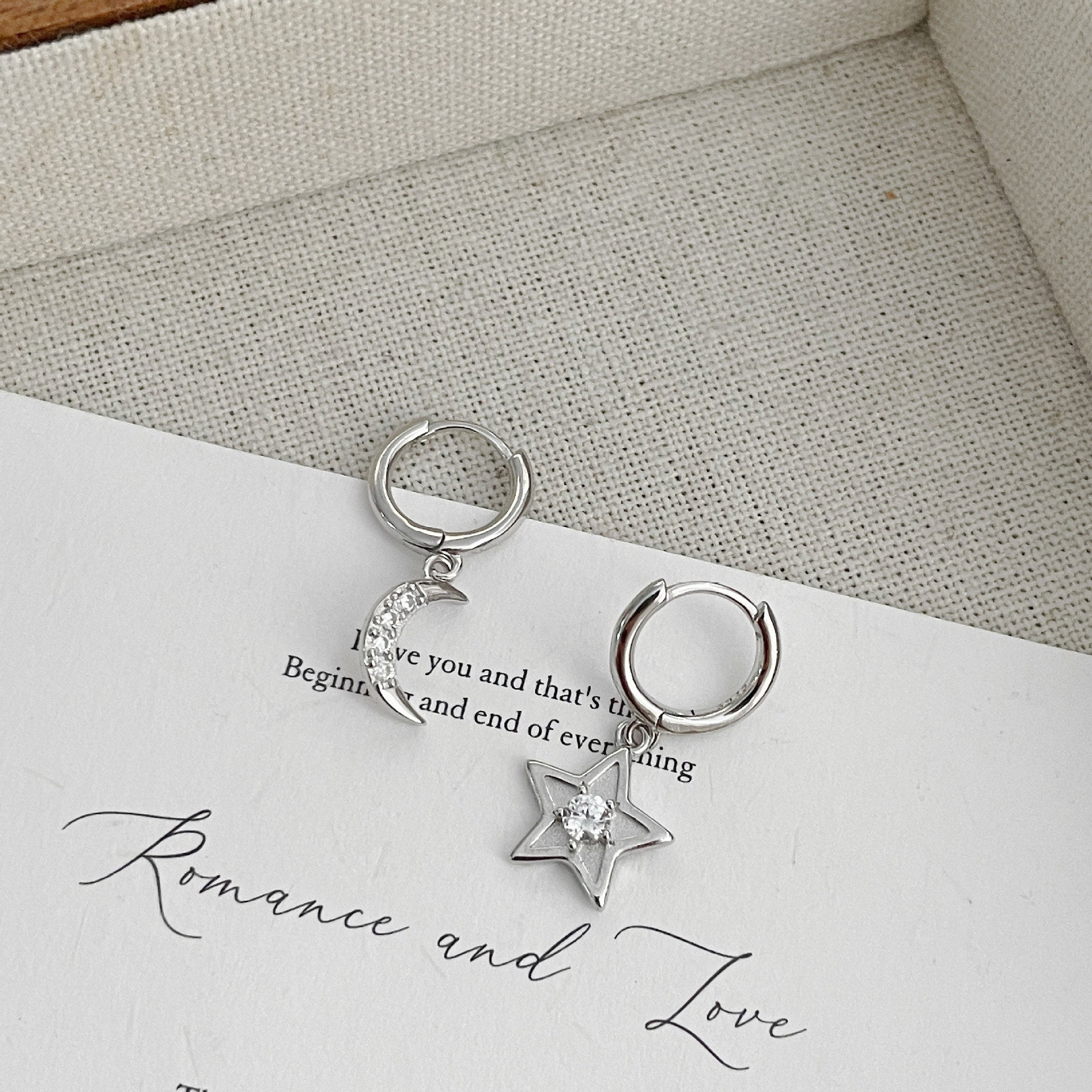 F廠【DQ11190E】S925純銀時尚精緻星月扣女不對稱設計耳環星星月亮百搭耳環 25.06-4