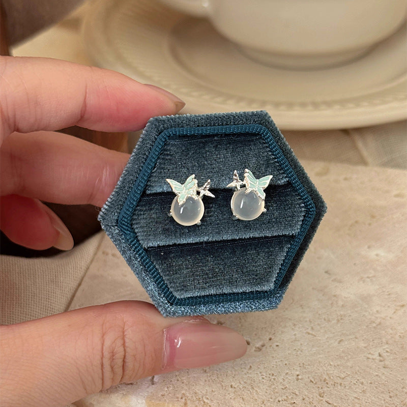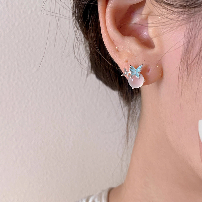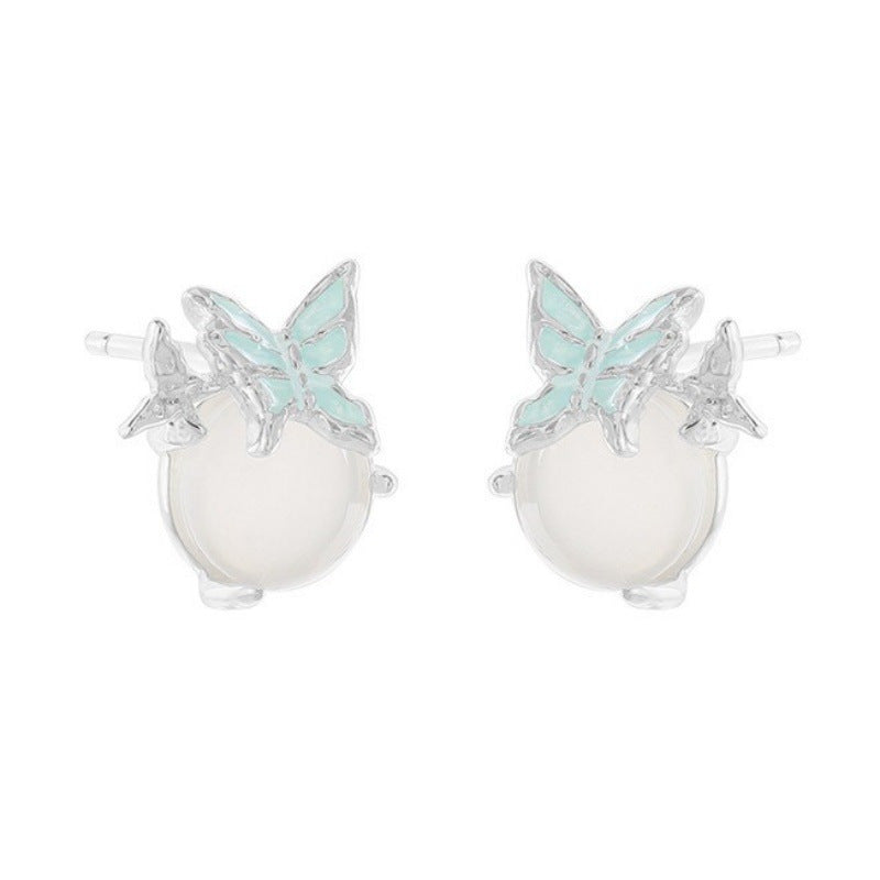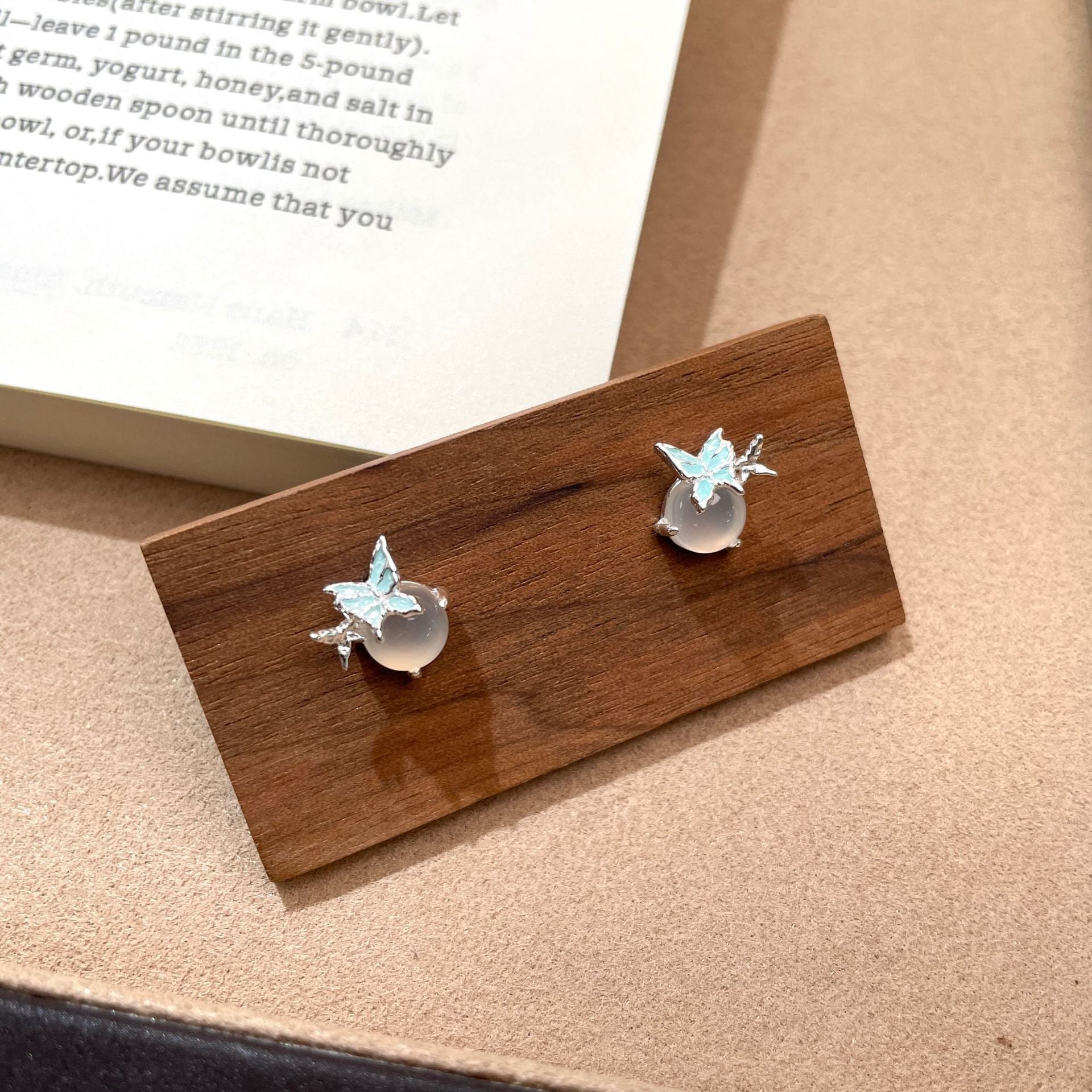F廠【DQ11198E】S925純銀精緻藍蝴蝶白玉髓耳環女韓版高級感滴膠蝴蝶耳飾ins 25.08-1