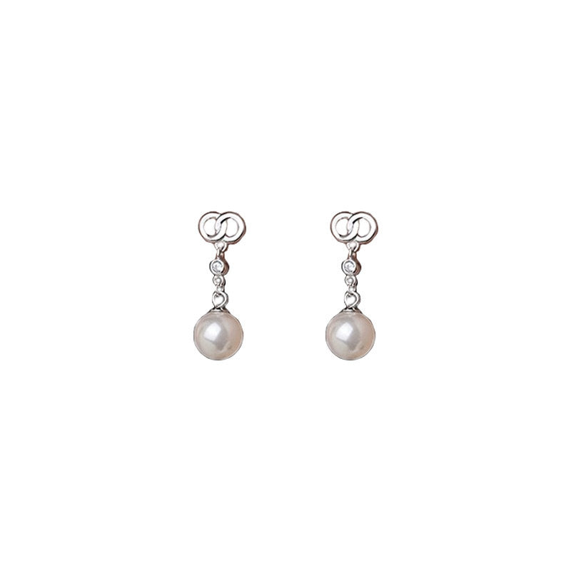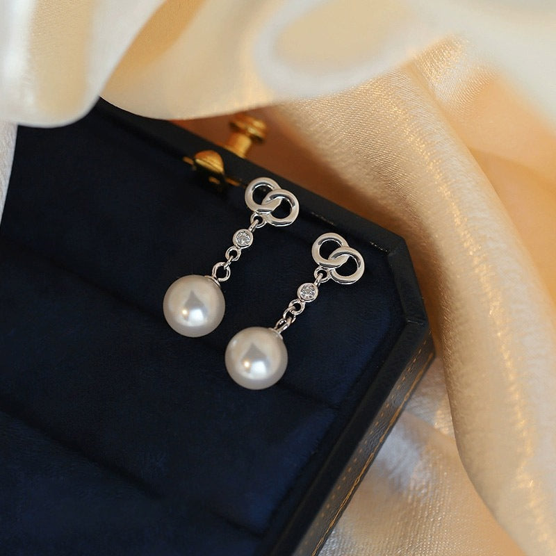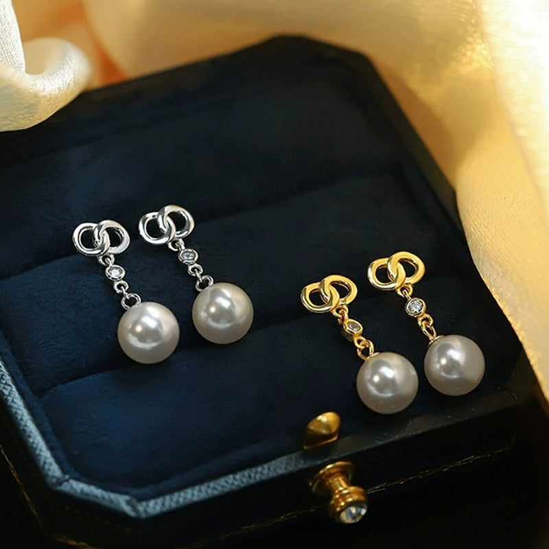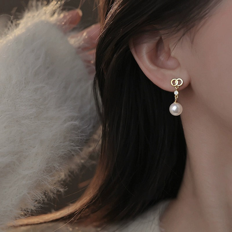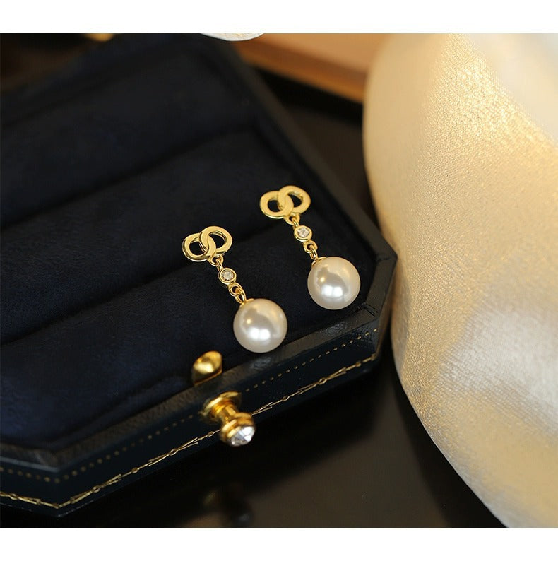 F廠【DQ11269E】S925純銀法式輕奢感仿珍珠耳環耳環小眾高級感雙環流蘇耳飾女 25.09-4
