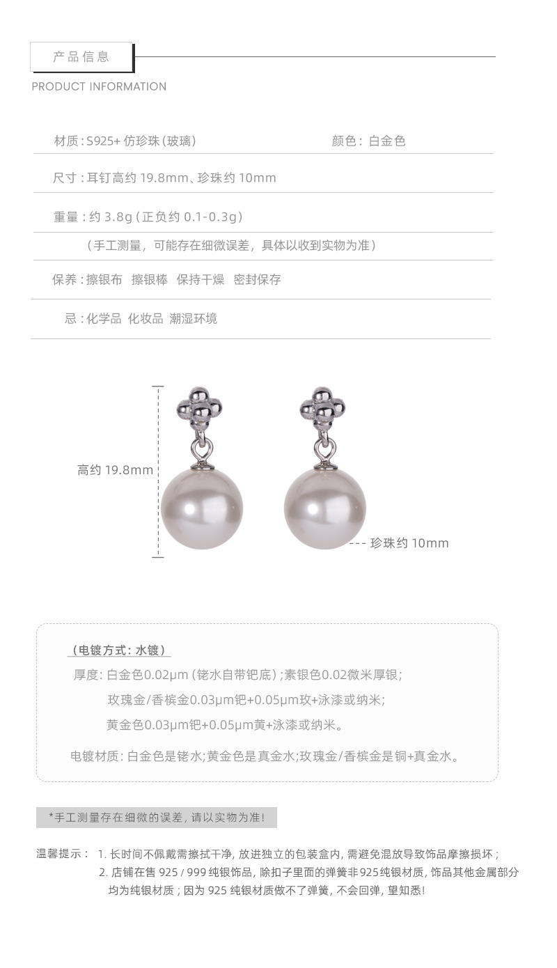E廠【DQ11388E】S925純銀仿珍珠耳環女復古精緻小花球耳飾品 25.12-1
