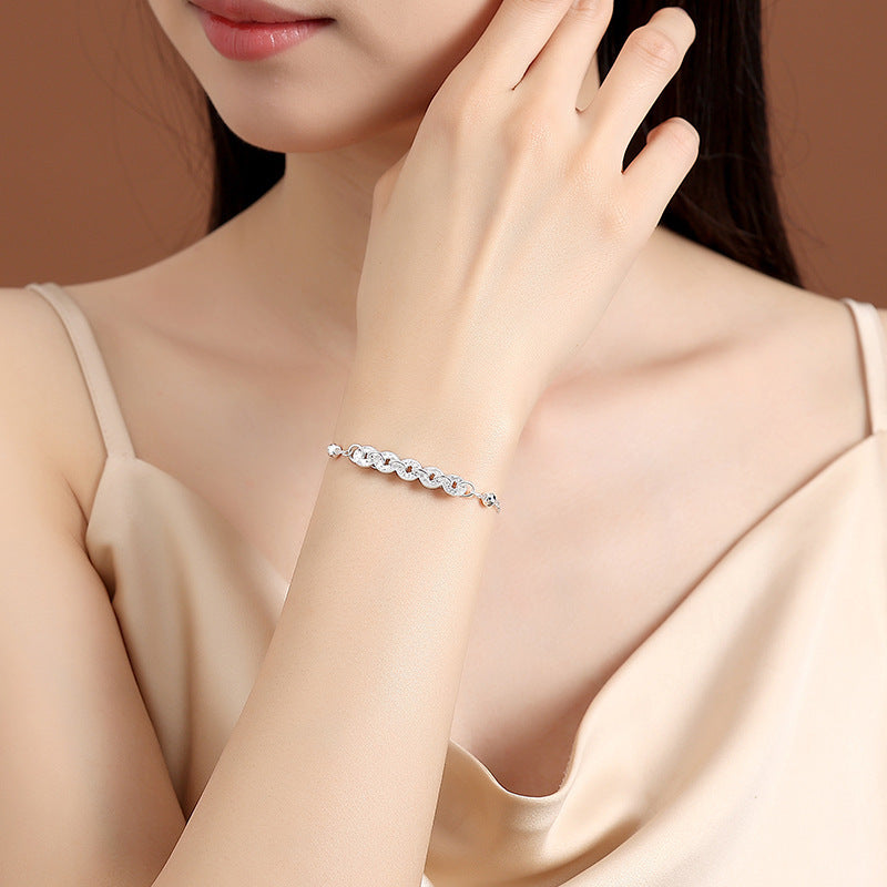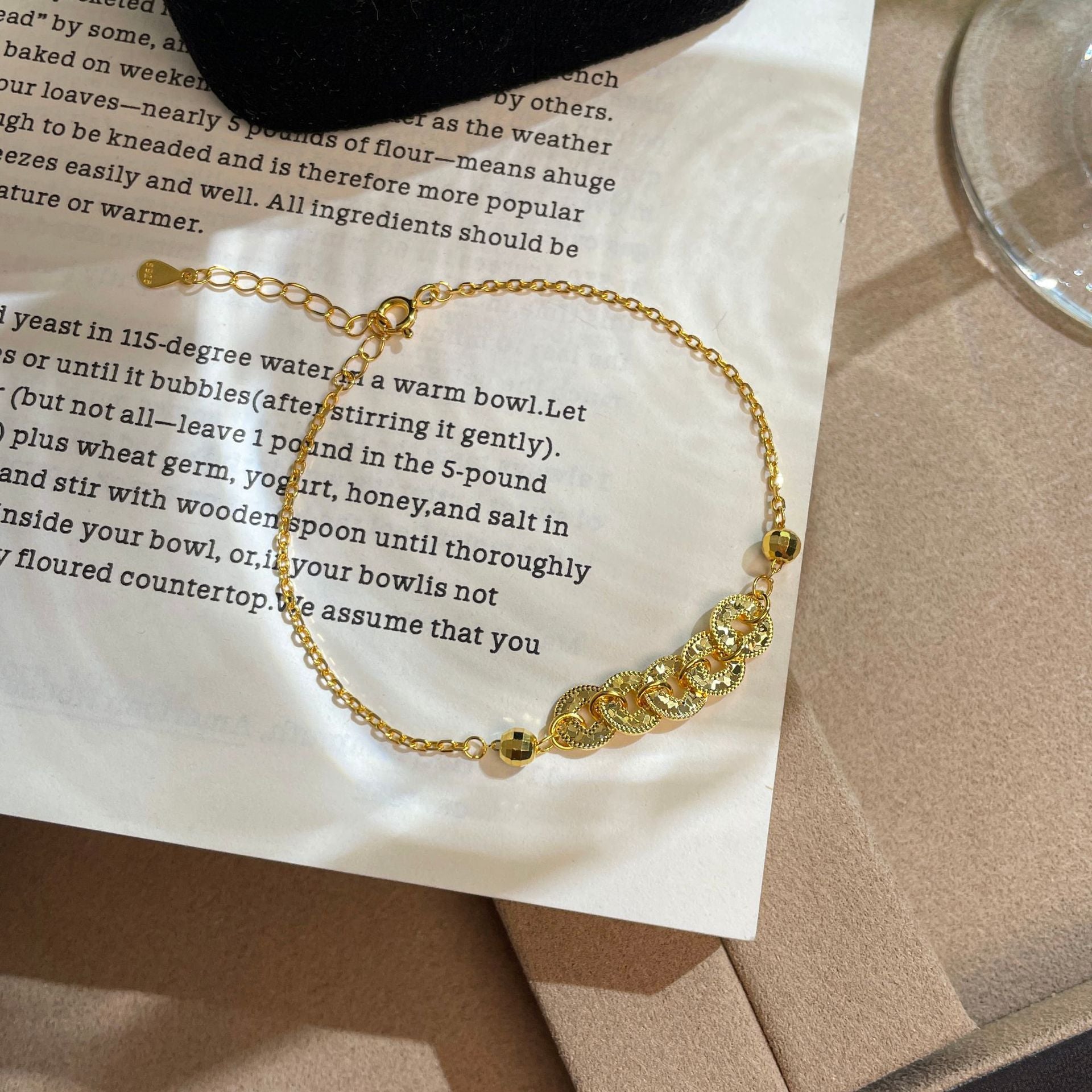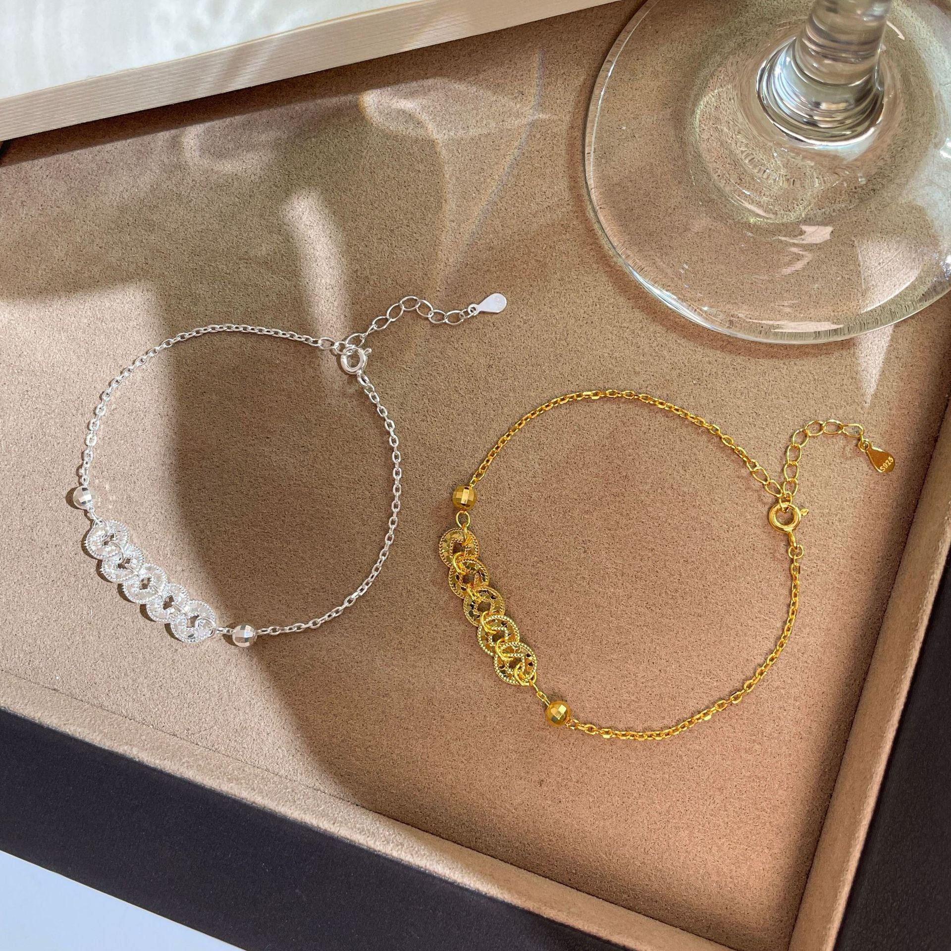 F廠【DQ1139S】新中式碎冰冰五帝錢手鍊女S925純銀高級感爆閃銅錢手飾潮 25.10-2
